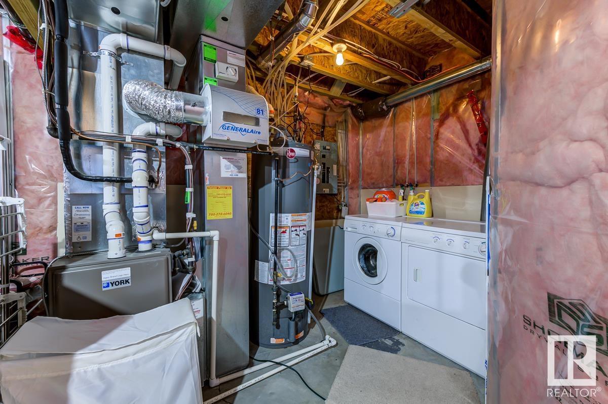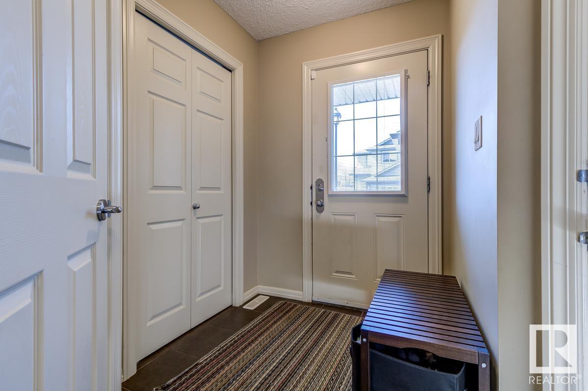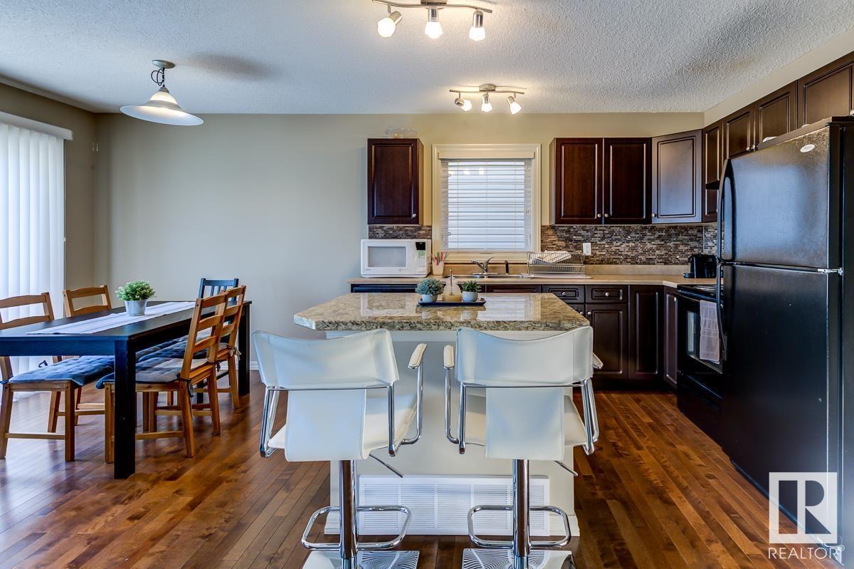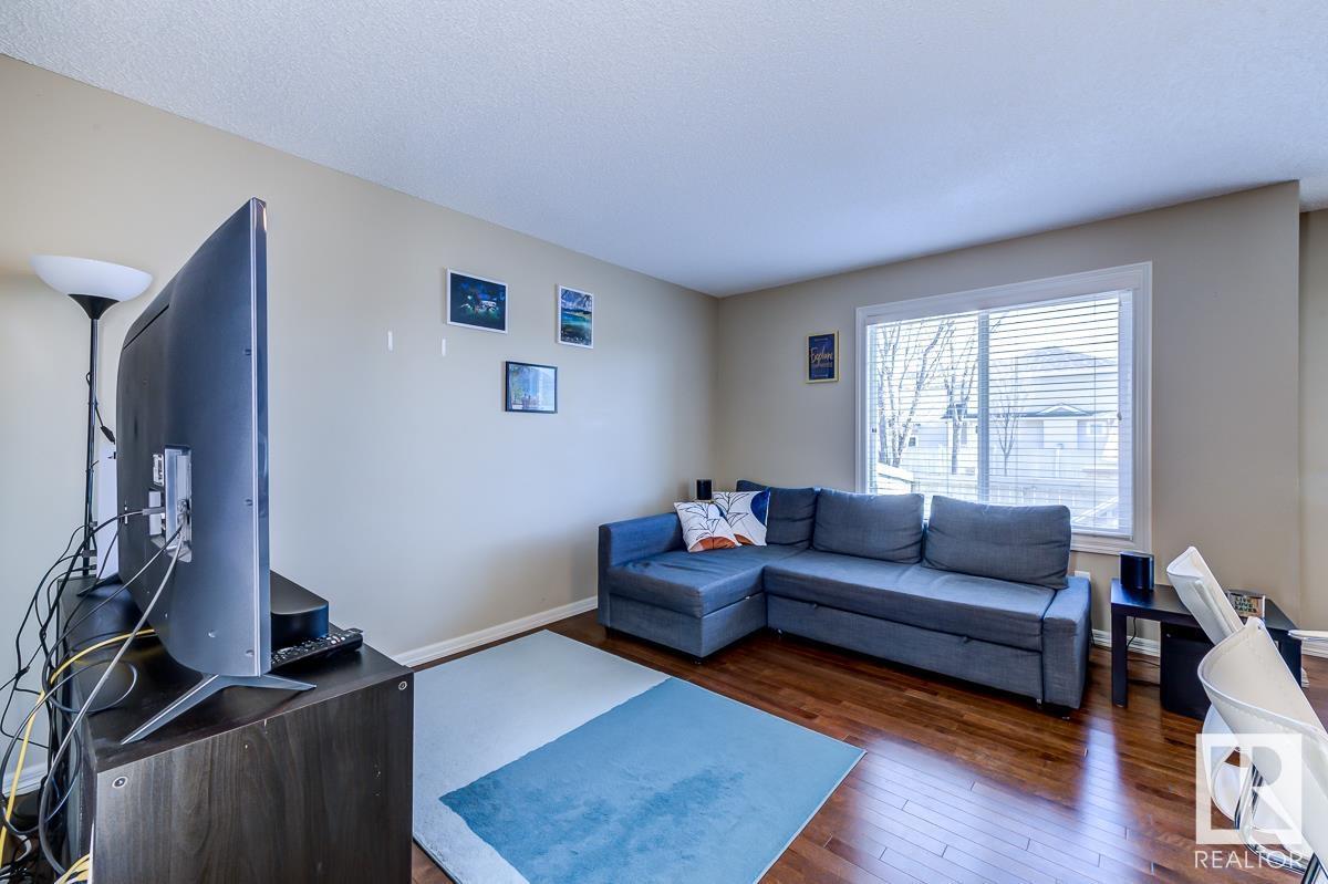 AFFORDABLE LIVING in a quiet complex close to ALL amenities! This two story half-duplex with single attached garage has EVERYTHING you are looking for, EVEN A/C!! The kitchen, living room & dining room all have beautiful hardwood floors with tile in the entry and bathrooms. The kitchen features an island, granite countertops, tile backsplash, and plenty of beautiful cabinet space. The living room has large windows letting in tons of natural light & the patio doors off the spacious dining area leads you to a fully fenced back yard. A 2 piece powder room tucked neatly away completes this level. Upper floor has THREE large bedrooms, the owners suite comes with 4 piece ensuite AND double closet! Another FULL bathroom completes the top floor! Downstairs holds the laundry, TONS of storage space and a High Efficiency furnace! Close to Terwillegar Rec Centre, ETS transit station, schools, parks, walking trails and all amenities. (id:22211)