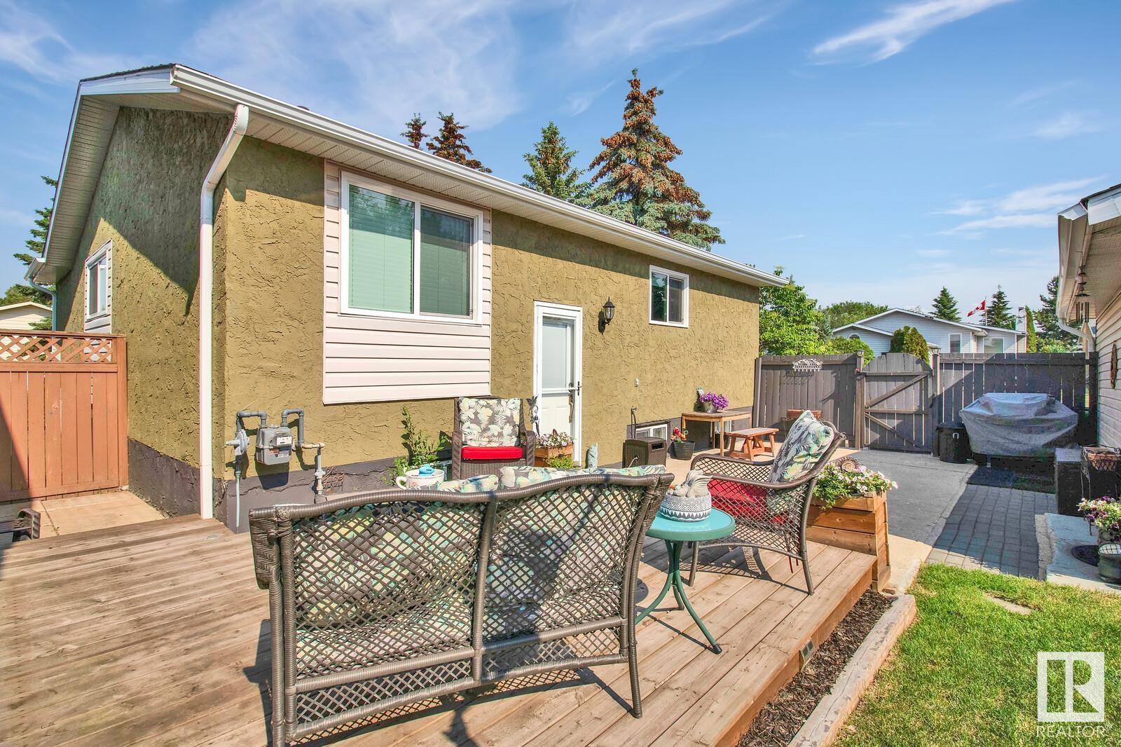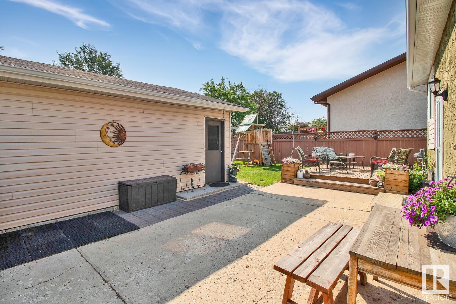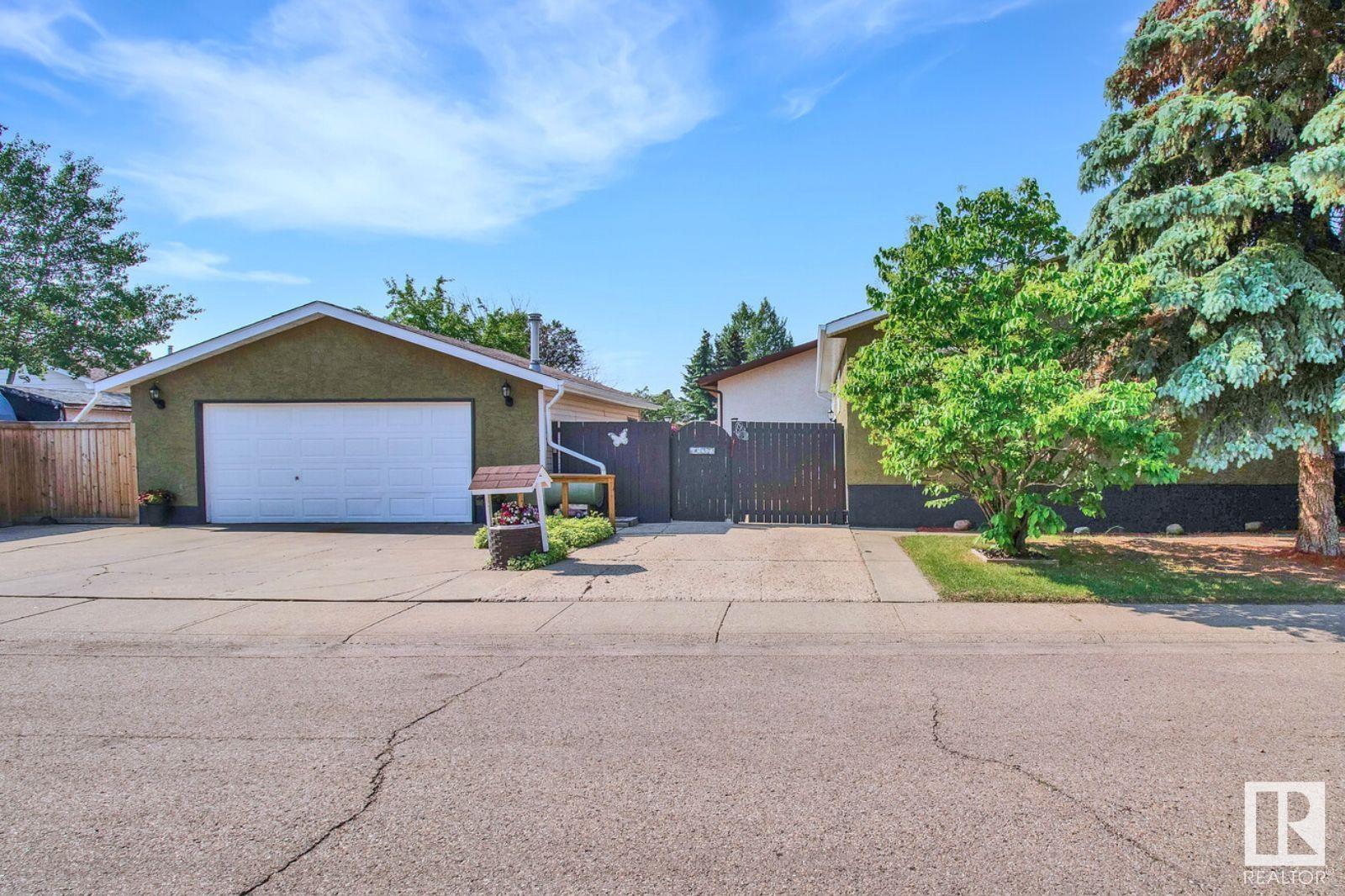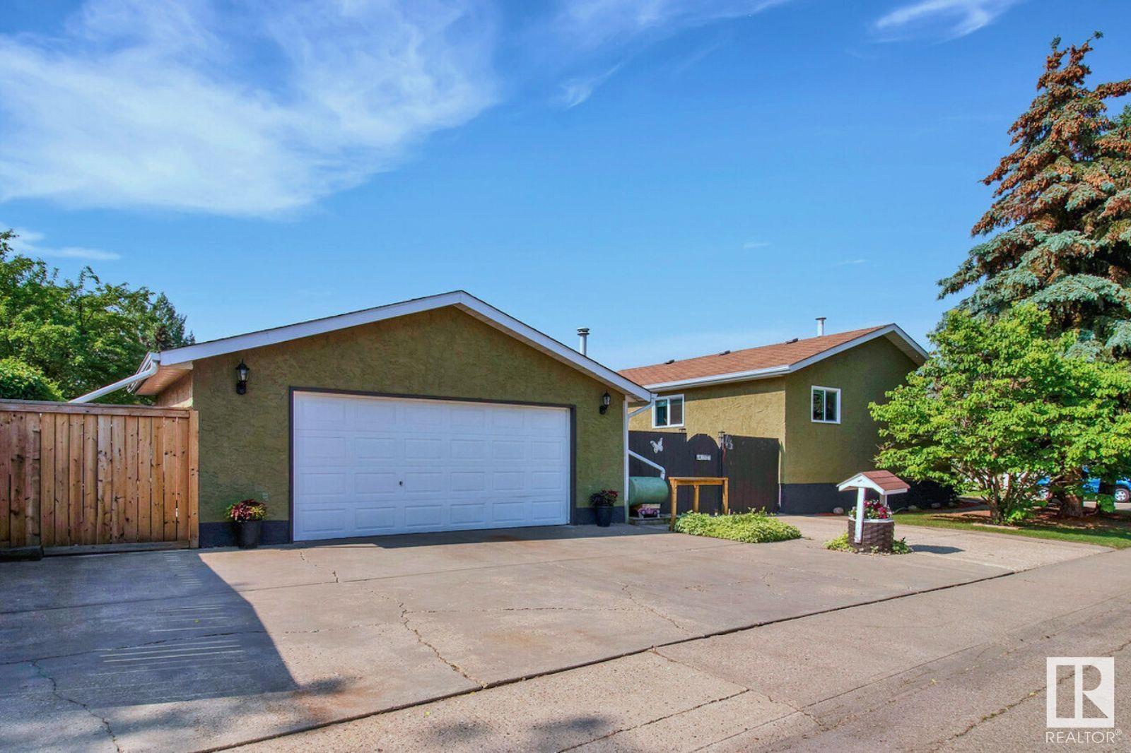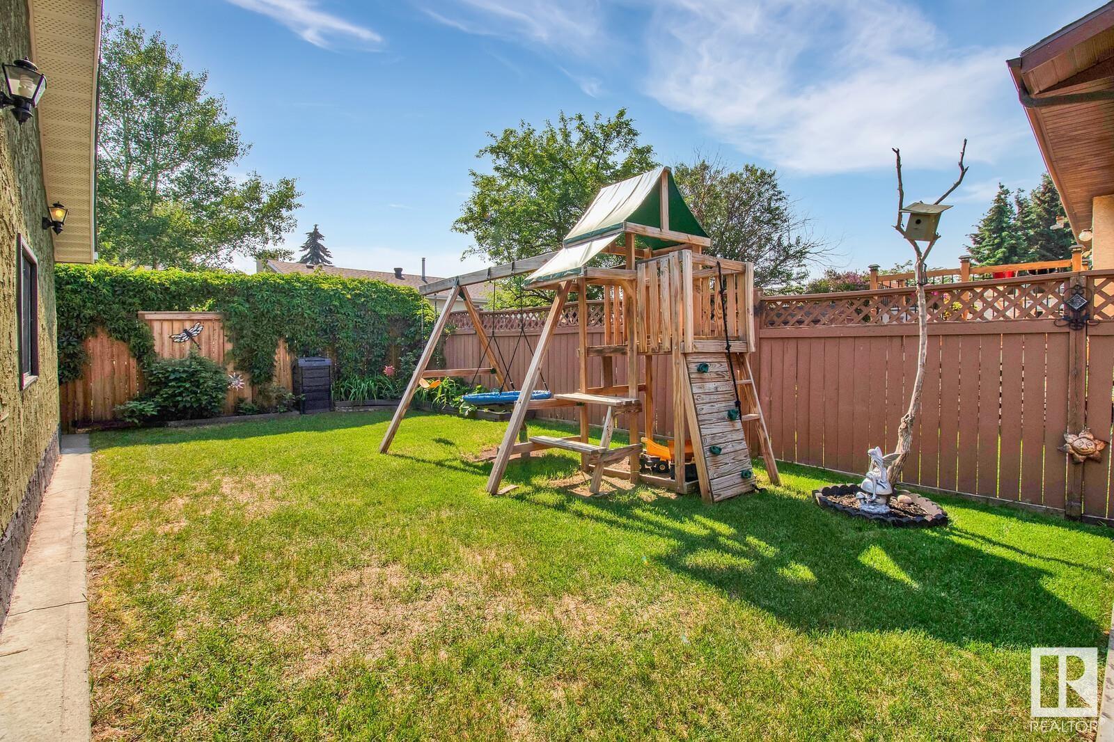 Gorgeous bungalow is located in a quiet crescent only steps to schools (Jr High & K-6), bus and quick access to Anthony Henday. Open floor plan with spacious kitchen open to dining and living areas. Features hardwood, vinyl plank and ceramic tile flooring, California knock down ceiling with crown moulding, spacious kitchen with 2 pantries. The kitchen over looks the fully fenced backyard with a large deck and patio. Basement is nicely finished with a 4th bedroom, family room, games room, laundry/storage room and full bathroom. Oversized 24 x 22 heated garage with 220V. Lots of parking including potential RV parking. Upgrades include furnace, hot water tank, facia, soffit and windows. Very well maintained inside and out. Shows great! For more details please visit the REALTOR's Website. (id:22211)