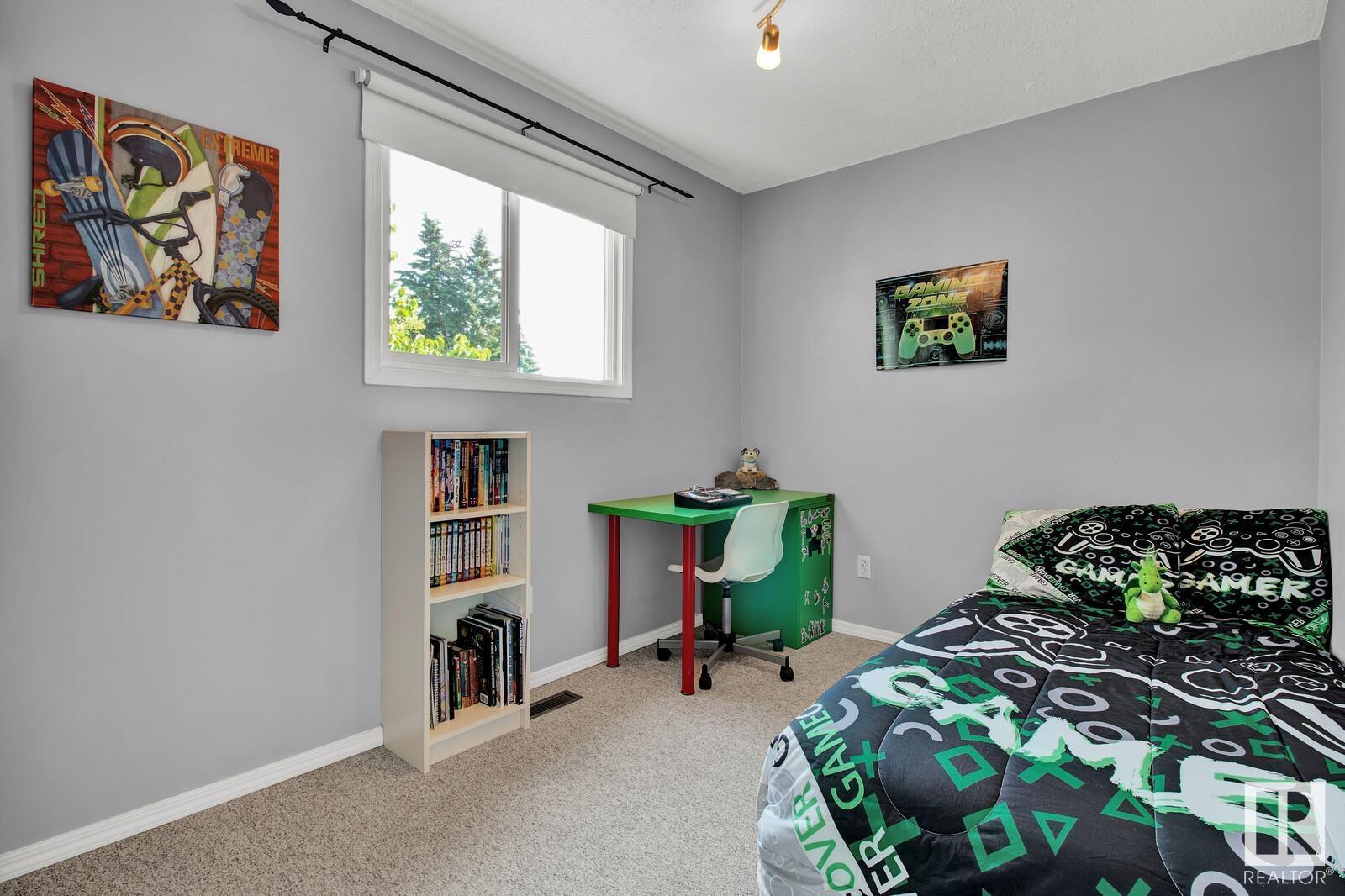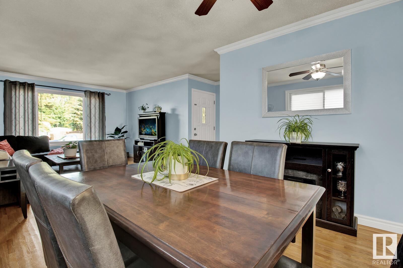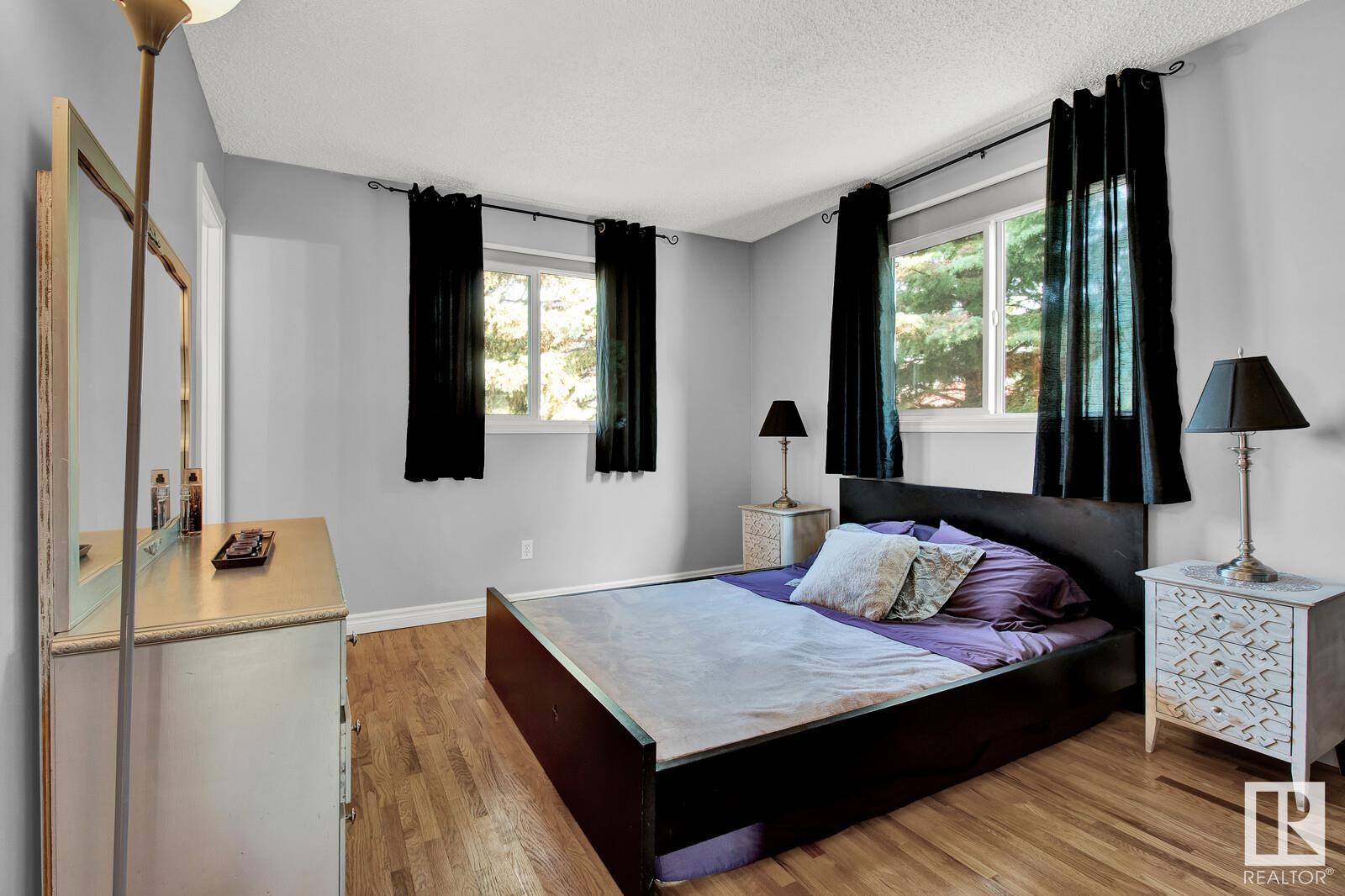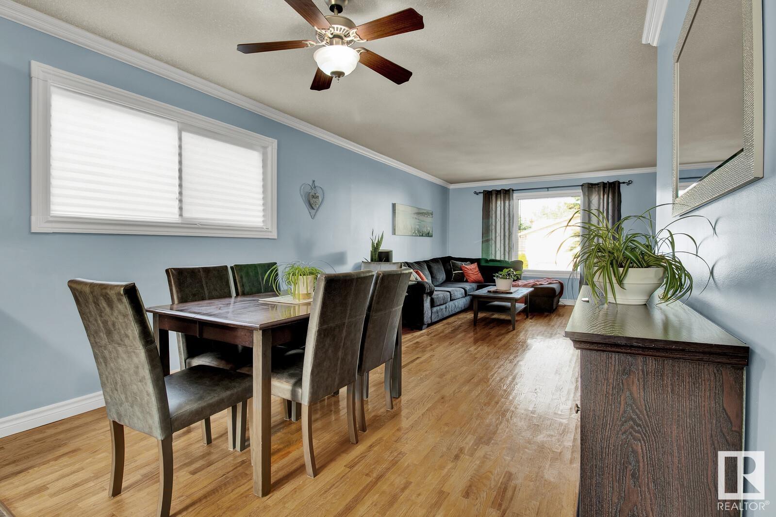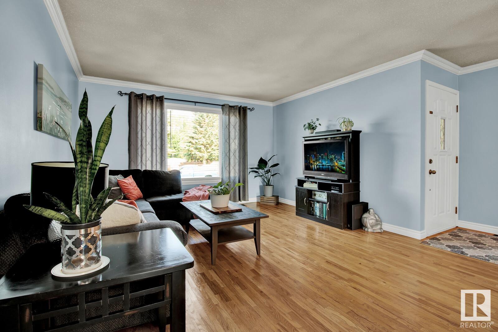Gorgeous bungalow is located in a quiet crescent only steps to schools (Jr High & K-6), bus and quick access to Anthony Henday. Open floor plan with spacious kitchen open to dining and living areas. Features hardwood, vinyl plank and ceramic tile flooring, California knock down ceiling with crown moulding, spacious kitchen with 2 pantries. The kitchen over looks the fully fenced backyard with a large deck and patio. Basement is nicely finished with a 4th bedroom, family room, games room, laundry/storage room and full bathroom. Oversized 24 x 22 heated garage with 220V. Lots of parking including potential RV parking. Upgrades include furnace, hot water tank, facia, soffit and windows. Very well maintained inside and out. Shows great! For more details please visit the REALTOR's Website. (id:22211)