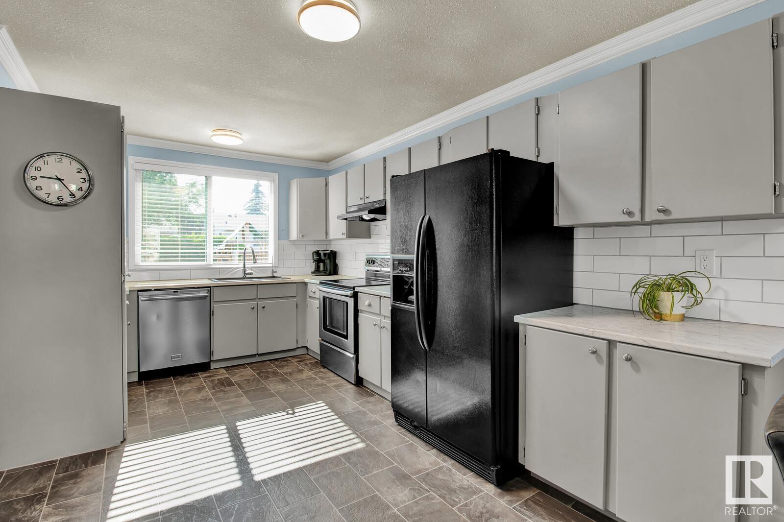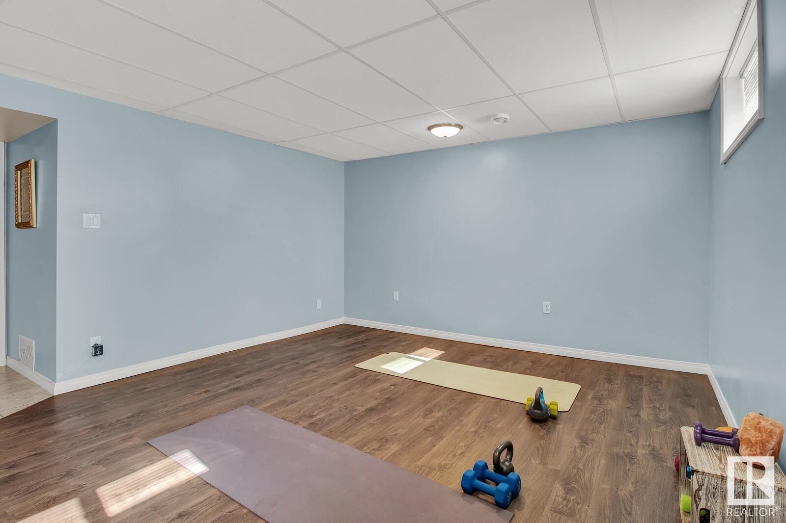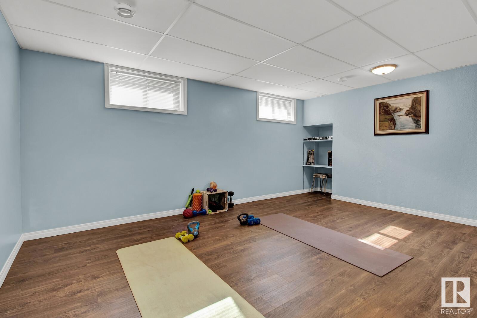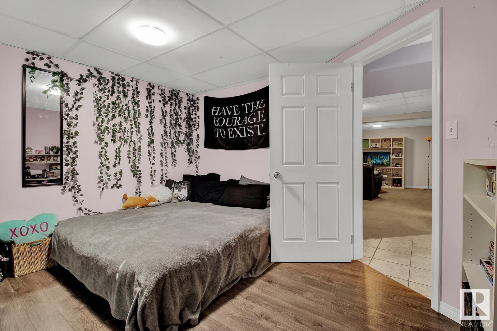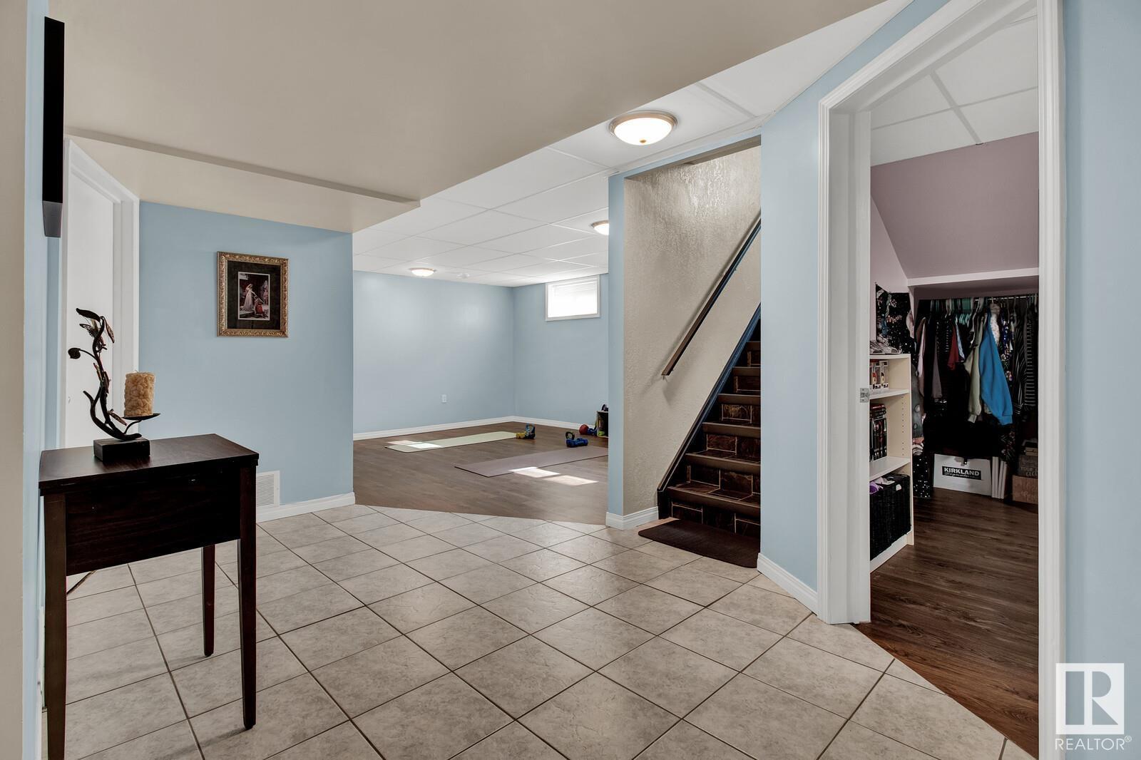 Gorgeous bungalow is located in a quiet crescent only steps to schools (Jr High & K-6), bus and quick access to Anthony Henday. Open floor plan with spacious kitchen open to dining and living areas. Features hardwood, vinyl plank and ceramic tile flooring, California knock down ceiling with crown moulding, spacious kitchen with 2 pantries. The kitchen over looks the fully fenced backyard with a large deck and patio. Basement is nicely finished with a 4th bedroom, family room, games room, laundry/storage room and full bathroom. Oversized 24 x 22 heated garage with 220V. Lots of parking including potential RV parking. Upgrades include furnace, hot water tank, facia, soffit and windows. Very well maintained inside and out. Shows great! For more details please visit the REALTOR's Website. (id:22211)