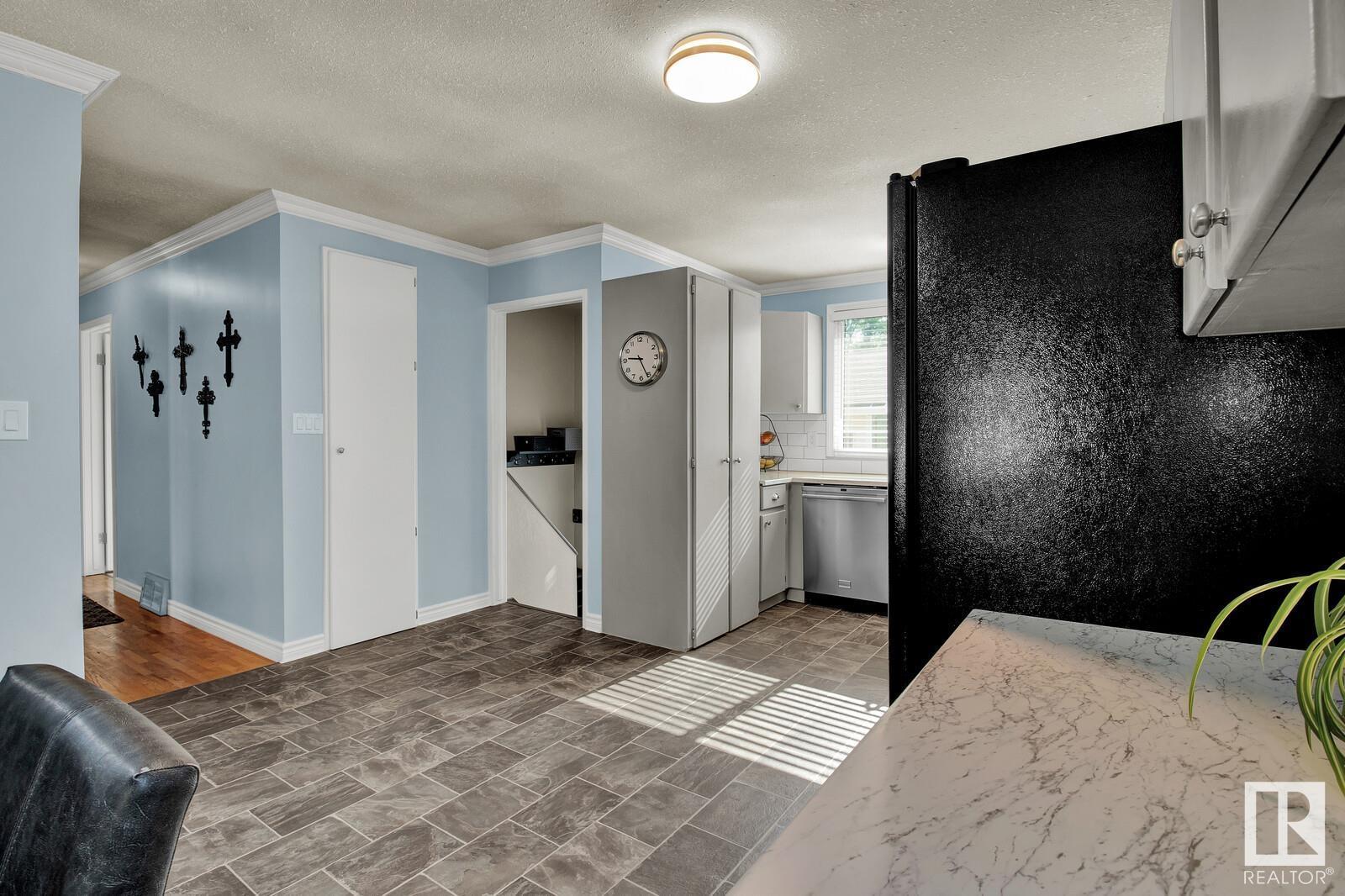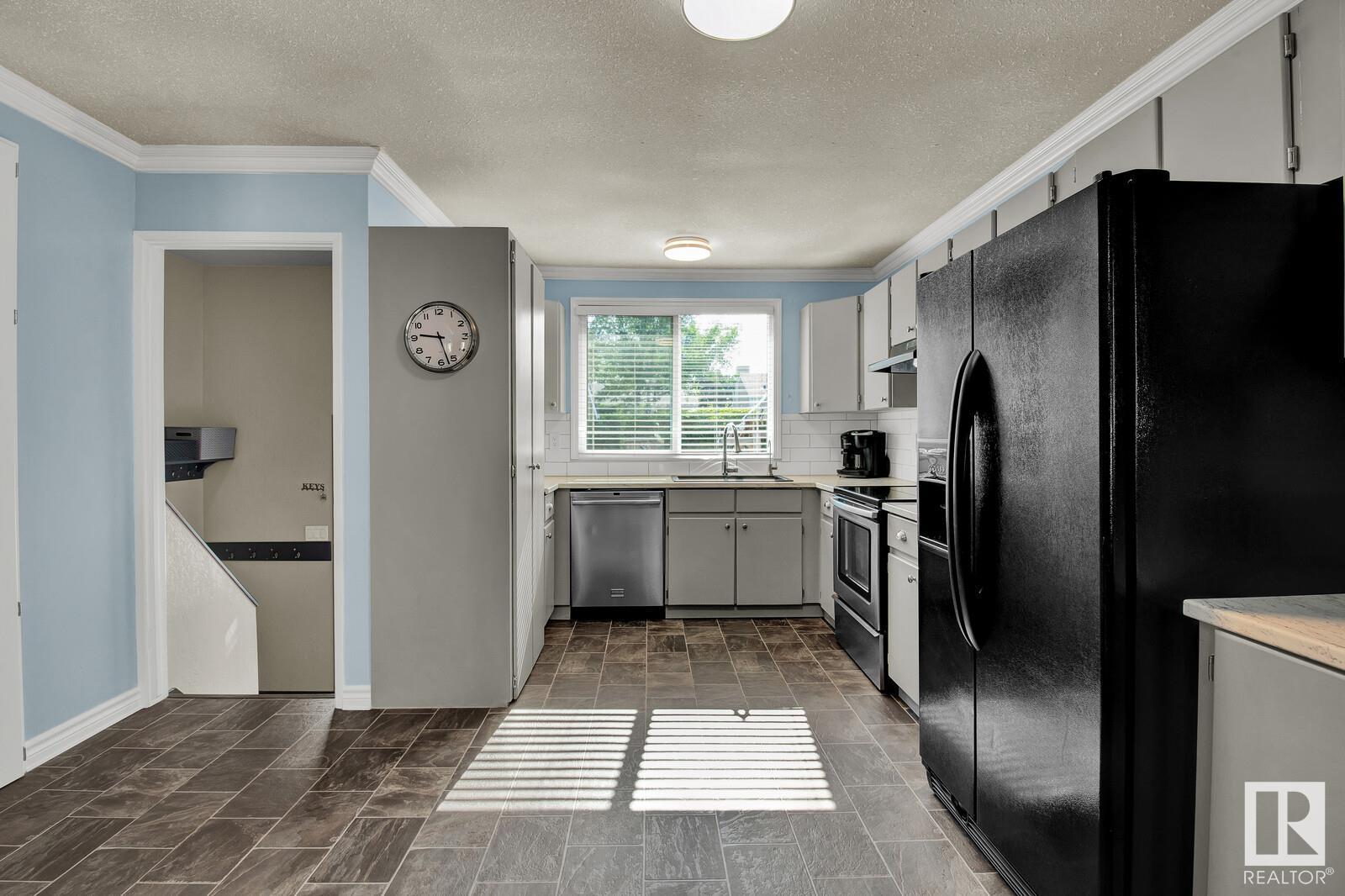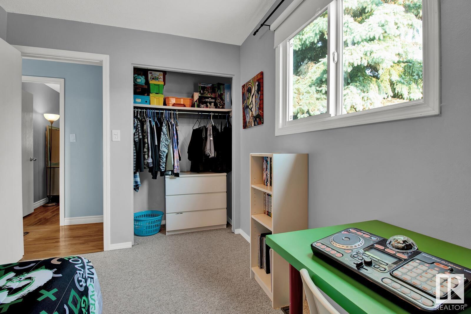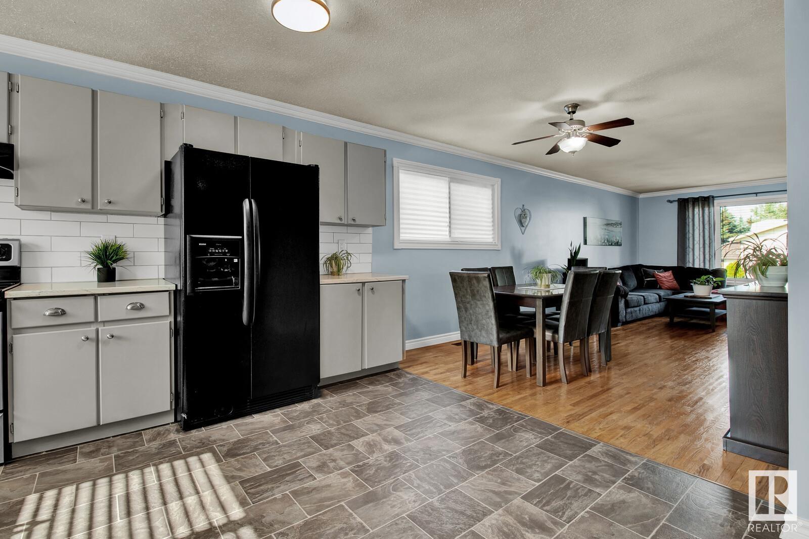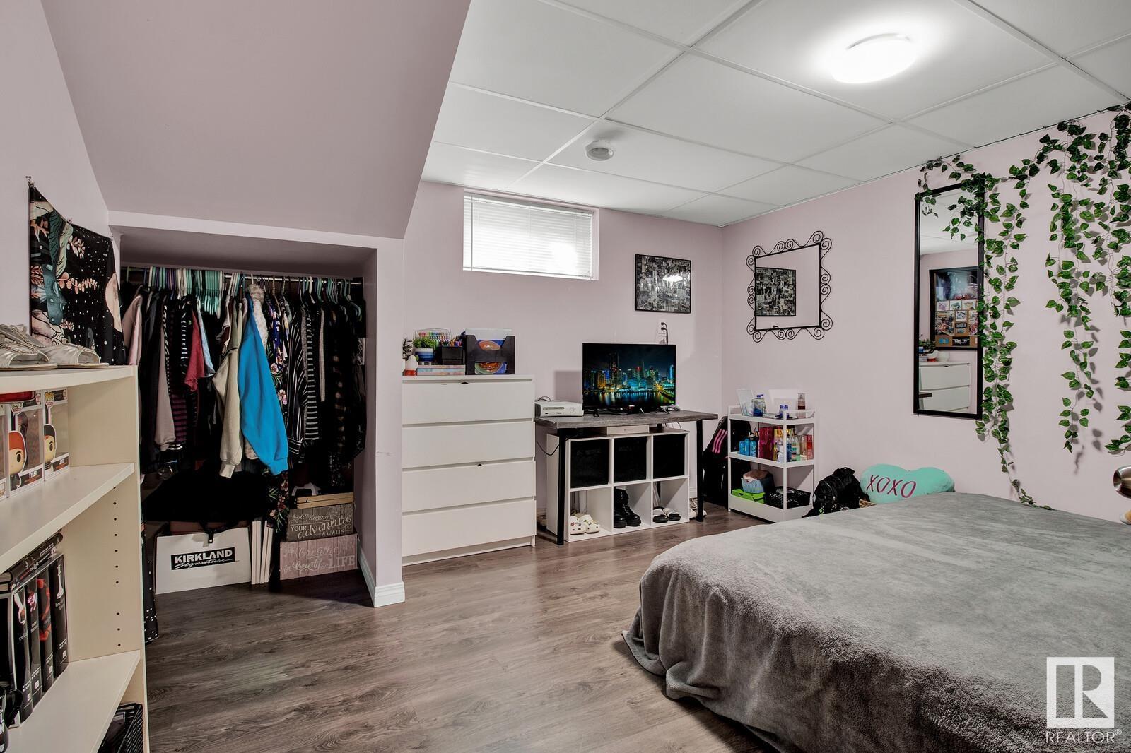 Gorgeous bungalow is located in a quiet crescent only steps to schools (Jr High & K-6), bus and quick access to Anthony Henday. Open floor plan with spacious kitchen open to dining and living areas. Features hardwood, vinyl plank and ceramic tile flooring, California knock down ceiling with crown moulding, spacious kitchen with 2 pantries. The kitchen over looks the fully fenced backyard with a large deck and patio. Basement is nicely finished with a 4th bedroom, family room, games room, laundry/storage room and full bathroom. Oversized 24 x 22 heated garage with 220V. Lots of parking including potential RV parking. Upgrades include furnace, hot water tank, facia, soffit and windows. Very well maintained inside and out. Shows great! For more details please visit the REALTOR's Website. (id:22211)