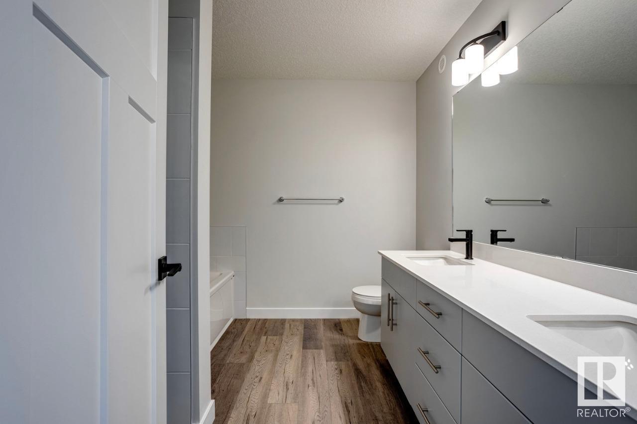 The Accolade by Sterling Homes offers the ultimate in style and functionality. Enjoy a double attached garage, 9' ceilings on the main level, and Luxury Vinyl Plank Flooring throughout. The inviting foyer features a large coat closet and a convenient full 3-piece bath accessible from the main floor den with walk-in closet, opening up to the open-concept nook, great room, and kitchen. The highly functional kitchen boasts generous quartz countertops, a Silgranit sink with a Moen Indie black matte pull-down faucet, plenty cabinets with uppers that go to the ceiling, soft close doors, and a large corner pantry complete the space. The great room features a fireplace and large windows, with a garden door leading to the backyard. Upstairs, a bright primary suite offers a walk-around closet and a 5-piece ensuite with double sinks, tub, and walk-in shower with glass doors. There's also a convenient bonus room, main 4-piece bath, laundry room, and three more comfortable bedrooms. (id:22211)