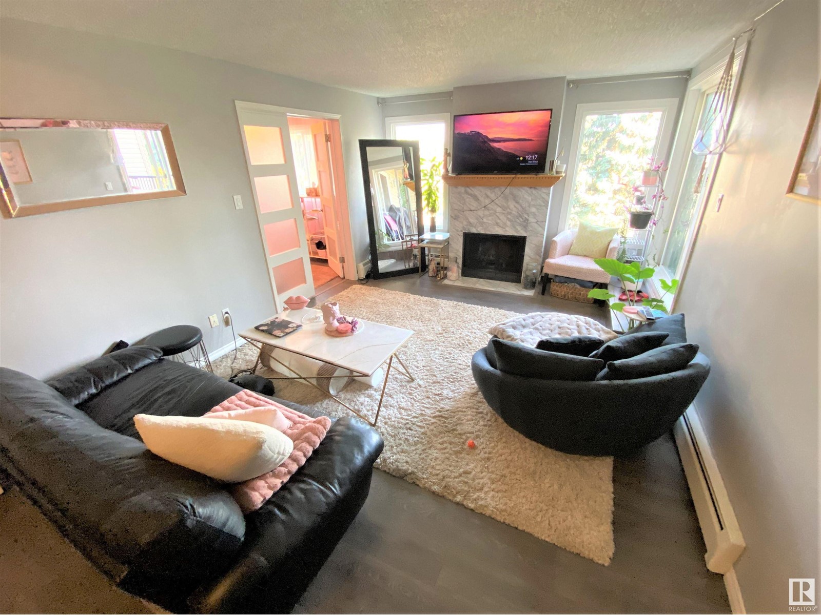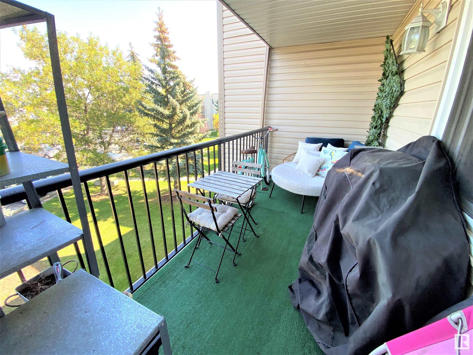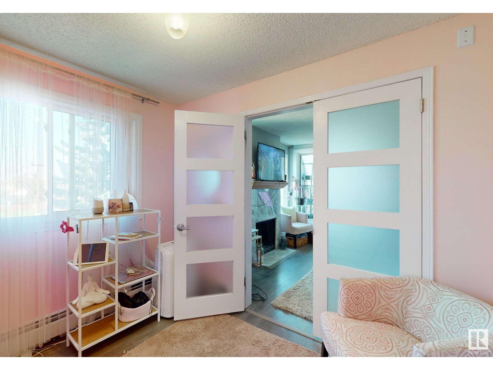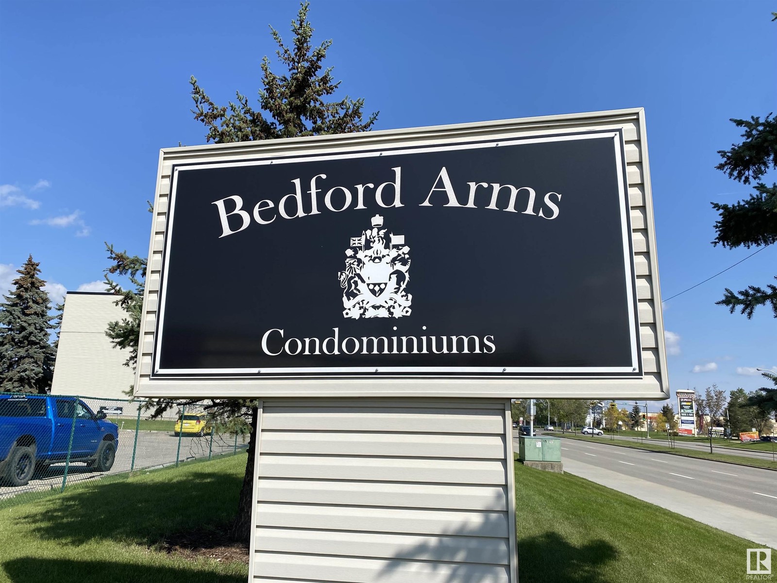 1 bedroom plus den, 3rd floor unit in the well-managed condo complex, Bedford Arms. This cozy 830 square foot unit features an excellent floor plan. Spacious white kitchen with built-in dishwasher and pass-through window to the open-concept dining area. Sunken living room with wood-burning fireplace, two large windows, French doors that lead to the den/office and sliding glass doors that lead to the north-facing balcony. Finishing off the unit is the generous-sized owners room with double closets, an upgraded 4-piece bathroom and an in-suite storage room. Dual coin-operated laundry room located on the same floor. This condo building boasts security cameras and ample visitor parking; located near parks, trails and all amenities including West Edmonton Mall. Great opportunity! (id:22211)