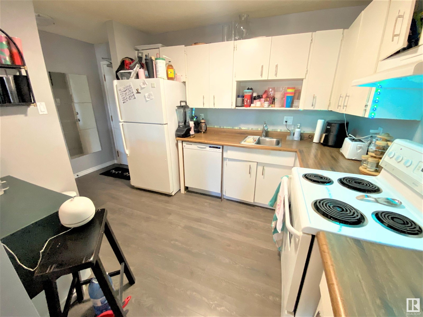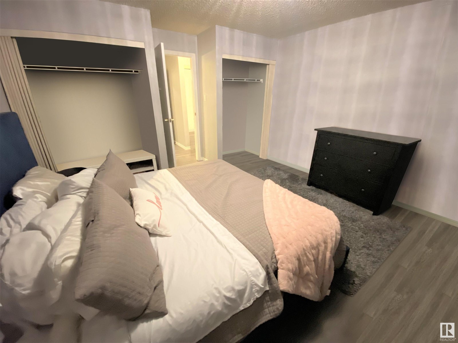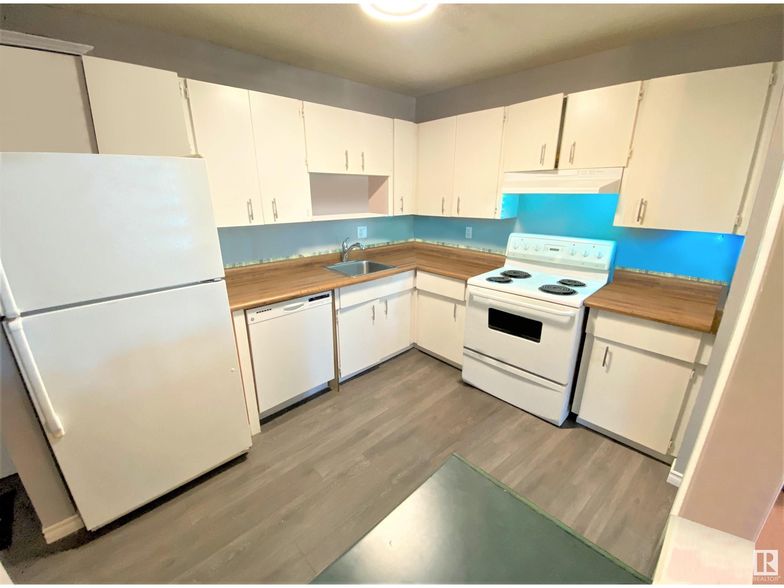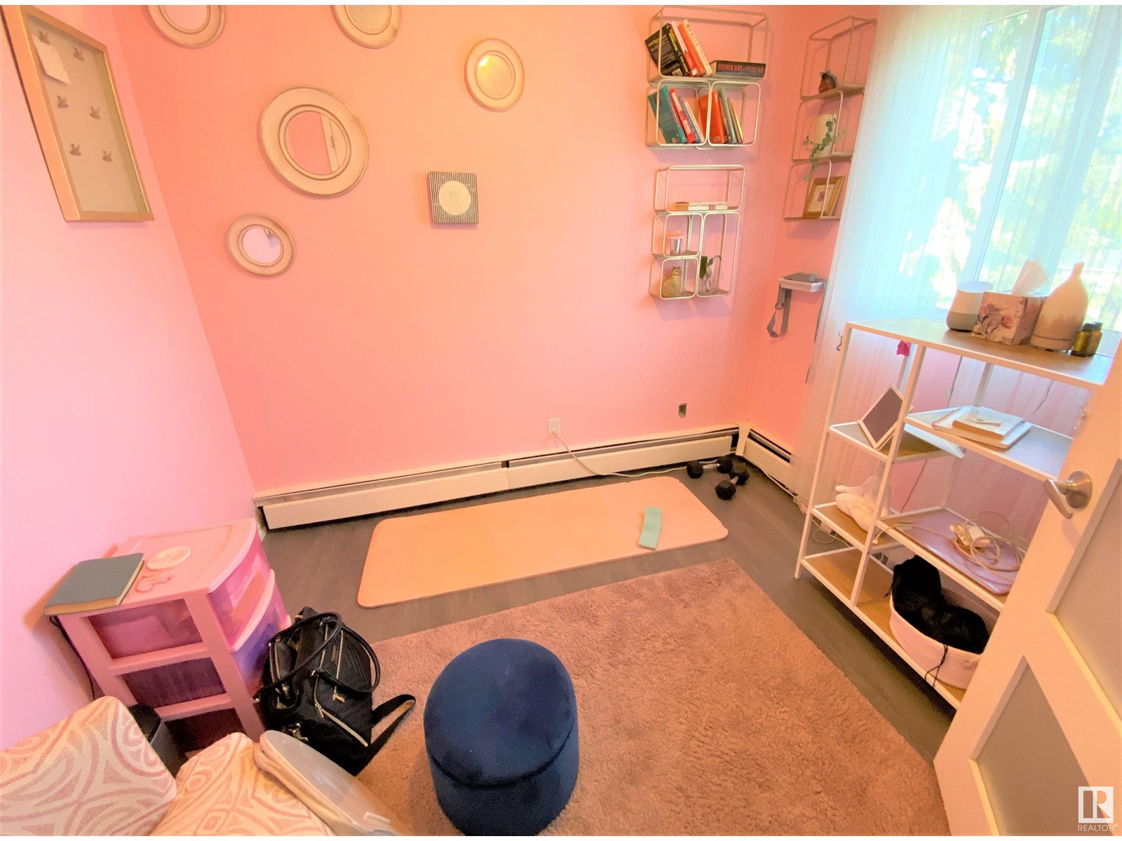 1 bedroom plus den, 3rd floor unit in the well-managed condo complex, Bedford Arms. This cozy 830 square foot unit features an excellent floor plan. Spacious white kitchen with built-in dishwasher and pass-through window to the open-concept dining area. Sunken living room with wood-burning fireplace, two large windows, French doors that lead to the den/office and sliding glass doors that lead to the north-facing balcony. Finishing off the unit is the generous-sized owners room with double closets, an upgraded 4-piece bathroom and an in-suite storage room. Dual coin-operated laundry room located on the same floor. This condo building boasts security cameras and ample visitor parking; located near parks, trails and all amenities including West Edmonton Mall. Great opportunity! (id:22211)