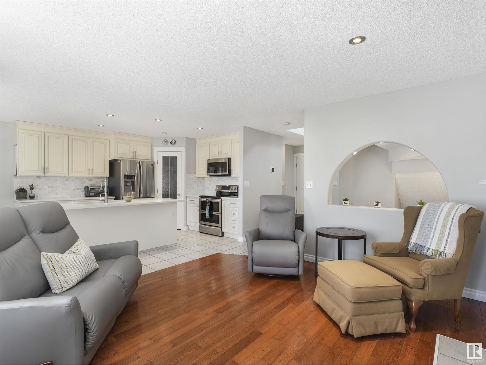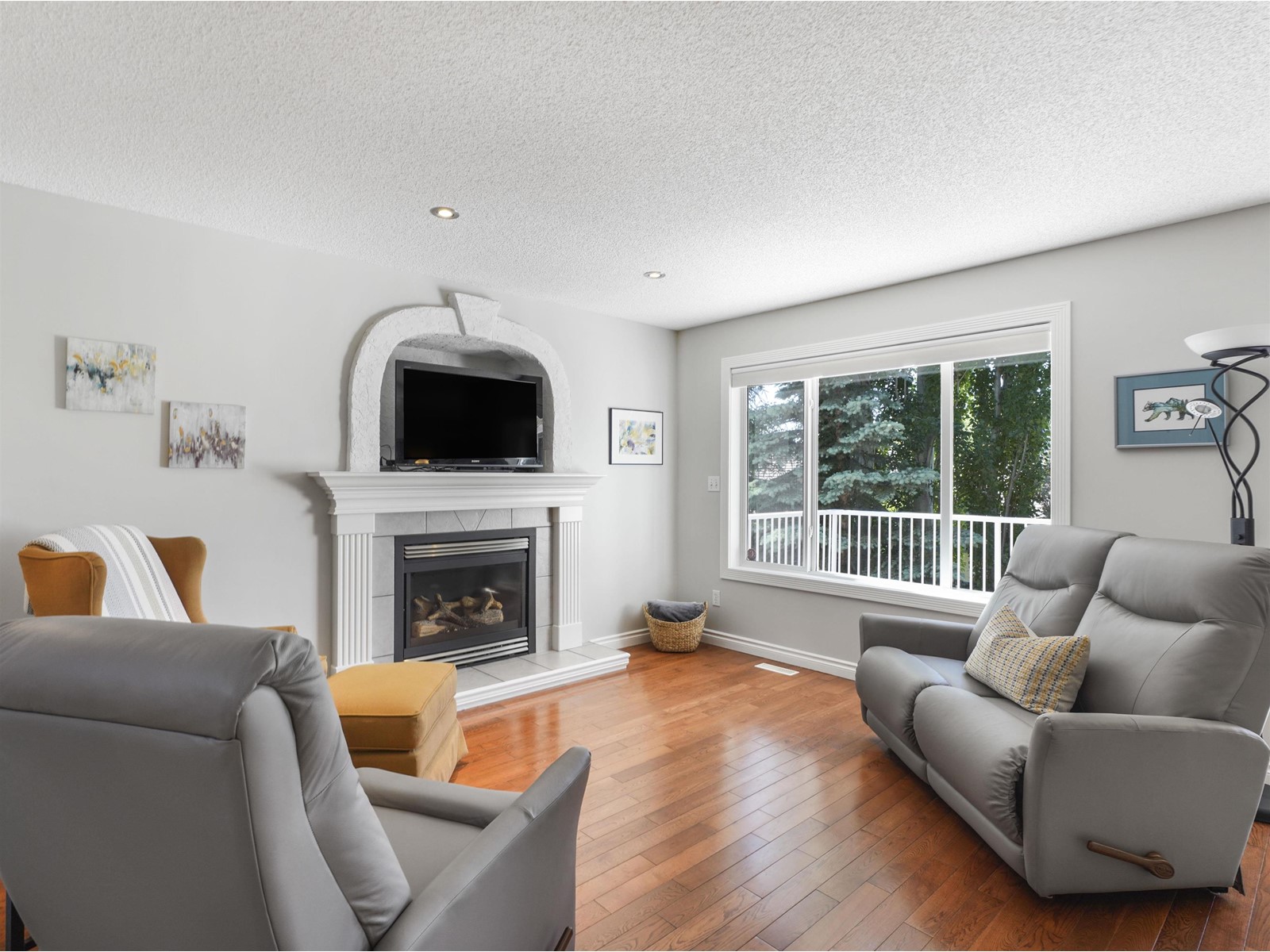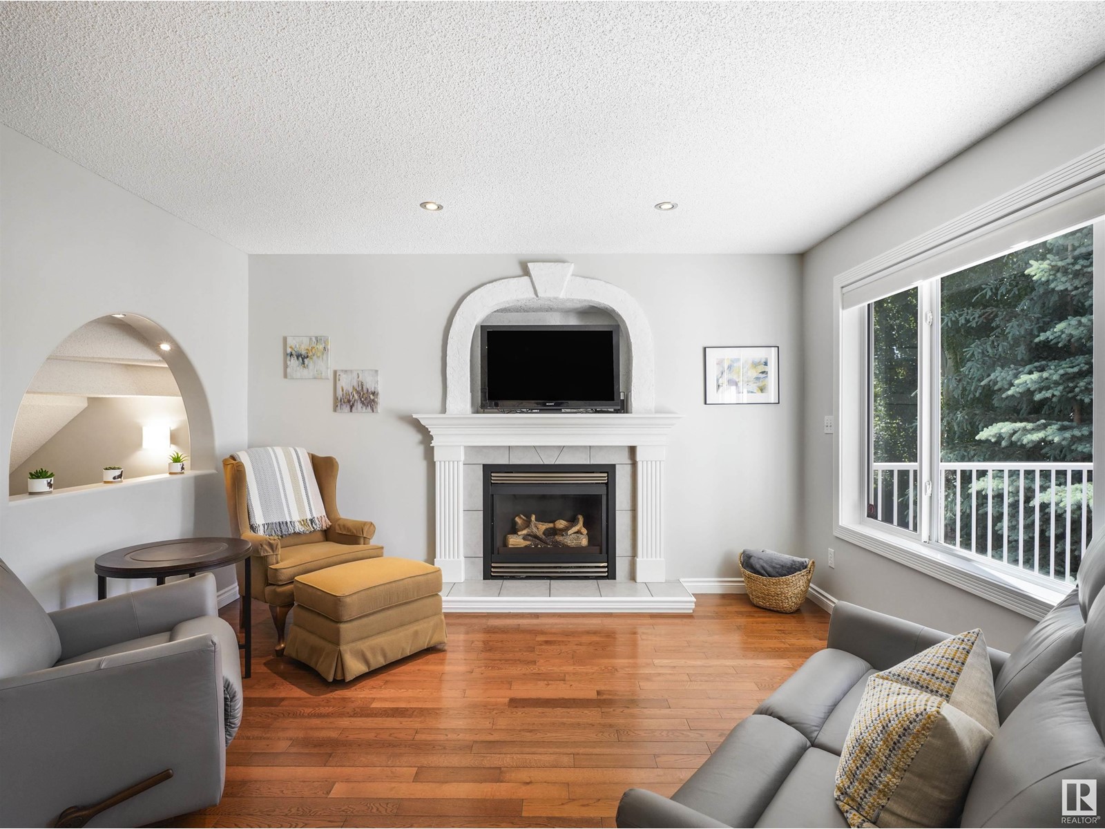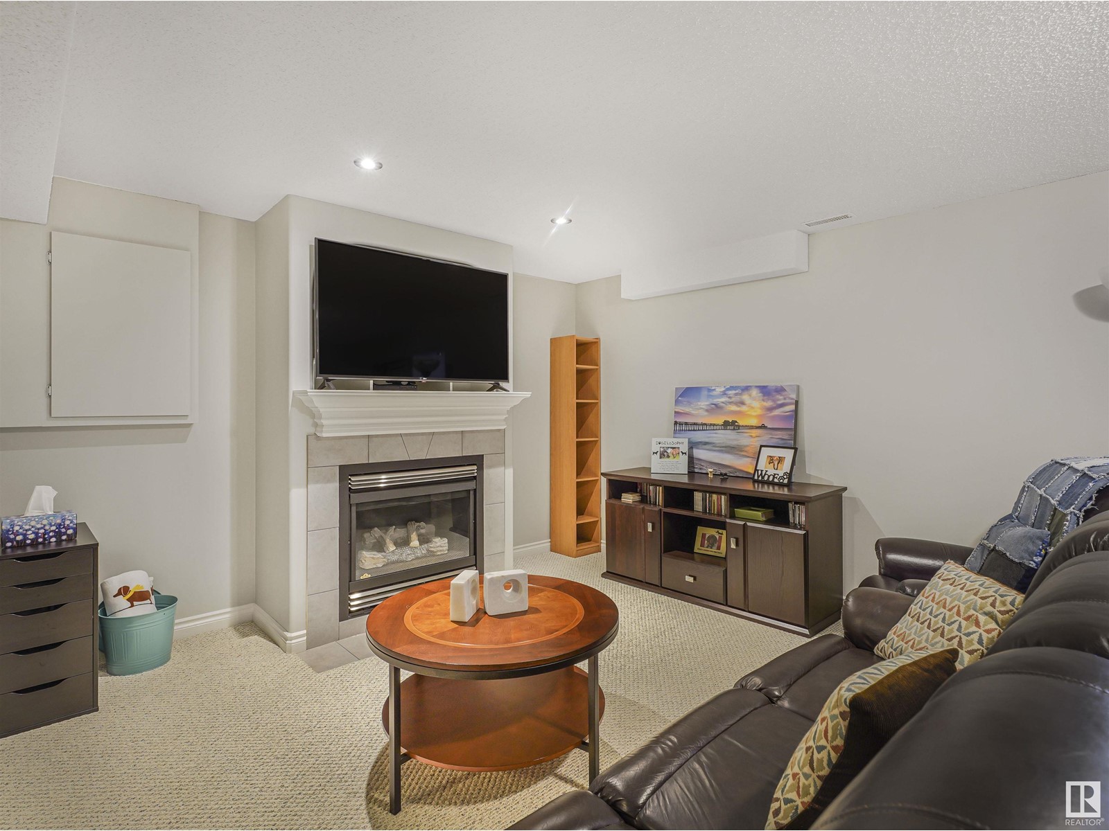 Beautiful duplex-style condo in BLACKBURN RAVINE! Explore the exclusive neighborhood of Blackburne Creek with its many trails great for running & nature walks. Soaring ceilings & open concept greet you at the front entry, with 1340 SF, 3 bdrms, 3 1/2 baths & DOUBLE ATTACHED GARAGE! The great room features hardwood floors, Hunter Douglas blinds, gas fireplace & a beautifully renovated island kitchen complete with new cabinets in vintage cream, QUARTZ countertops, stainless steel appliances, tiled backsplash & corner pantry. Connected dining space overlooks the rear yard/trees, where you can also enjoy your deck in privacy. Main floor 1/2 bath with laundry completes the this level. Upstairs is a oversized primary bedroom with walk-through closet & private 3 pce ensuite. 2 additional guest rooms and 4 pce bath are down the hall. The fully finished basement offers a large family/rec. area with 2nd gas fireplace and 3 pce bath. Close to playground & picnic area, amenities on 111 St. just South of the Henday. (id:22211)
