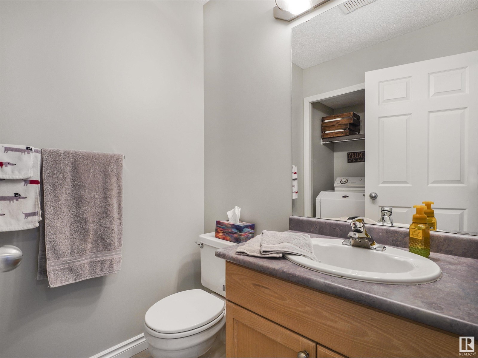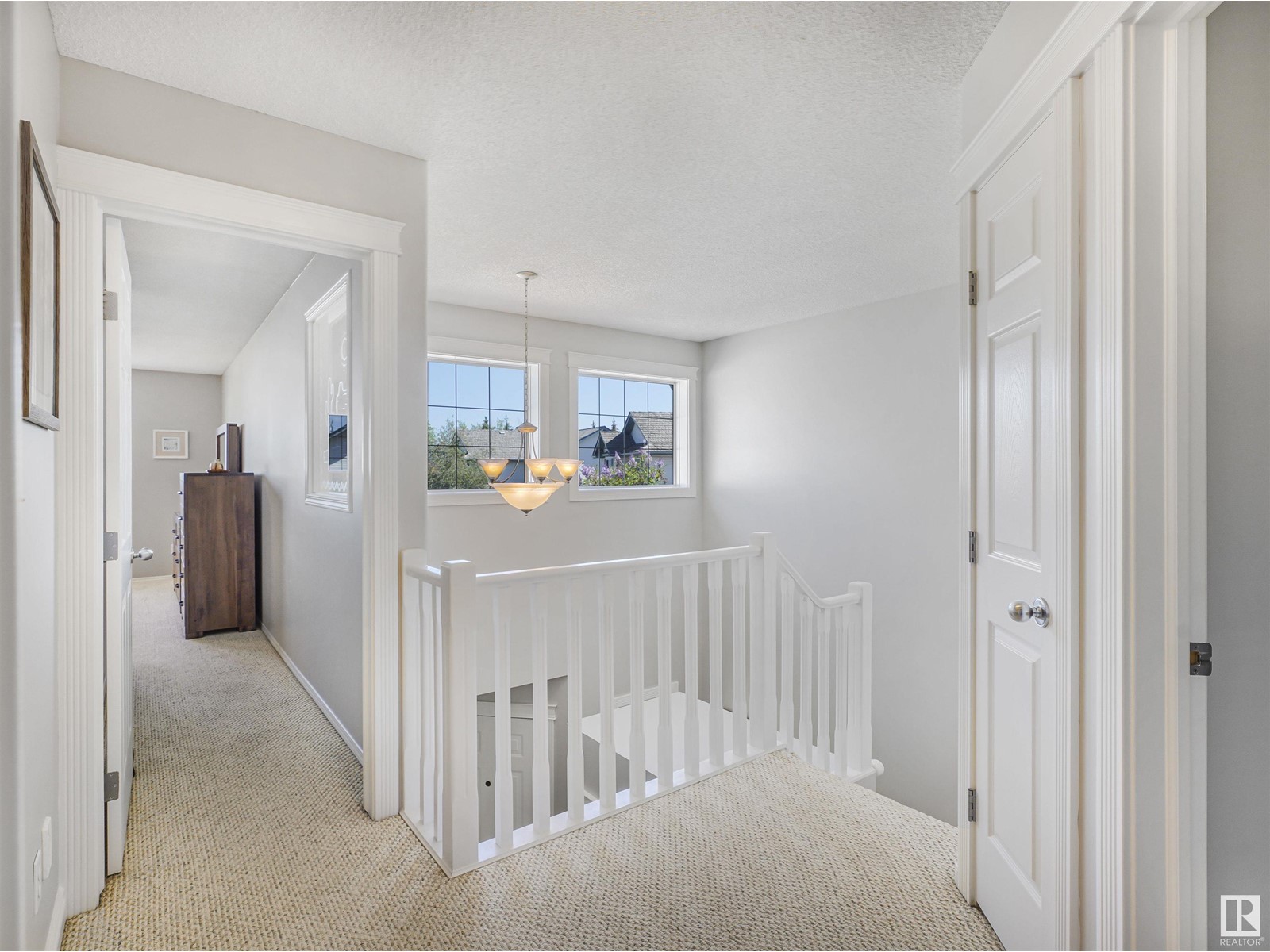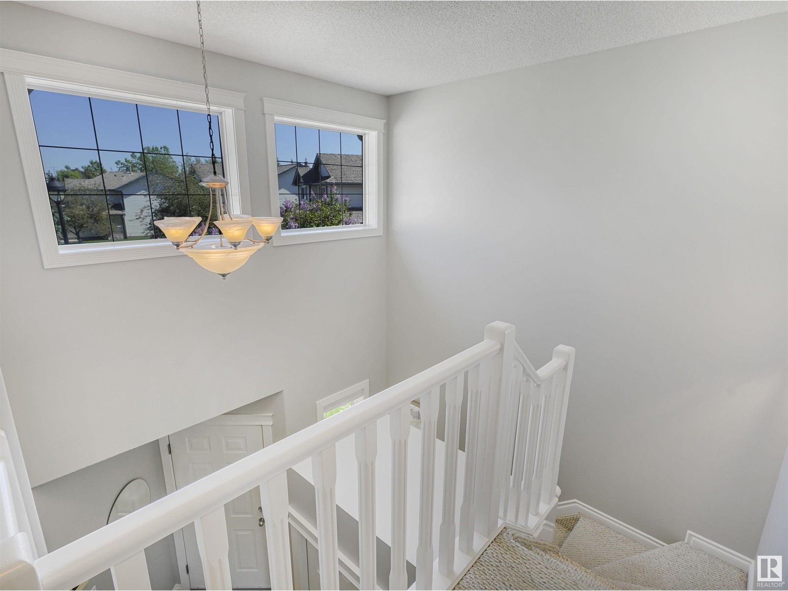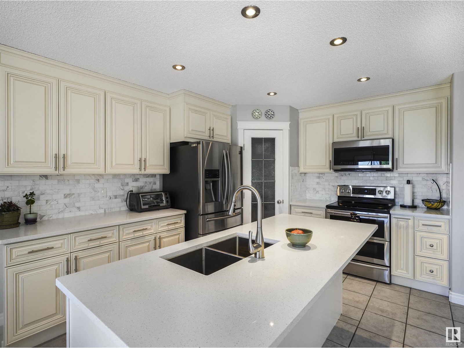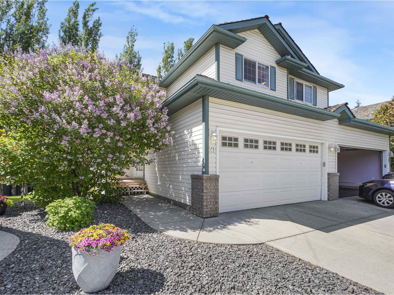 Beautiful duplex-style condo in BLACKBURN RAVINE! Explore the exclusive neighborhood of Blackburne Creek with its many trails great for running & nature walks. Soaring ceilings & open concept greet you at the front entry, with 1340 SF, 3 bdrms, 3 1/2 baths & DOUBLE ATTACHED GARAGE! The great room features hardwood floors, Hunter Douglas blinds, gas fireplace & a beautifully renovated island kitchen complete with new cabinets in vintage cream, QUARTZ countertops, stainless steel appliances, tiled backsplash & corner pantry. Connected dining space overlooks the rear yard/trees, where you can also enjoy your deck in privacy. Main floor 1/2 bath with laundry completes the this level. Upstairs is a oversized primary bedroom with walk-through closet & private 3 pce ensuite. 2 additional guest rooms and 4 pce bath are down the hall. The fully finished basement offers a large family/rec. area with 2nd gas fireplace and 3 pce bath. Close to playground & picnic area, amenities on 111 St. just South of the Henday. (id:22211)