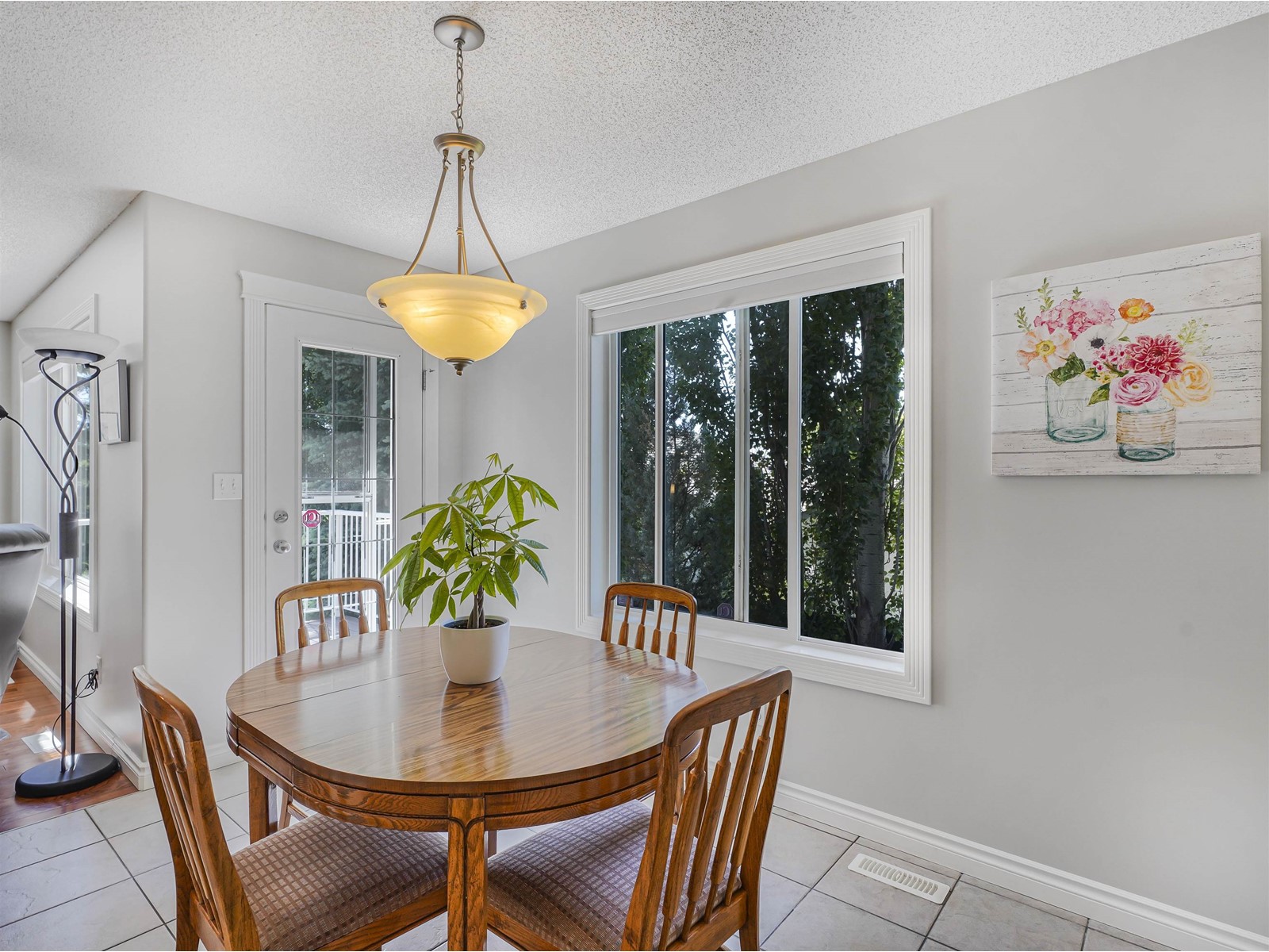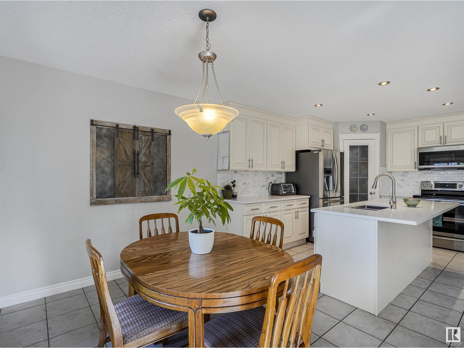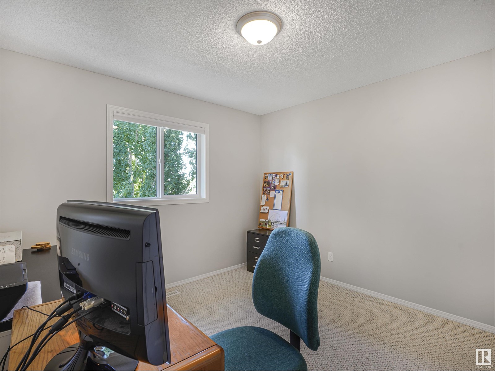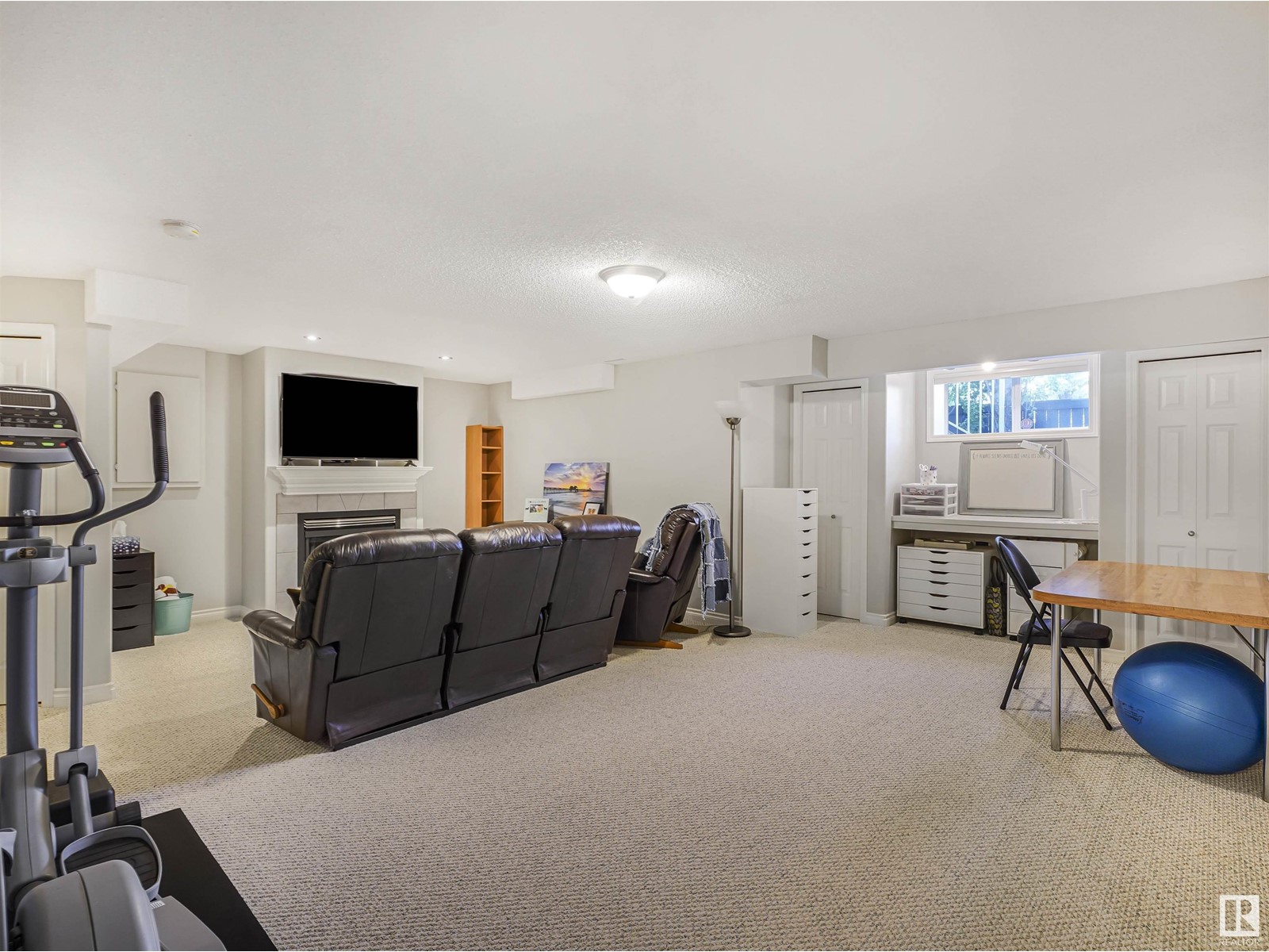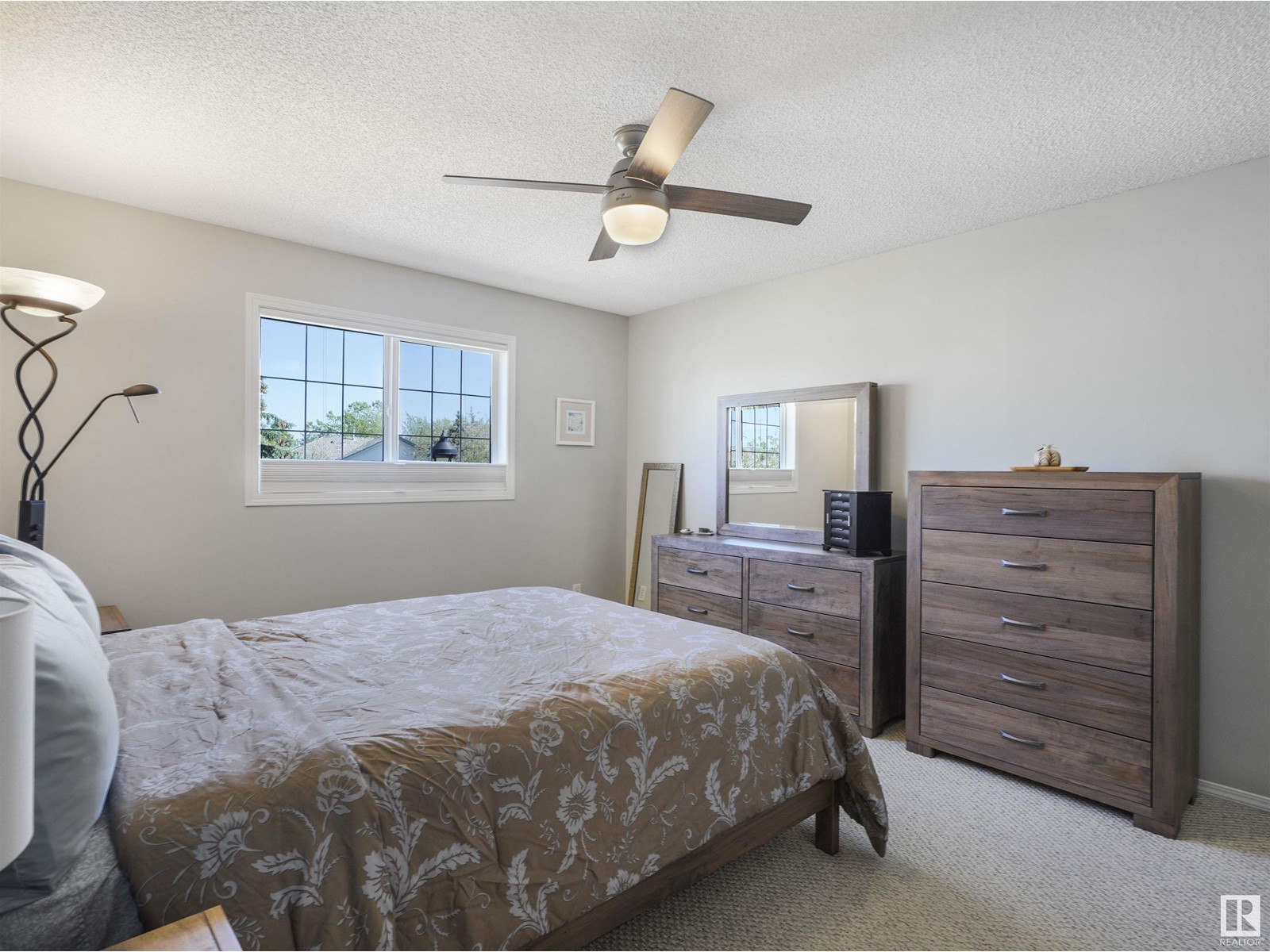 Beautiful duplex-style condo in BLACKBURN RAVINE! Explore the exclusive neighborhood of Blackburne Creek with its many trails great for running & nature walks. Soaring ceilings & open concept greet you at the front entry, with 1340 SF, 3 bdrms, 3 1/2 baths & DOUBLE ATTACHED GARAGE! The great room features hardwood floors, Hunter Douglas blinds, gas fireplace & a beautifully renovated island kitchen complete with new cabinets in vintage cream, QUARTZ countertops, stainless steel appliances, tiled backsplash & corner pantry. Connected dining space overlooks the rear yard/trees, where you can also enjoy your deck in privacy. Main floor 1/2 bath with laundry completes the this level. Upstairs is a oversized primary bedroom with walk-through closet & private 3 pce ensuite. 2 additional guest rooms and 4 pce bath are down the hall. The fully finished basement offers a large family/rec. area with 2nd gas fireplace and 3 pce bath. Close to playground & picnic area, amenities on 111 St. just South of the Henday. (id:22211)
