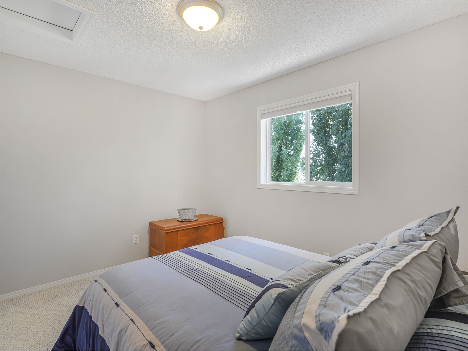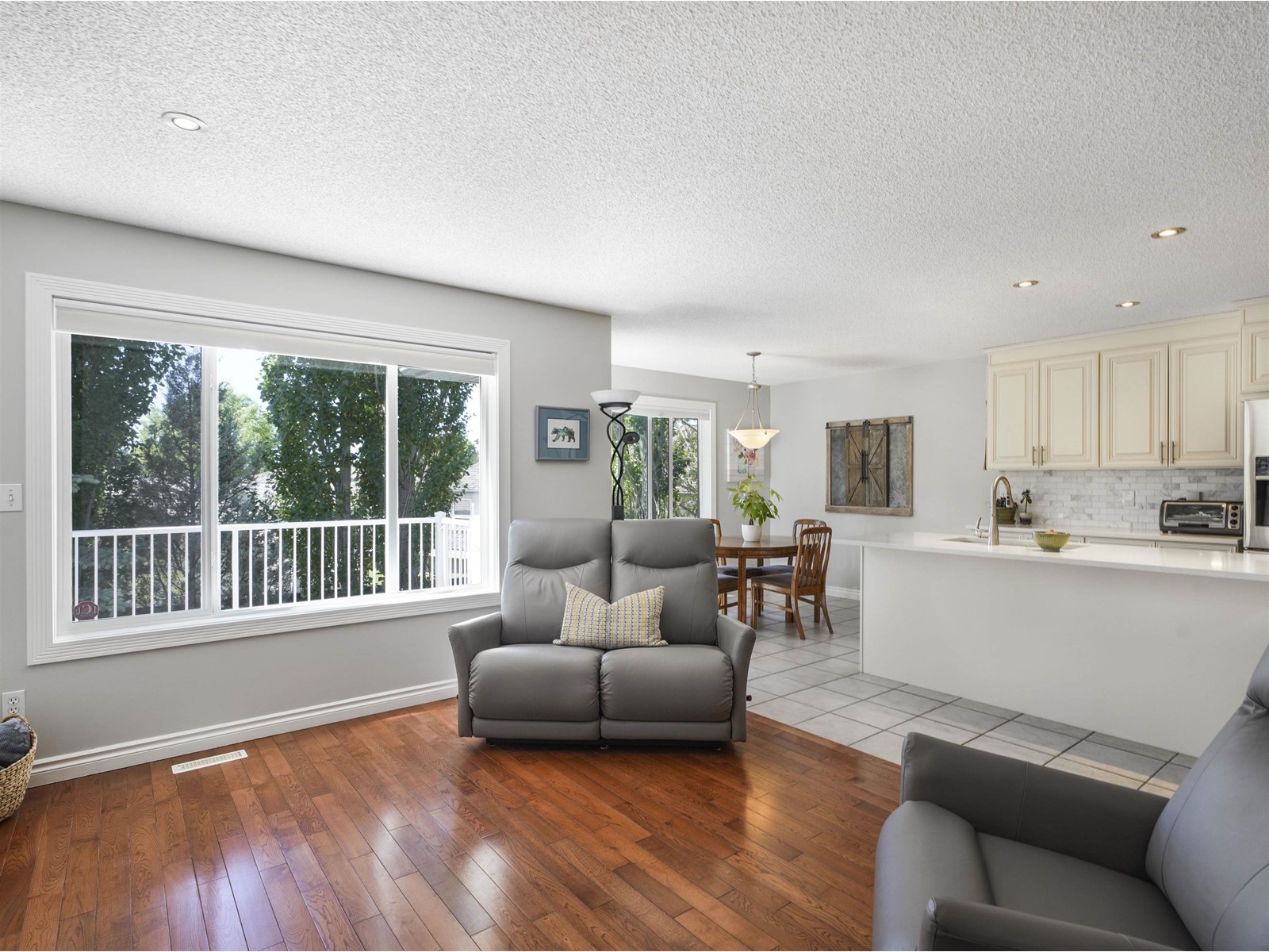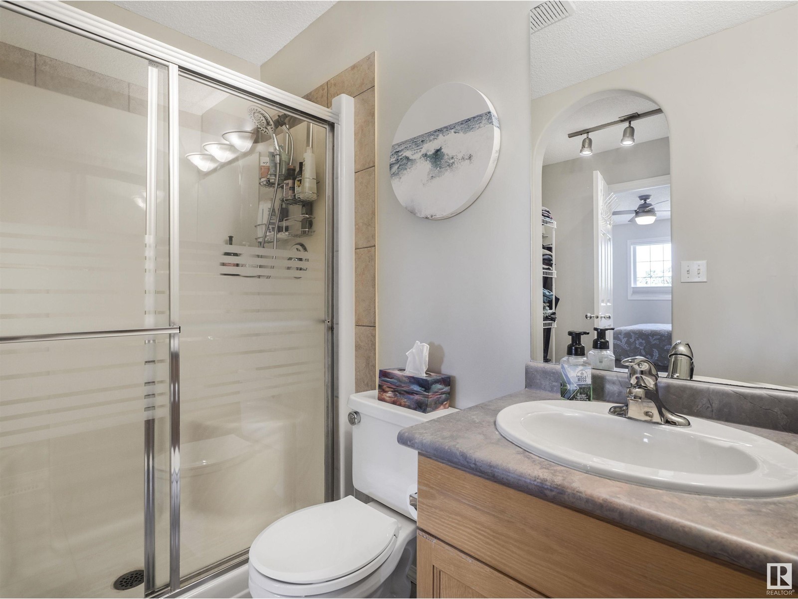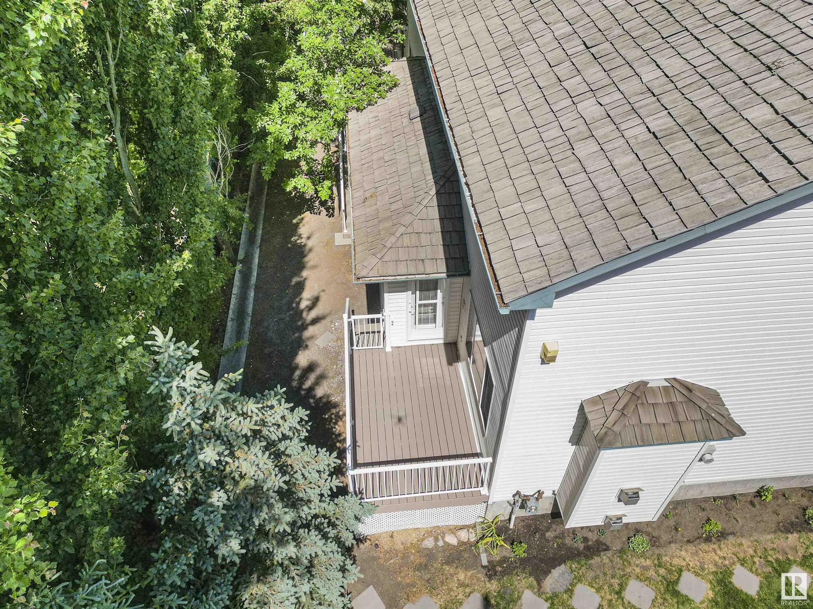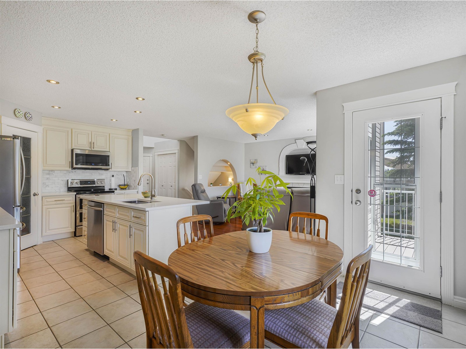 Beautiful duplex-style condo in BLACKBURN RAVINE! Explore the exclusive neighborhood of Blackburne Creek with its many trails great for running & nature walks. Soaring ceilings & open concept greet you at the front entry, with 1340 SF, 3 bdrms, 3 1/2 baths & DOUBLE ATTACHED GARAGE! The great room features hardwood floors, Hunter Douglas blinds, gas fireplace & a beautifully renovated island kitchen complete with new cabinets in vintage cream, QUARTZ countertops, stainless steel appliances, tiled backsplash & corner pantry. Connected dining space overlooks the rear yard/trees, where you can also enjoy your deck in privacy. Main floor 1/2 bath with laundry completes the this level. Upstairs is a oversized primary bedroom with walk-through closet & private 3 pce ensuite. 2 additional guest rooms and 4 pce bath are down the hall. The fully finished basement offers a large family/rec. area with 2nd gas fireplace and 3 pce bath. Close to playground & picnic area, amenities on 111 St. just South of the Henday. (id:22211)