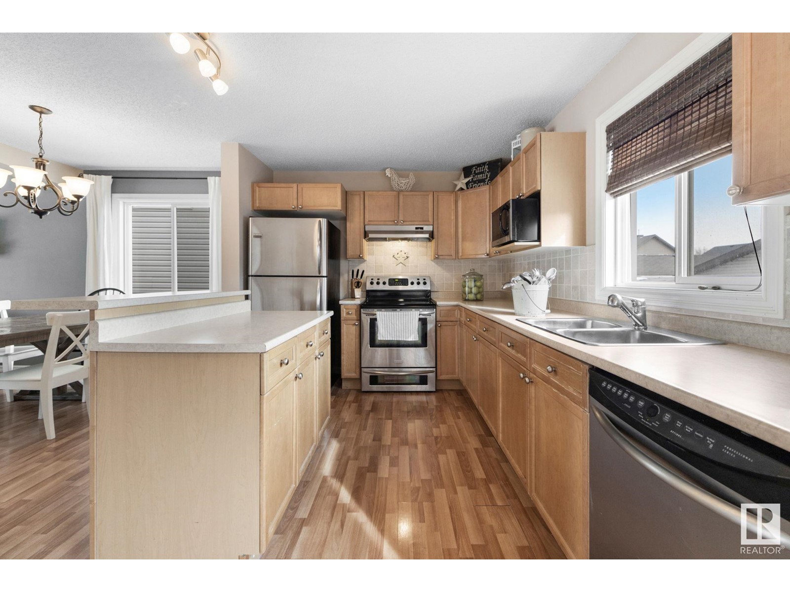 Welcome to this cozy 2 Storey located in Suder Greens. Boasting 1969 sq ft of combined space, 4 bedrooms, & 3.1 bathrooms. The open concept main floor features a spacious living room with large windows allowing an abundance of natural light, kitchen with stainless steel appliances & an island with a breakfast bar overlooking the backyard. There are 3 bedrooms on the upper level, including the primary bedroom with a walk-in-closet & 4pc ensuite. The fully finished basement includes a 4th bedroom, 4pc bathroom & a spacious family room. The backyard awaits your personal touch. Awesome location with easy access to the Anthony Henday, Whitemud & Amenities. (id:22211)