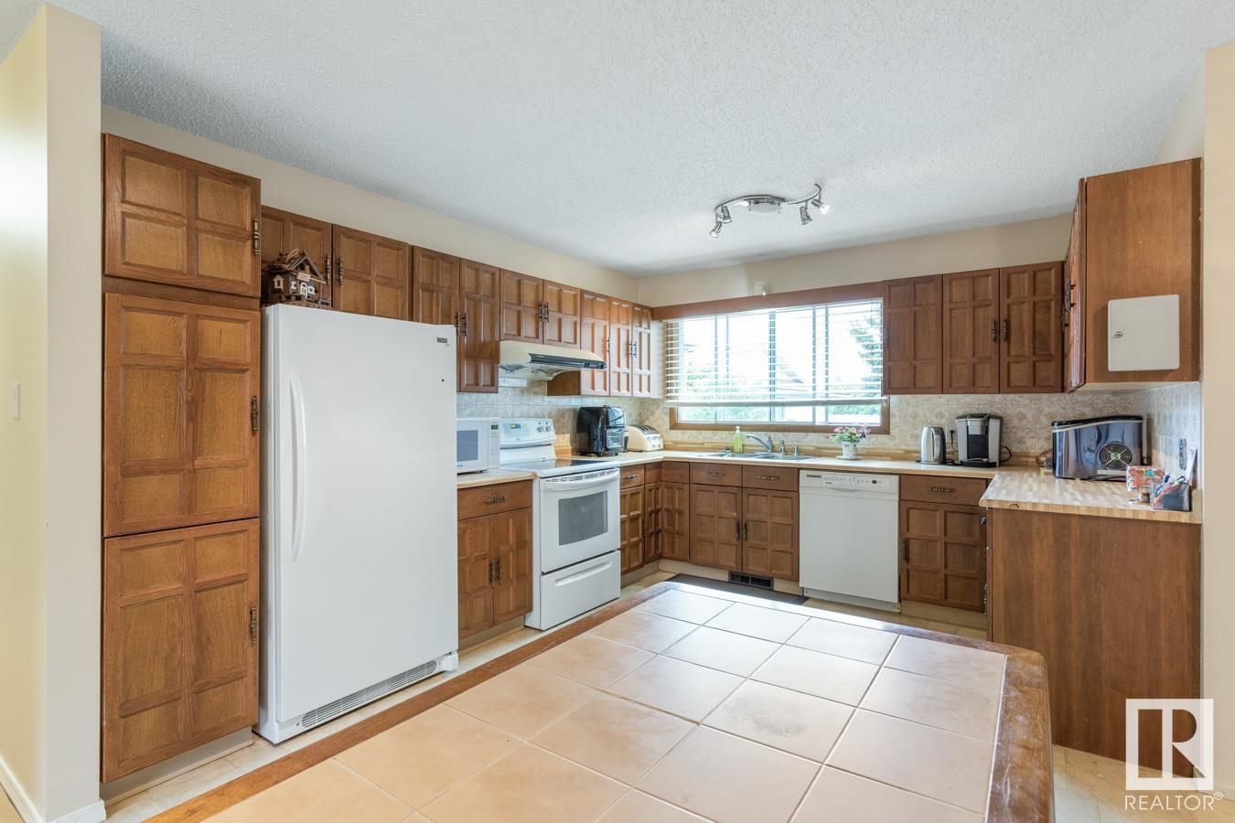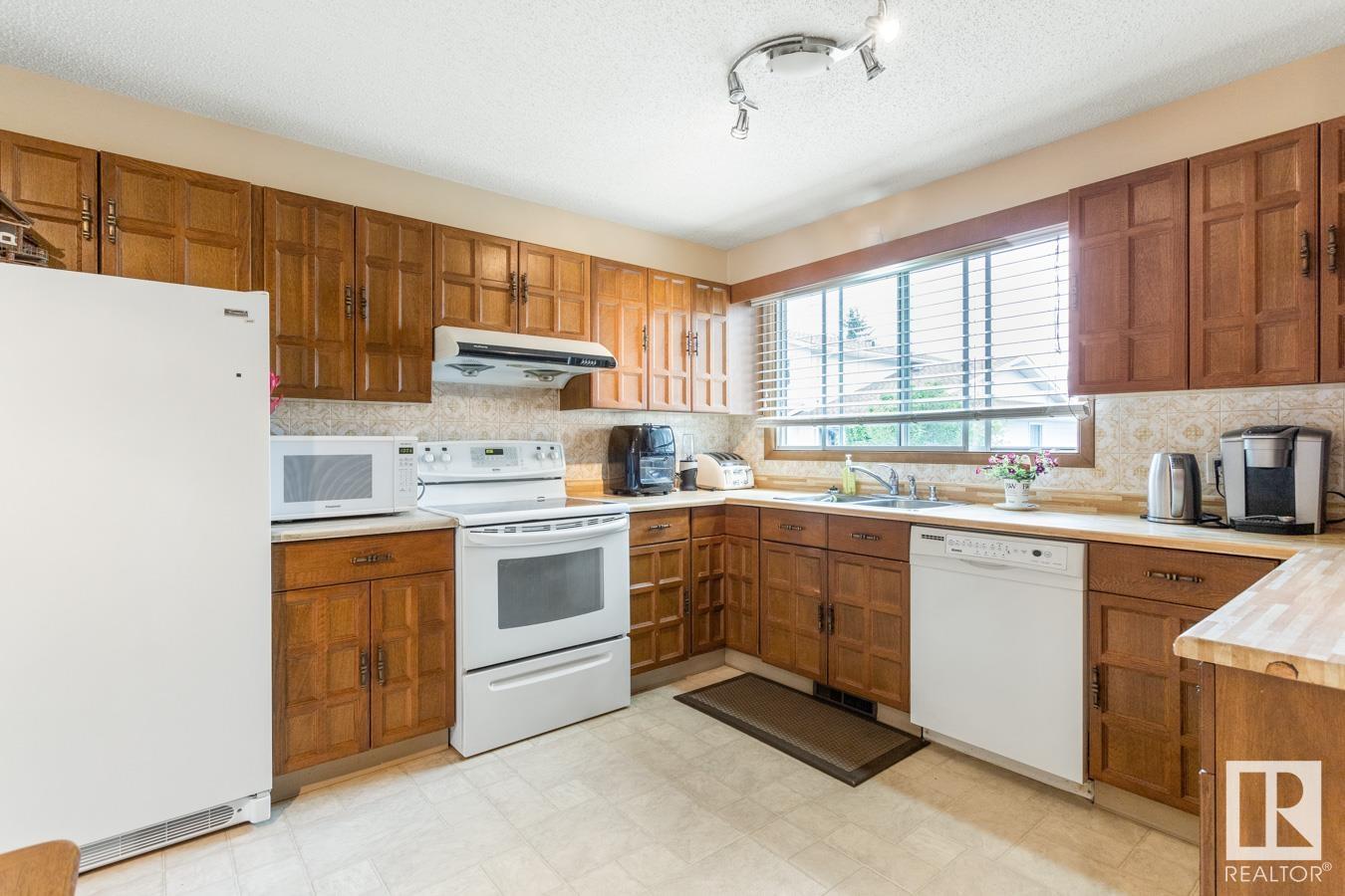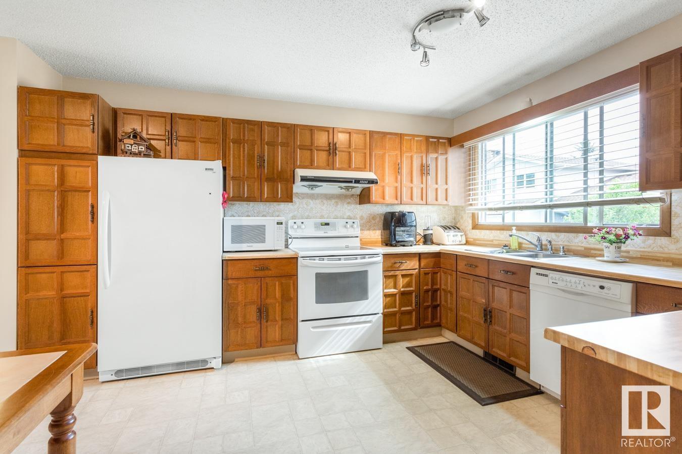 Welcome to this family home in Kernohan, steps away from the RAVINE & features 4 bedrooms, 3 baths & DOUBLE HEATED GARAGE! A spacious entrance invites you in to find laminate flooring, vaulted ceilings & cozy fireplace in the family sized living & dining room. The eat in kitchen offers plenty of cabinets & white appliances. King sized primary suite features a 3pc ensuite. 2 generous sized bedrooms, 4pc bathroom & laundry room compliment the functional layout. Moving down to the fully finished basement that offers SUITE POTENTIAL, currently features a large rec room, 4th bedroom, 3pc bathroom & tons of storage space. DREAM GARAGE is HEATED with ceiling mounted engine hoist & LOFT area for extra storage plus 240v wiring. LOVE the fenced & landscaped yard that is just steps away from the ravine, Hermitage Park, schools and shopping. This is the perfect family home! (id:22211)