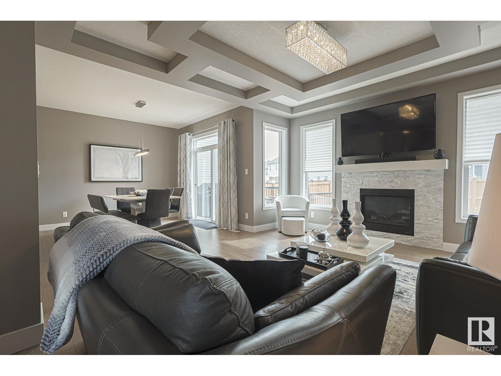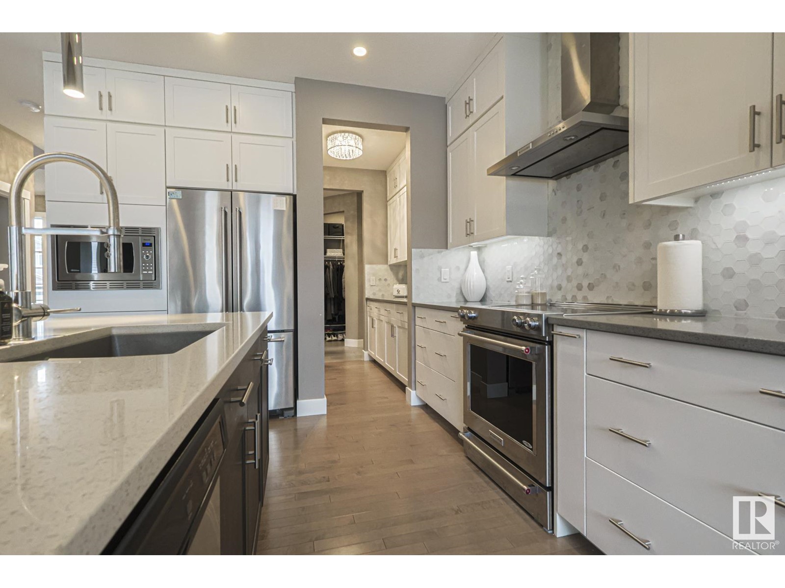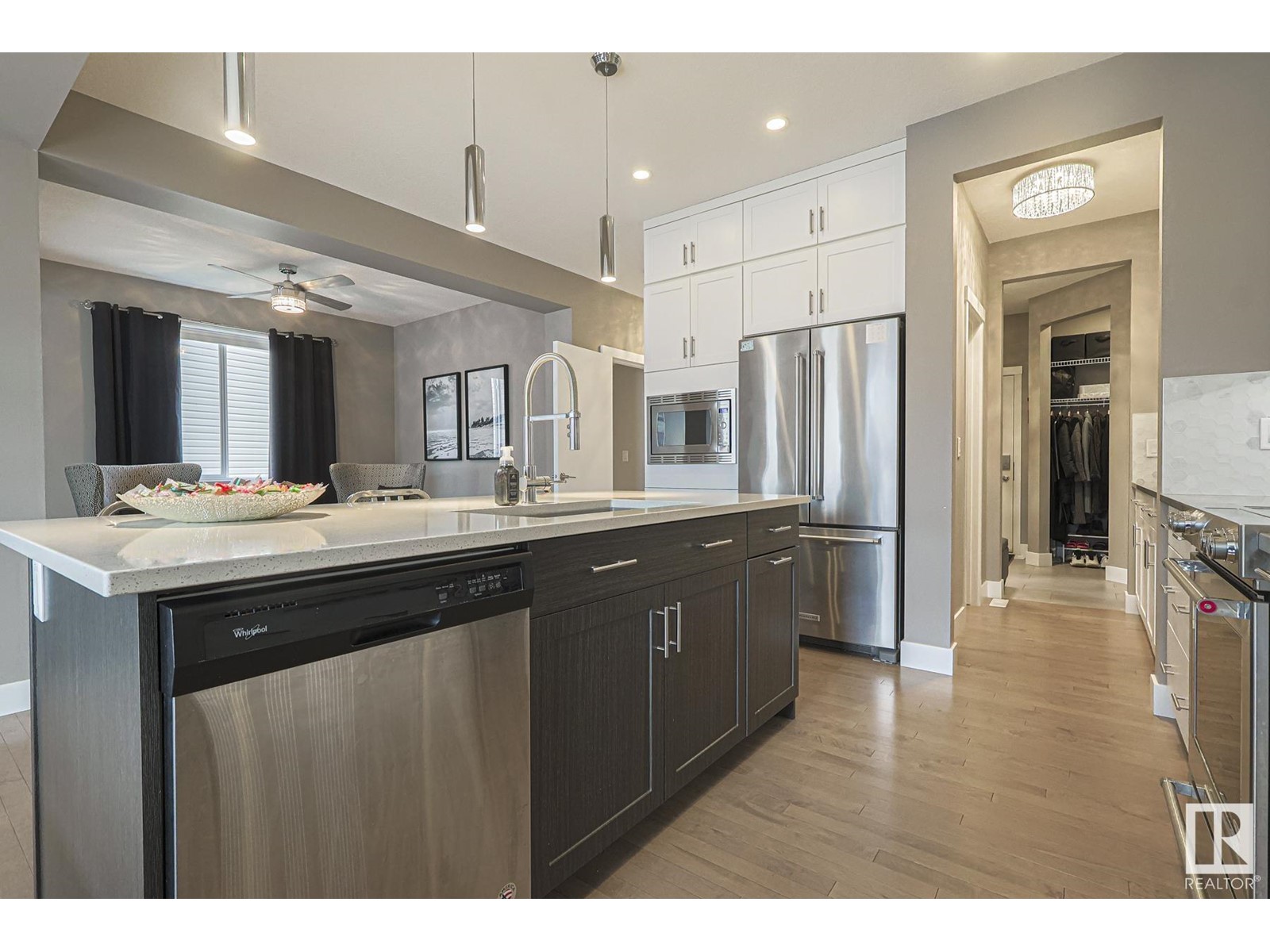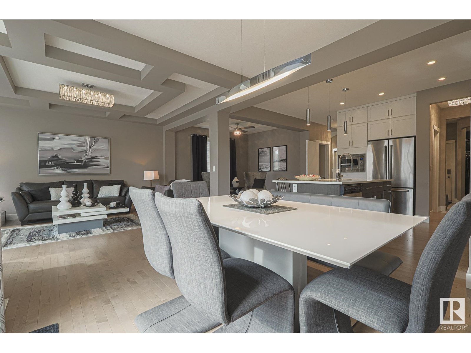 Awesome 2-storey home located in the desirable area of Chappelle close to all major amenities and steps to parks, schools and walking trails! Just under 2400sq ft of spacious and luxury living at its finest has 4bedrooms and 3.5 bathrooms. Large tile entry leads to a generous size flex/den area and a coffered ceiling LR with gas fireplace. A walk thru butlers kitchen/pantry leads to a gorgeous kitchen with extended kitchen cabinets, soft close doors/drawers, quartz counters and sink, glass backsplash, pull out spice racks and all upgraded SS appliances.Brand new oversized driveway with an oversized garage which is finished and a large mudroom with B/I shoe racks. Main floor has 9ft ceilings. Huge upstairs laundry, large BR with wet bar and electric fireplace. Large MB with a huge walk-in closet and 5pce ensuite. Basement is finished with separate entrance, kitchen, LR, bedroom, bath and its own washer/dryer. Huge 2-tier deck with a gas line. 2 furnaces and 2 HWT. Home is super clean and move in ready! (id:22211)
