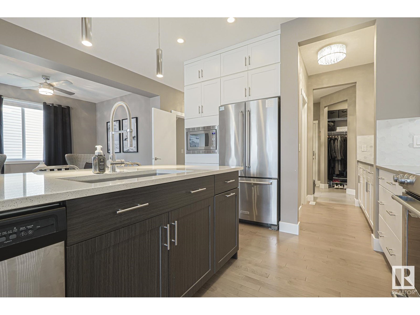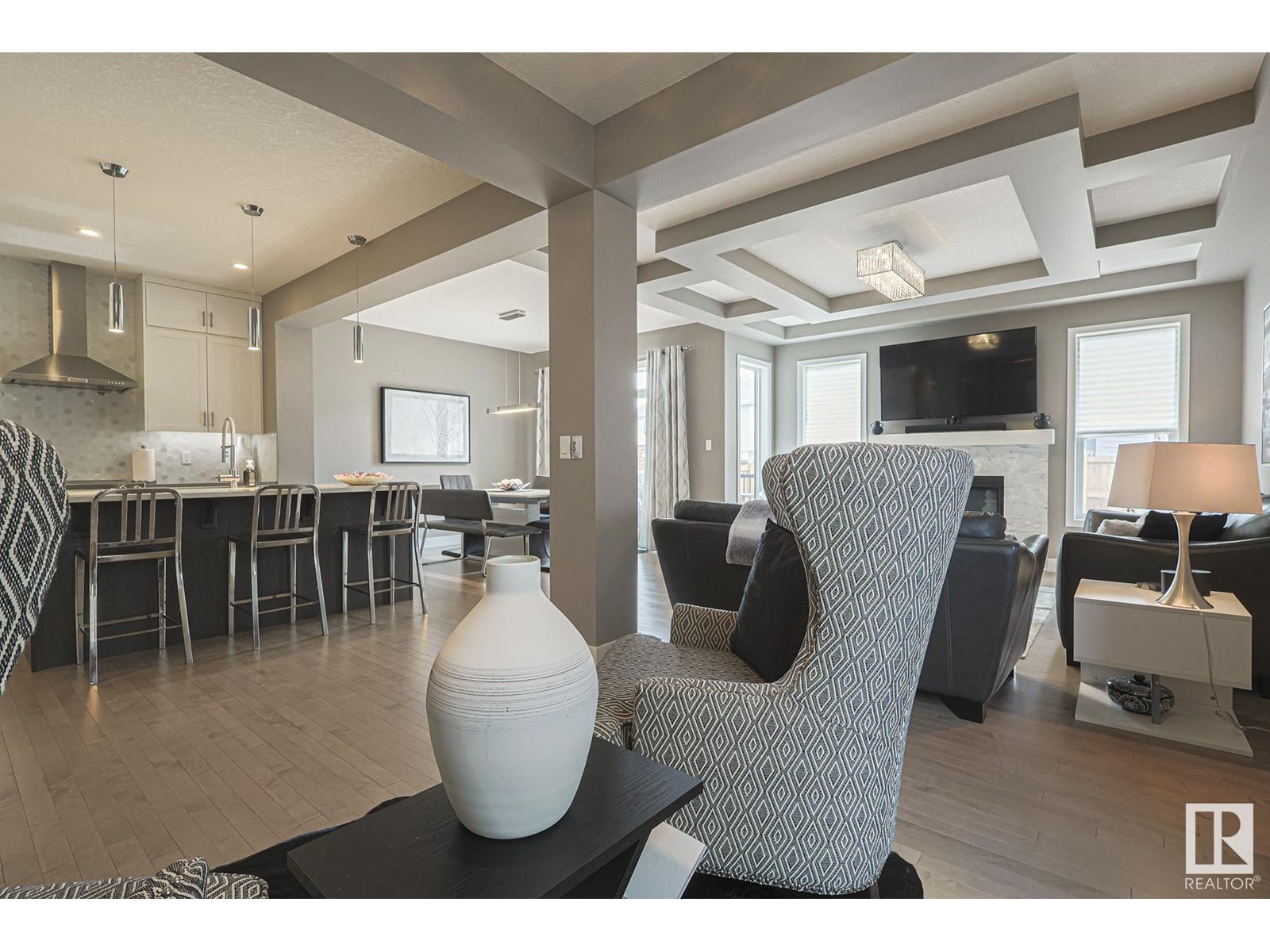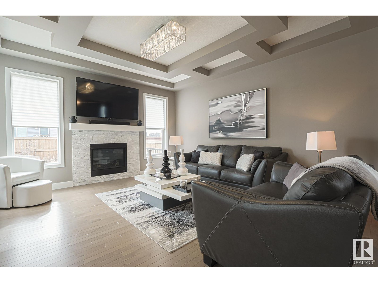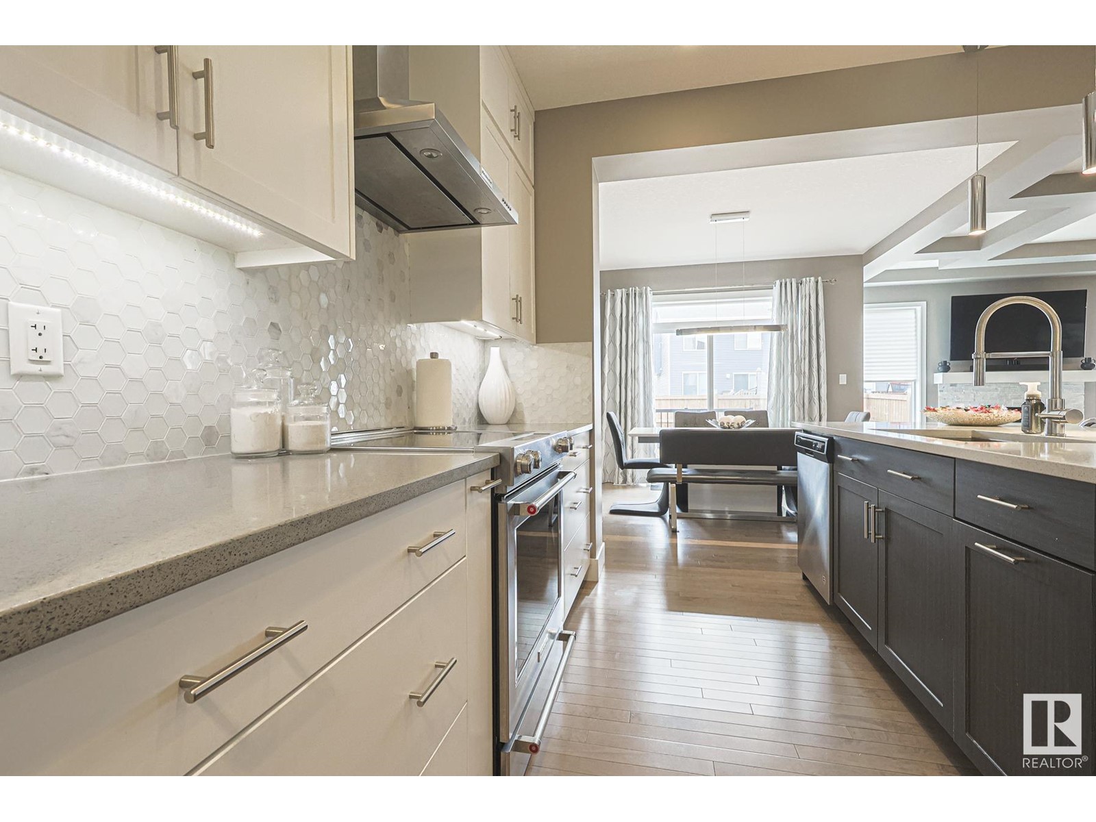 Awesome 2-storey home located in the desirable area of Chappelle close to all major amenities and steps to parks, schools and walking trails! Just under 2400sq ft of spacious and luxury living at its finest has 4bedrooms and 3.5 bathrooms. Large tile entry leads to a generous size flex/den area and a coffered ceiling LR with gas fireplace. A walk thru butlers kitchen/pantry leads to a gorgeous kitchen with extended kitchen cabinets, soft close doors/drawers, quartz counters and sink, glass backsplash, pull out spice racks and all upgraded SS appliances.Brand new oversized driveway with an oversized garage which is finished and a large mudroom with B/I shoe racks. Main floor has 9ft ceilings. Huge upstairs laundry, large BR with wet bar and electric fireplace. Large MB with a huge walk-in closet and 5pce ensuite. Basement is finished with separate entrance, kitchen, LR, bedroom, bath and its own washer/dryer. Huge 2-tier deck with a gas line. 2 furnaces and 2 HWT. Home is super clean and move in ready! (id:22211)