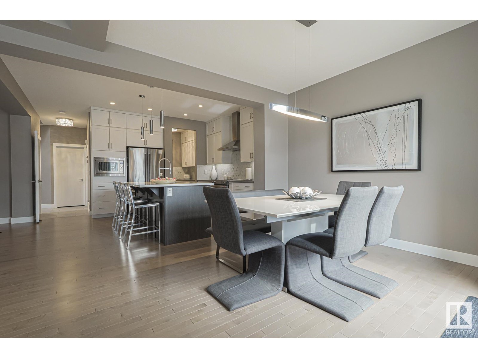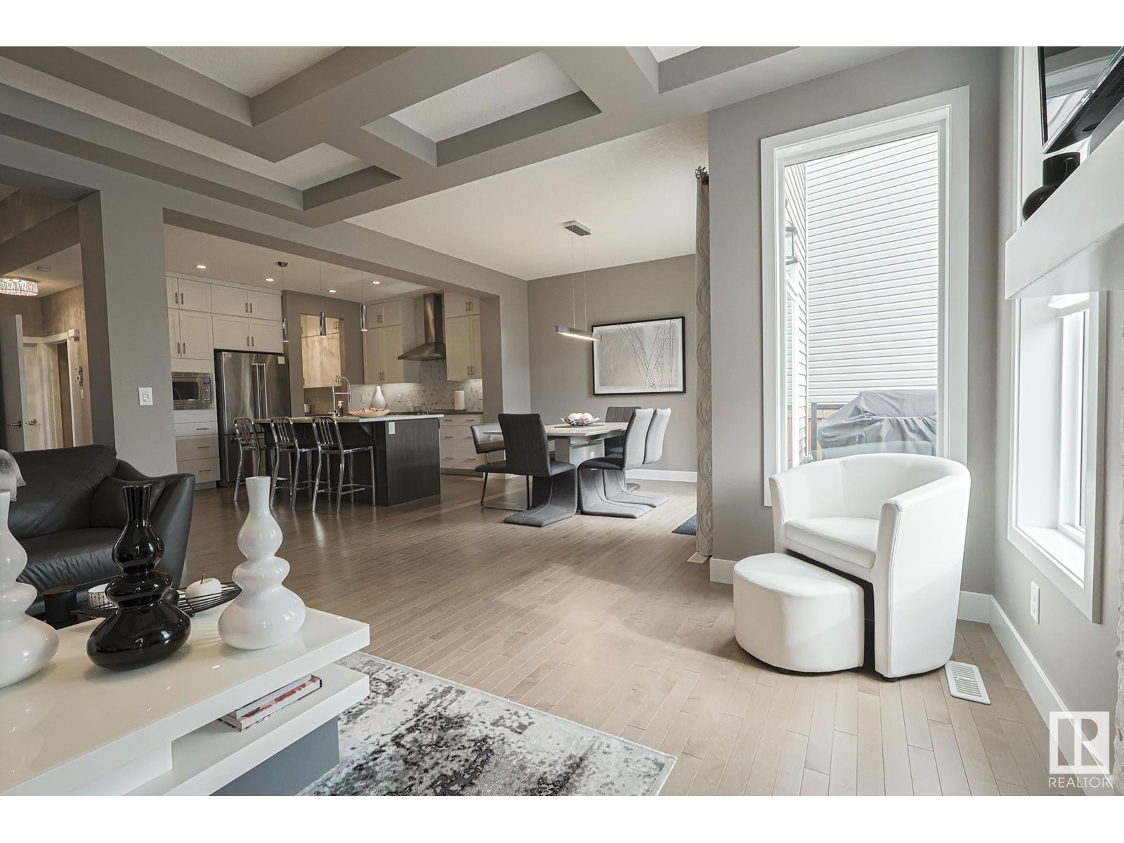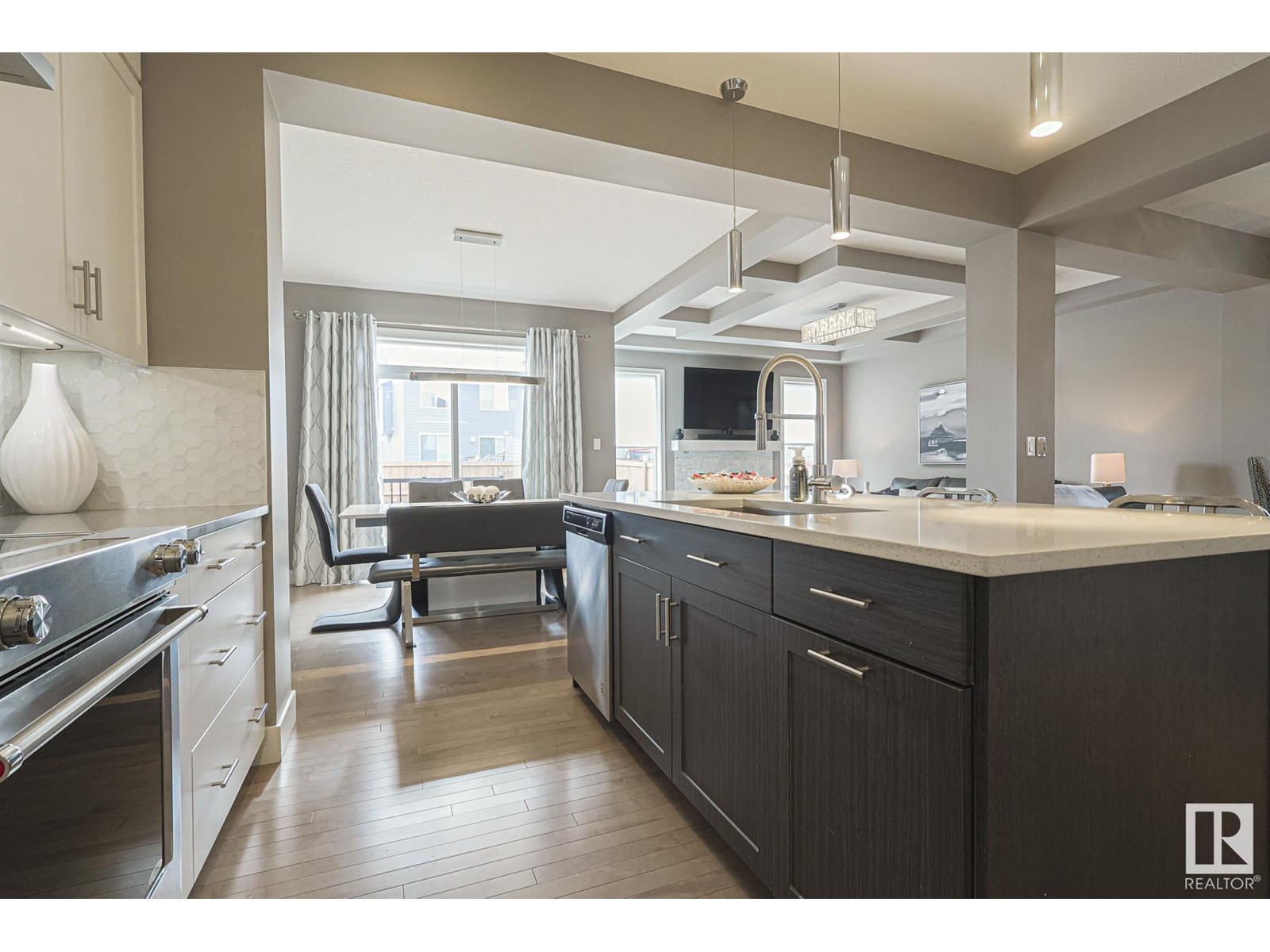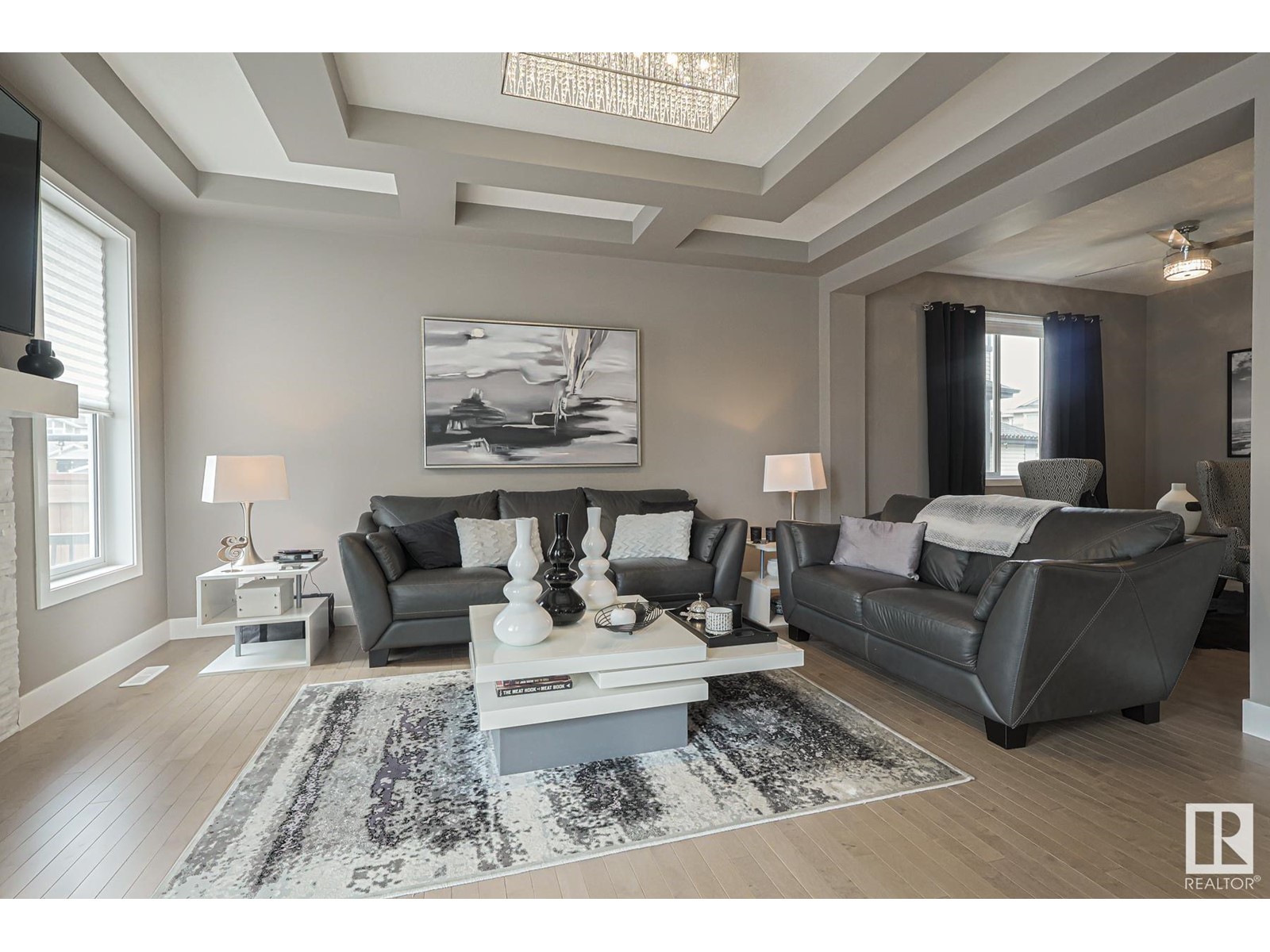 Awesome 2-storey home located in the desirable area of Chappelle close to all major amenities and steps to parks, schools and walking trails! Just under 2400sq ft of spacious and luxury living at its finest has 4bedrooms and 3.5 bathrooms. Large tile entry leads to a generous size flex/den area and a coffered ceiling LR with gas fireplace. A walk thru butlers kitchen/pantry leads to a gorgeous kitchen with extended kitchen cabinets, soft close doors/drawers, quartz counters and sink, glass backsplash, pull out spice racks and all upgraded SS appliances.Brand new oversized driveway with an oversized garage which is finished and a large mudroom with B/I shoe racks. Main floor has 9ft ceilings. Huge upstairs laundry, large BR with wet bar and electric fireplace. Large MB with a huge walk-in closet and 5pce ensuite. Basement is finished with separate entrance, kitchen, LR, bedroom, bath and its own washer/dryer. Huge 2-tier deck with a gas line. 2 furnaces and 2 HWT. Home is super clean and move in ready! (id:22211)