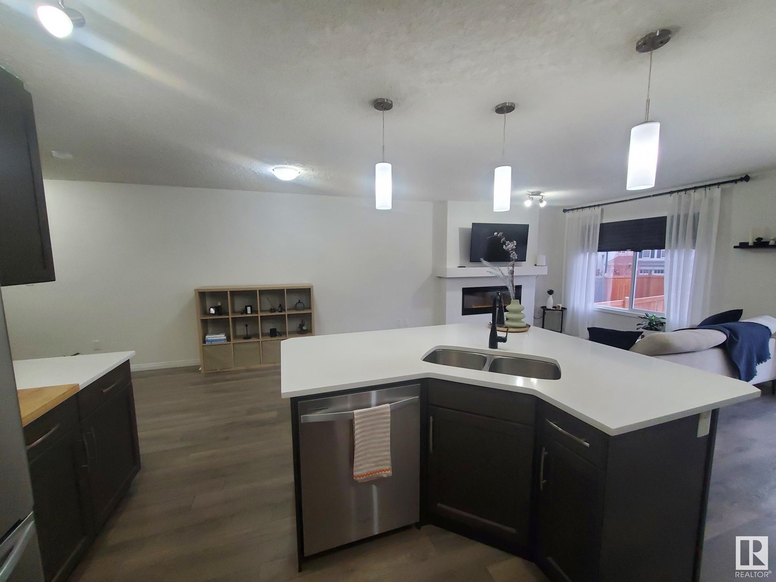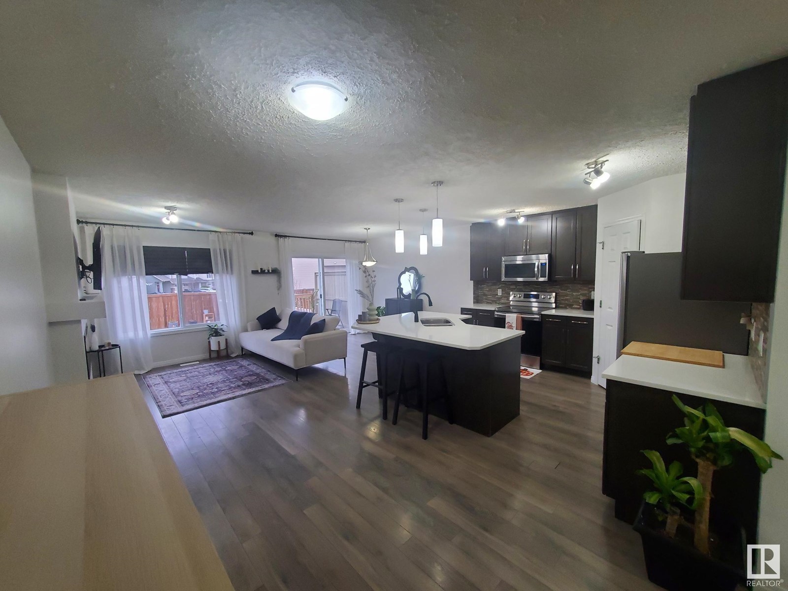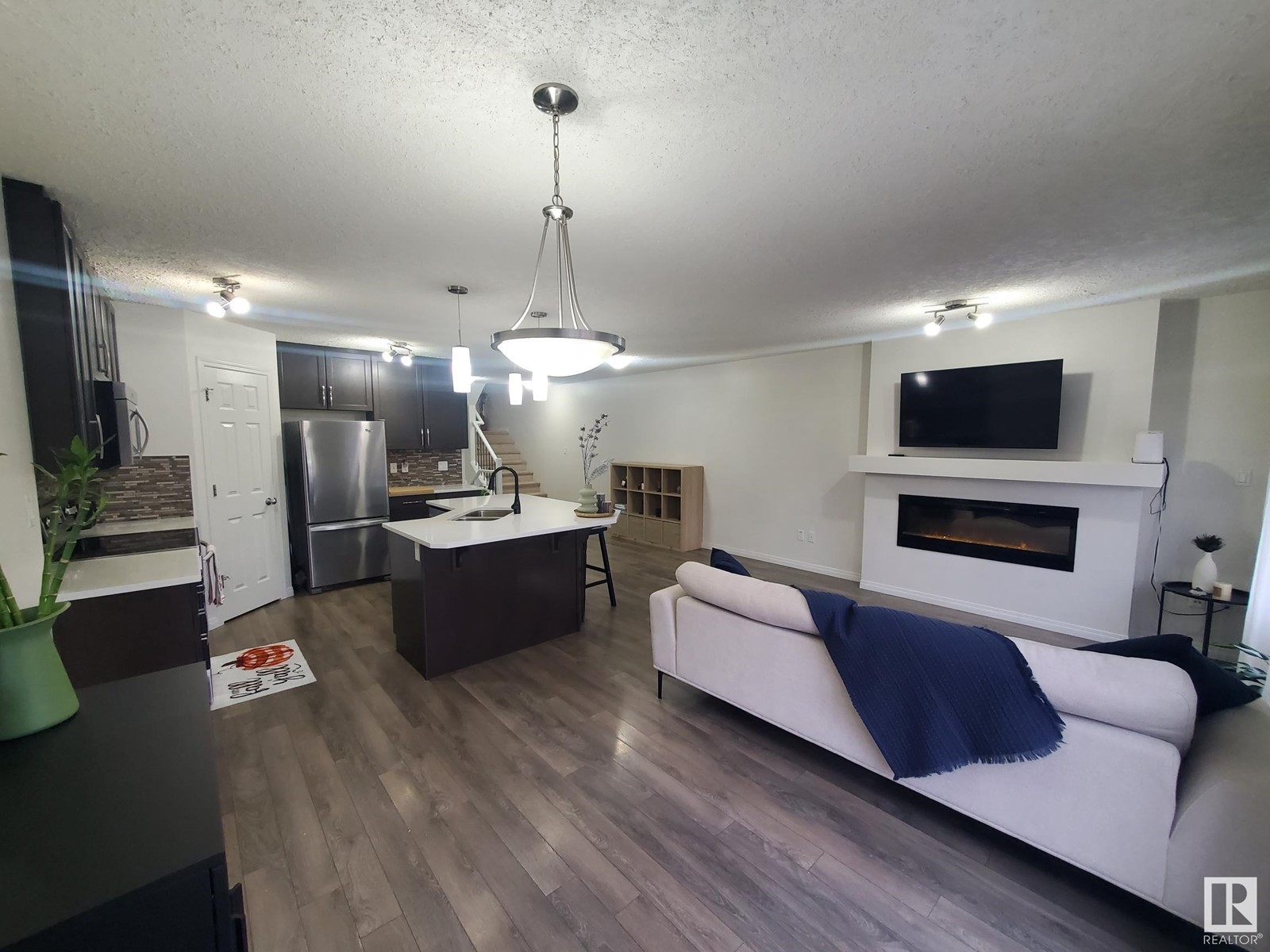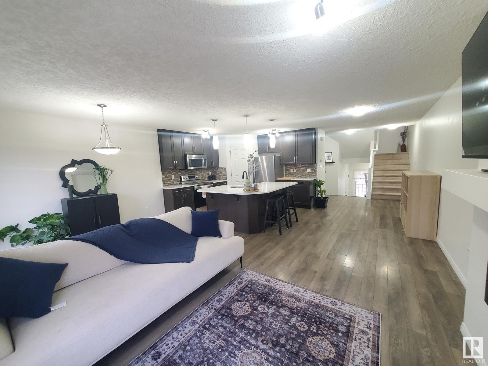 This absolutely stunning, half duplex 1559 sq ft sits on a beautifully landscaped lot in the community of Chappelle. Walk into an open concept main floor with modern colors and a dream kitchen, a huge island with quartz countertops, large pantry & stainless steel appliances & fixtures. Off the kitchen is a living room with a fireplace feature wall, Adjacent is the eating nook w patio doors leading to fully fenced & landscaped yard with deck. The upper level has 3 bedrooms, two 4 pc bathroom and the convenient upstairs laundry. Also a great space as a Bonus room. In the Large master bedroom you will find a 4 pc en-suite, large custom closet with great space. The basement floor finish with epoxy and walls finished with drywall great to enjoy in basement. single garage attached. Show with pride. (id:22211)