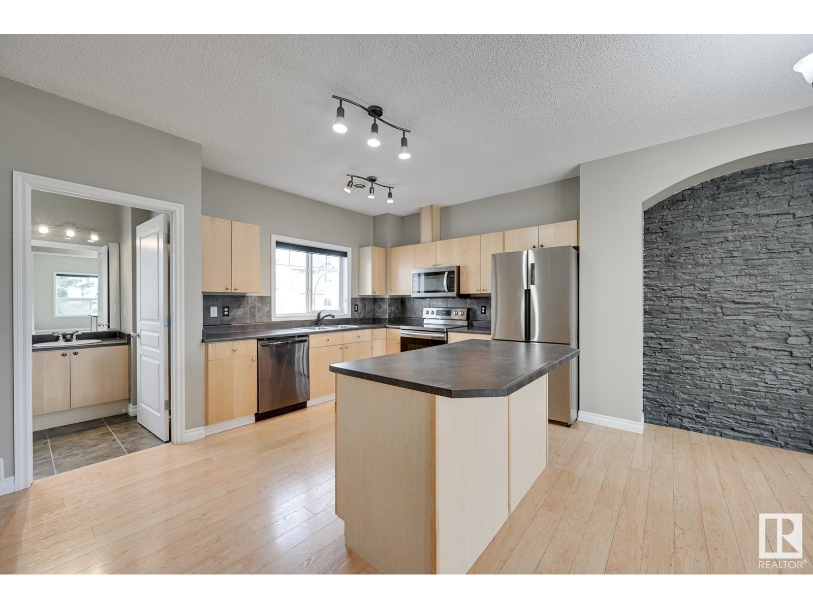 Welcome home to this spacious, well upgraded, top unit in Village on the Creek! 1442 sq ft! Freshly painted, new baseboards, new stainless steel appliances, new flooring, built in cabinets, stone feature wall, gas fireplace, island kitchen. Dual primary suite model with 2 beds and 2.5 baths. Attached single car garage. Overlooking utility corridor and walk way. Lots of visitor parking, Well managed complex and located close to so many great amenities and easy access to both the Whitemud and the Henday. Compare to other townhomes in the area and you'll see this unit can't be beat! Immediate possession available. (id:22211)