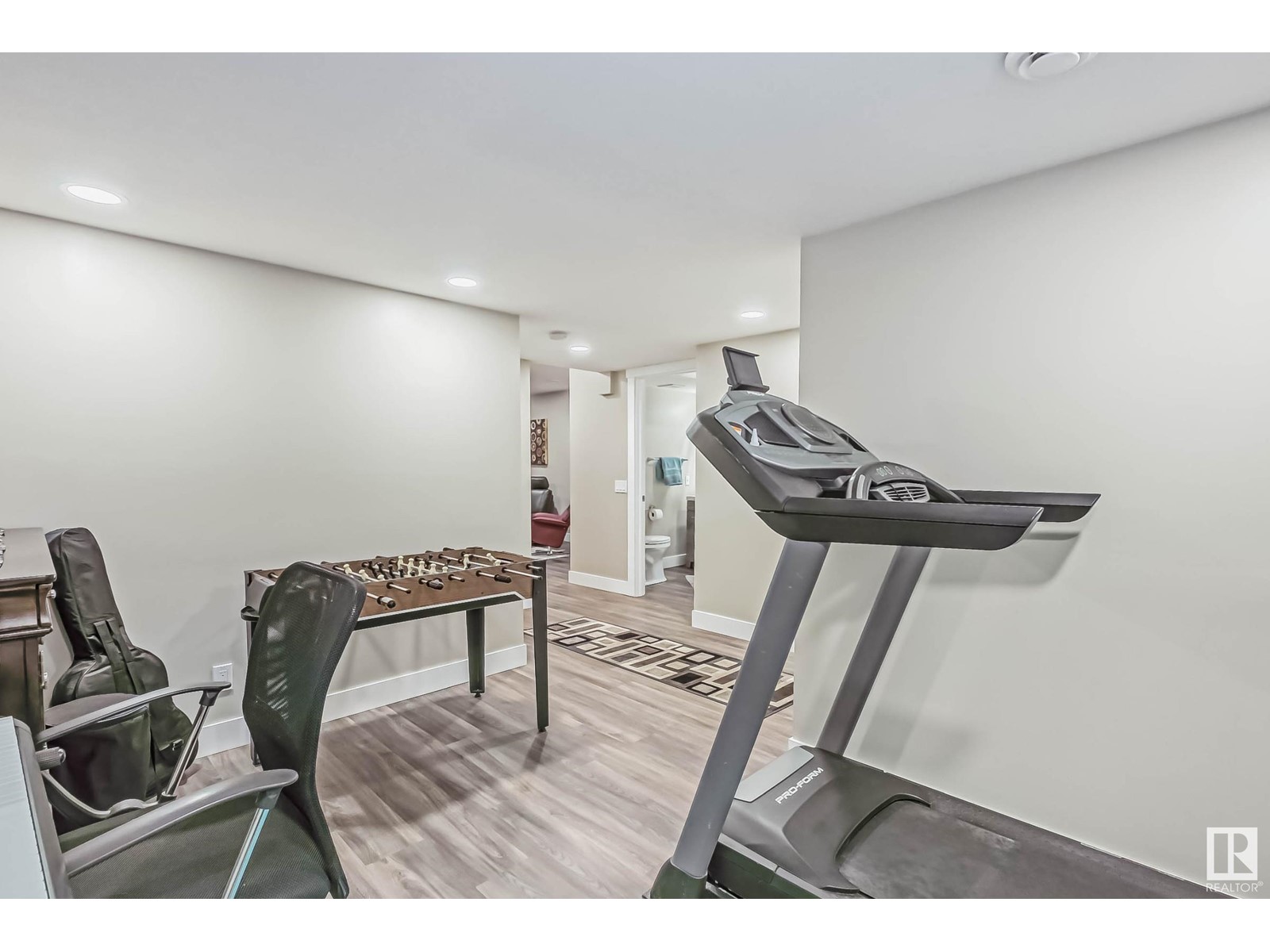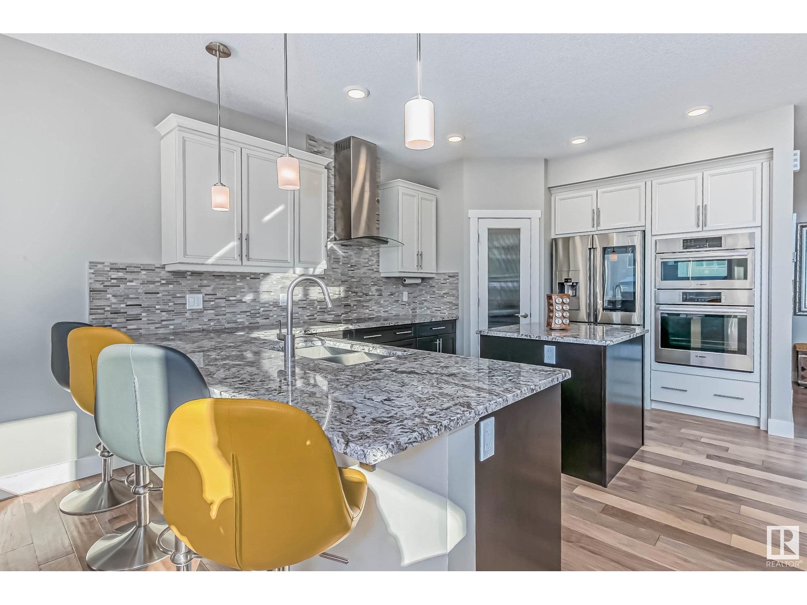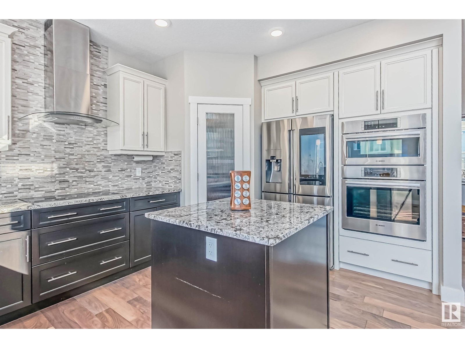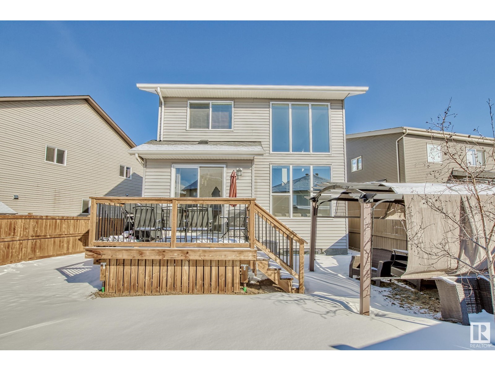 STUNNING!!! Beautiful 2 Storey single family detached home that is in SHOWHOME CONDITION, being offered in one of Edmonton's newest and fastest growing neighborhoods, PAISLEY. From top to bottom, this home received all upgraded features upon being built, engineered hardwood flooring in the main living spaces, custom tile flooring in the bathrooms, horizontal bricklay backsplash and superior cabinets in the kitchen, and modern paint style throughout the house. After being built, this home added more features such as built-in STAINLESS STEEL APPLIANCES, HUNTER DOUGLAS BLINDS, AIR CONDITIONING, BACK YARD DECK, FULL SURROUNDING FENCE, and a FULLY FINISHED BASEMENT. The basement has been professionally finished complete with modern design flooring, paint, family room, extra space for exercise area, and storage space. (id:22211)