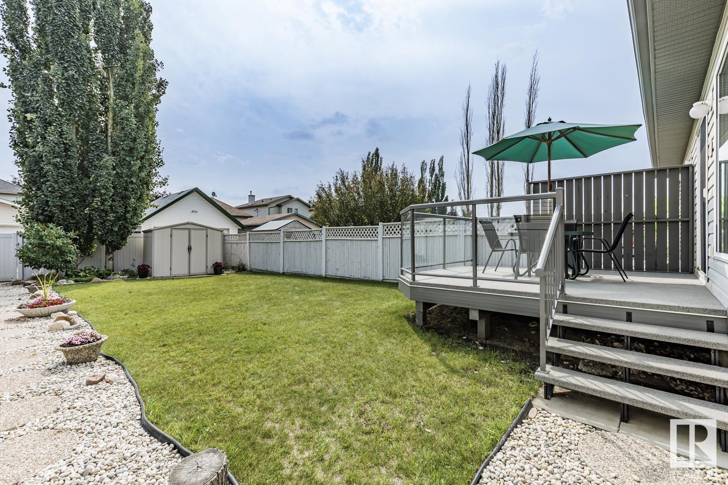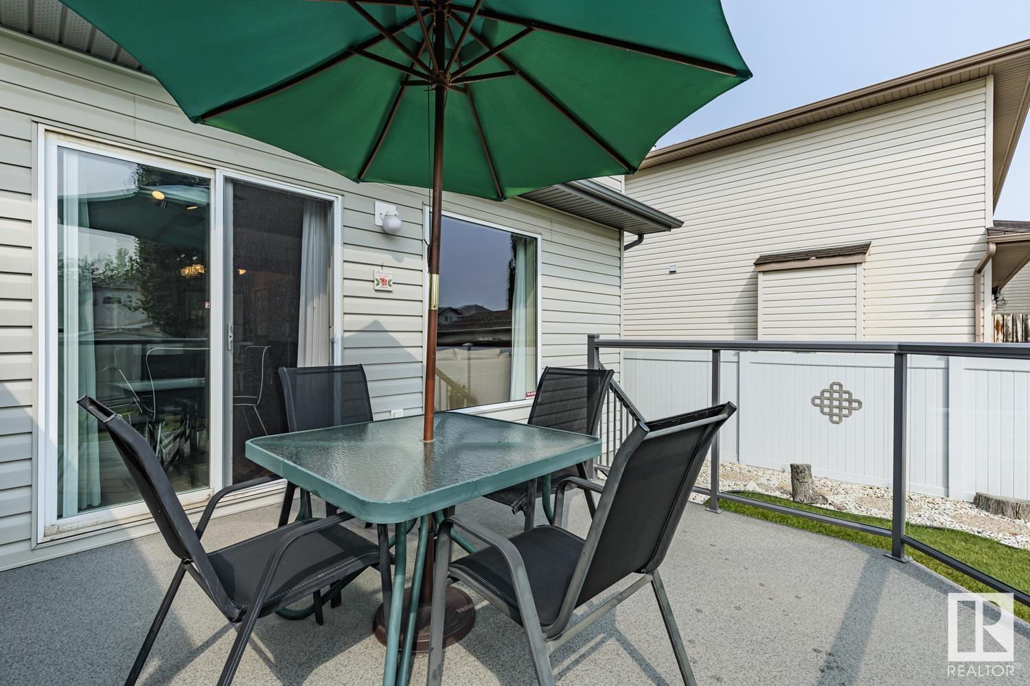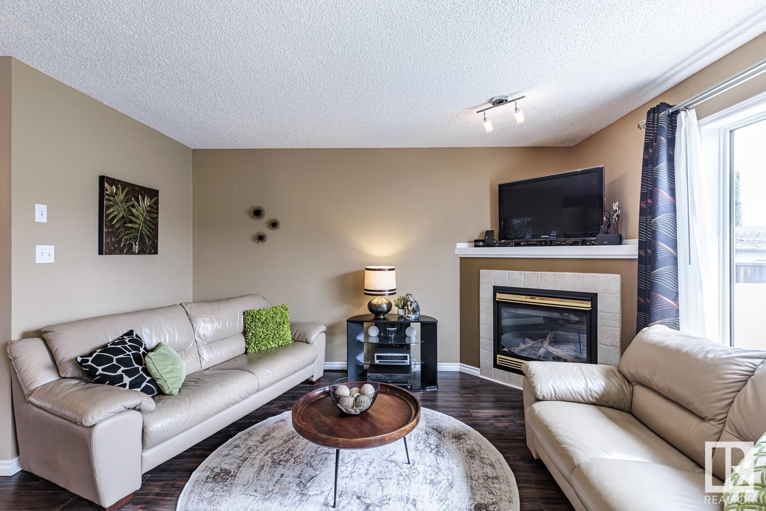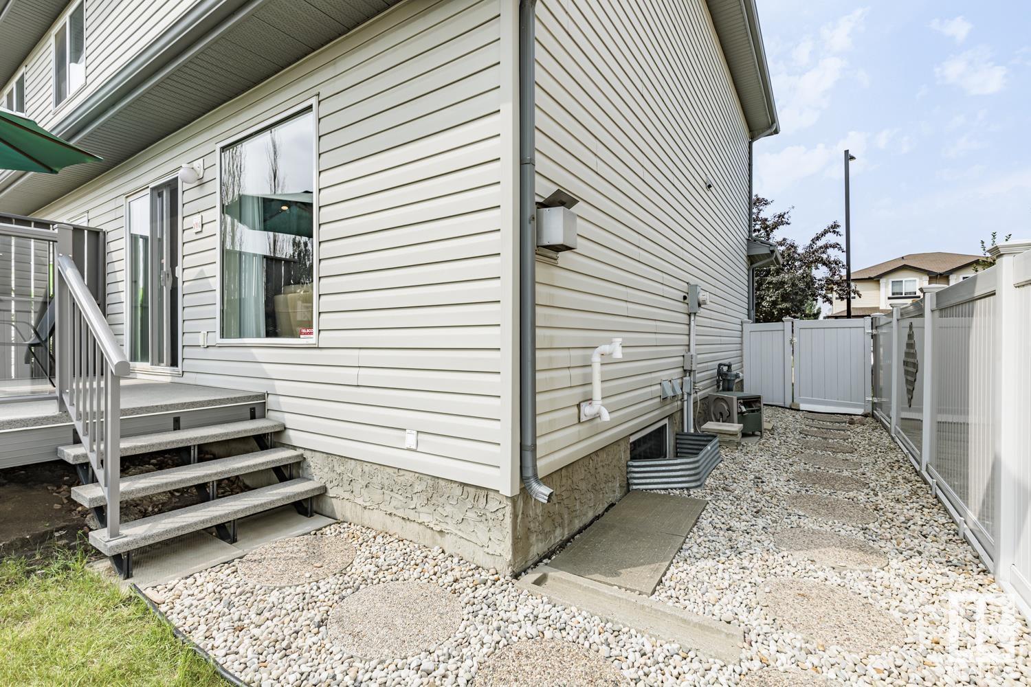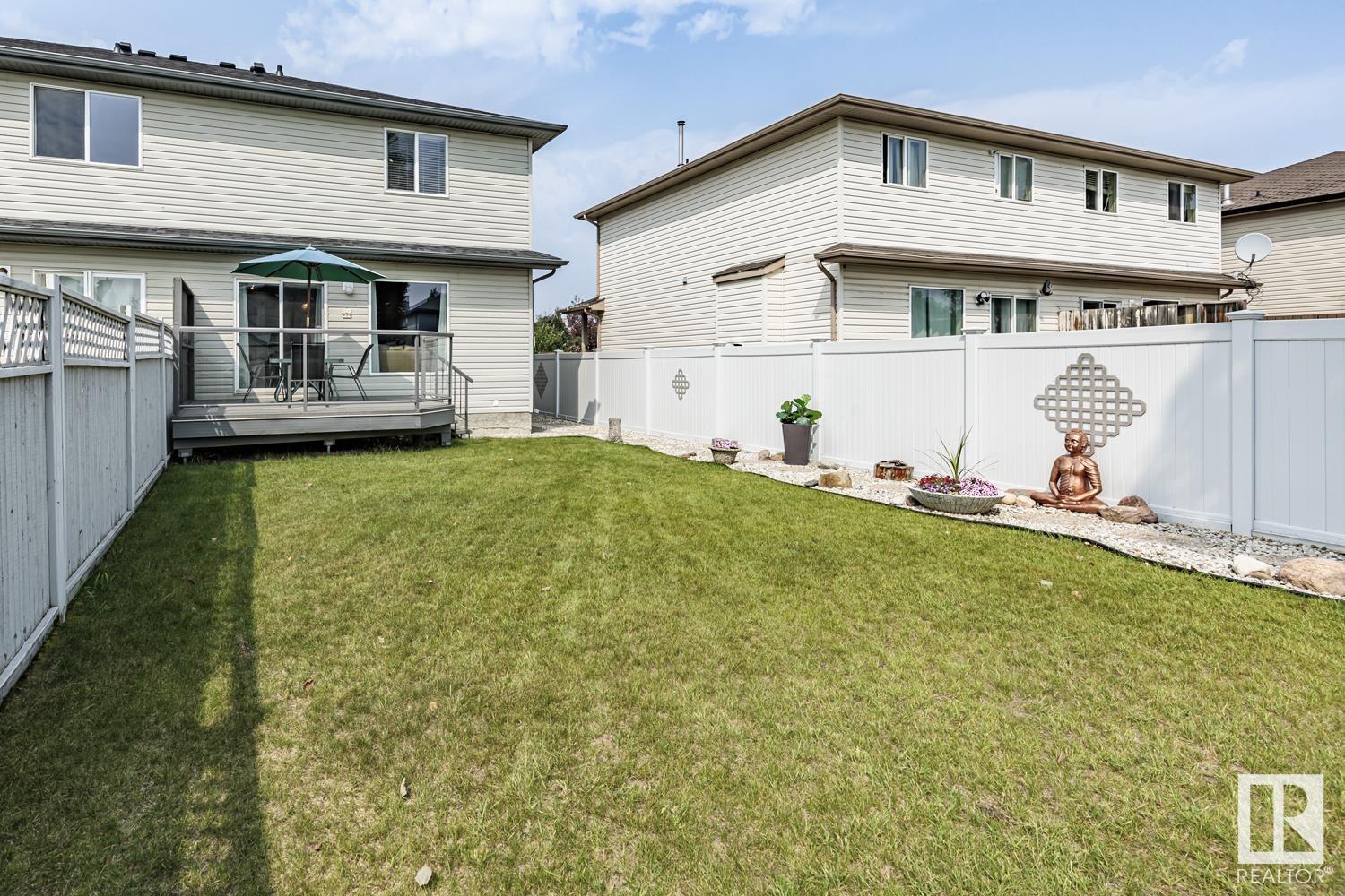 Welcome to this immaculate half-duplex in the family-friendly community of Wildrose in the Meadows. Warm, inviting and impeccably maintained, this beautiful home feels like your own private sanctuary. You'll love the luxurious textured laminate floors throughout the main floor, the open kitchen with plenty of cabinets, living room with gas fireplace, and dining room that overlooks the large vinyl deck and serene landscaped backyard. Upstairs is home to a beautiful primary suite with two walk-in closets and a 4pc ensuite; another bright and very spacious bedroom with two closets, and another 4piece bathroom. The unfinished basement has laundry and sink - and loads of potential! New roof (2022), HWT & furnace (2019). Minutes from Whitemud, Henday, Rec center, Grey Nuns hospital, schools and all amenities, don't miss this beauty! (id:22211)