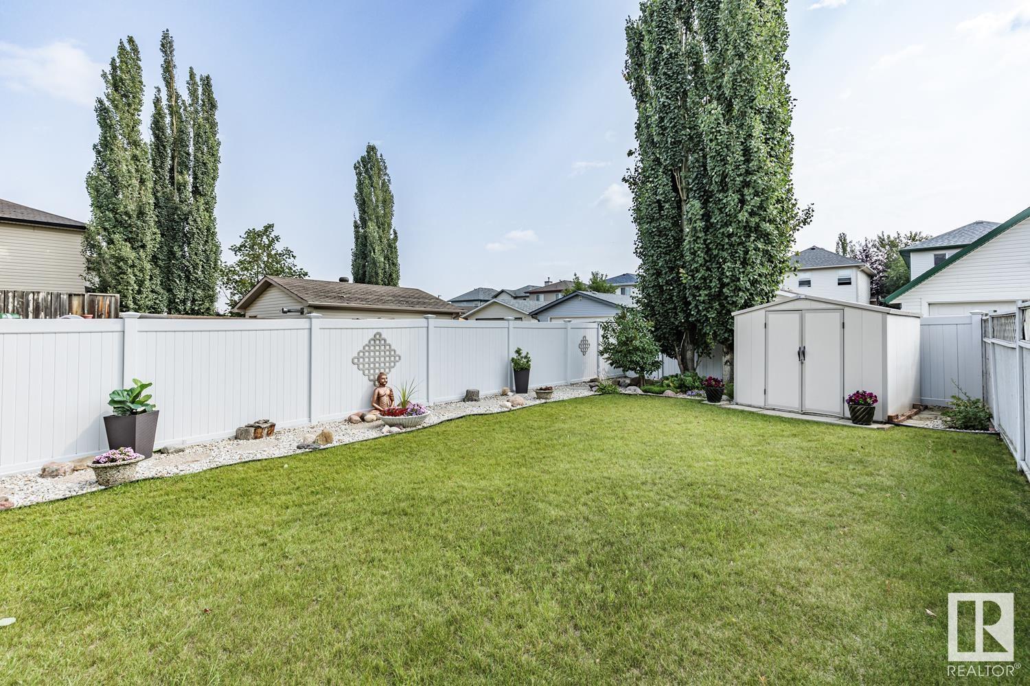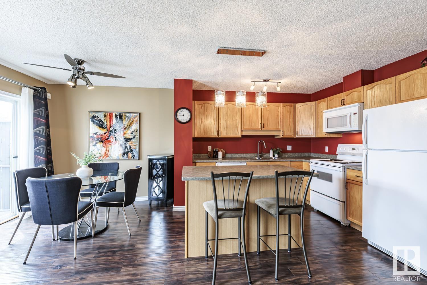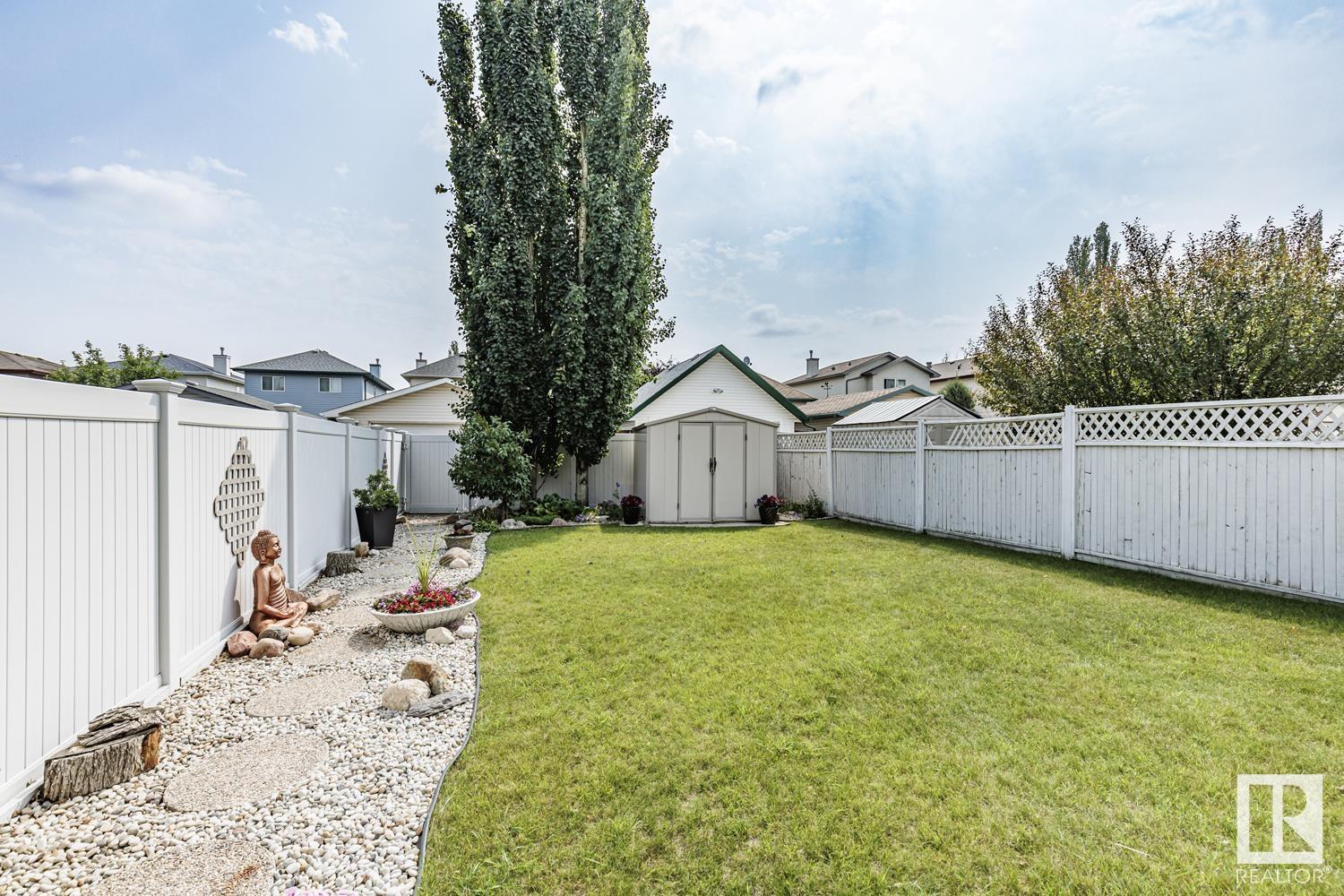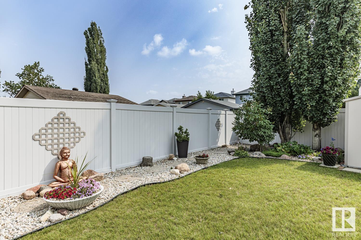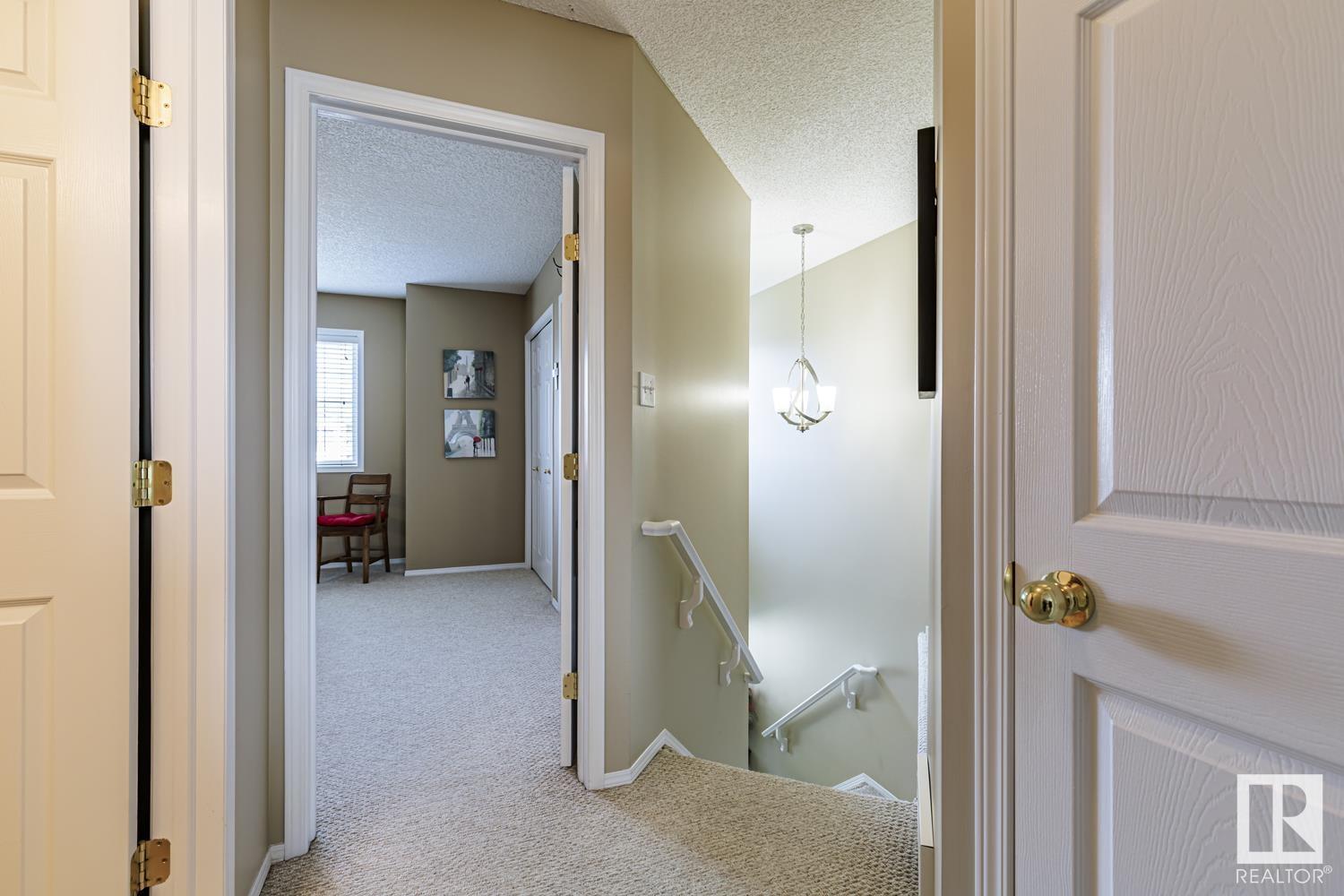 Welcome to this immaculate half-duplex in the family-friendly community of Wildrose in the Meadows. Warm, inviting and impeccably maintained, this beautiful home feels like your own private sanctuary. You'll love the luxurious textured laminate floors throughout the main floor, the open kitchen with plenty of cabinets, living room with gas fireplace, and dining room that overlooks the large vinyl deck and serene landscaped backyard. Upstairs is home to a beautiful primary suite with two walk-in closets and a 4pc ensuite; another bright and very spacious bedroom with two closets, and another 4piece bathroom. The unfinished basement has laundry and sink - and loads of potential! New roof (2022), HWT & furnace (2019). Minutes from Whitemud, Henday, Rec center, Grey Nuns hospital, schools and all amenities, don't miss this beauty! (id:22211)