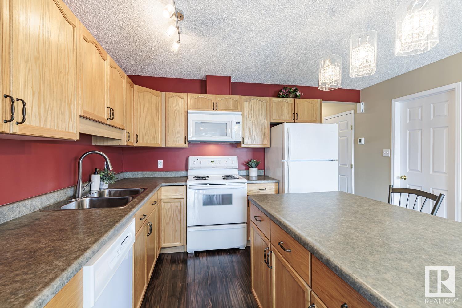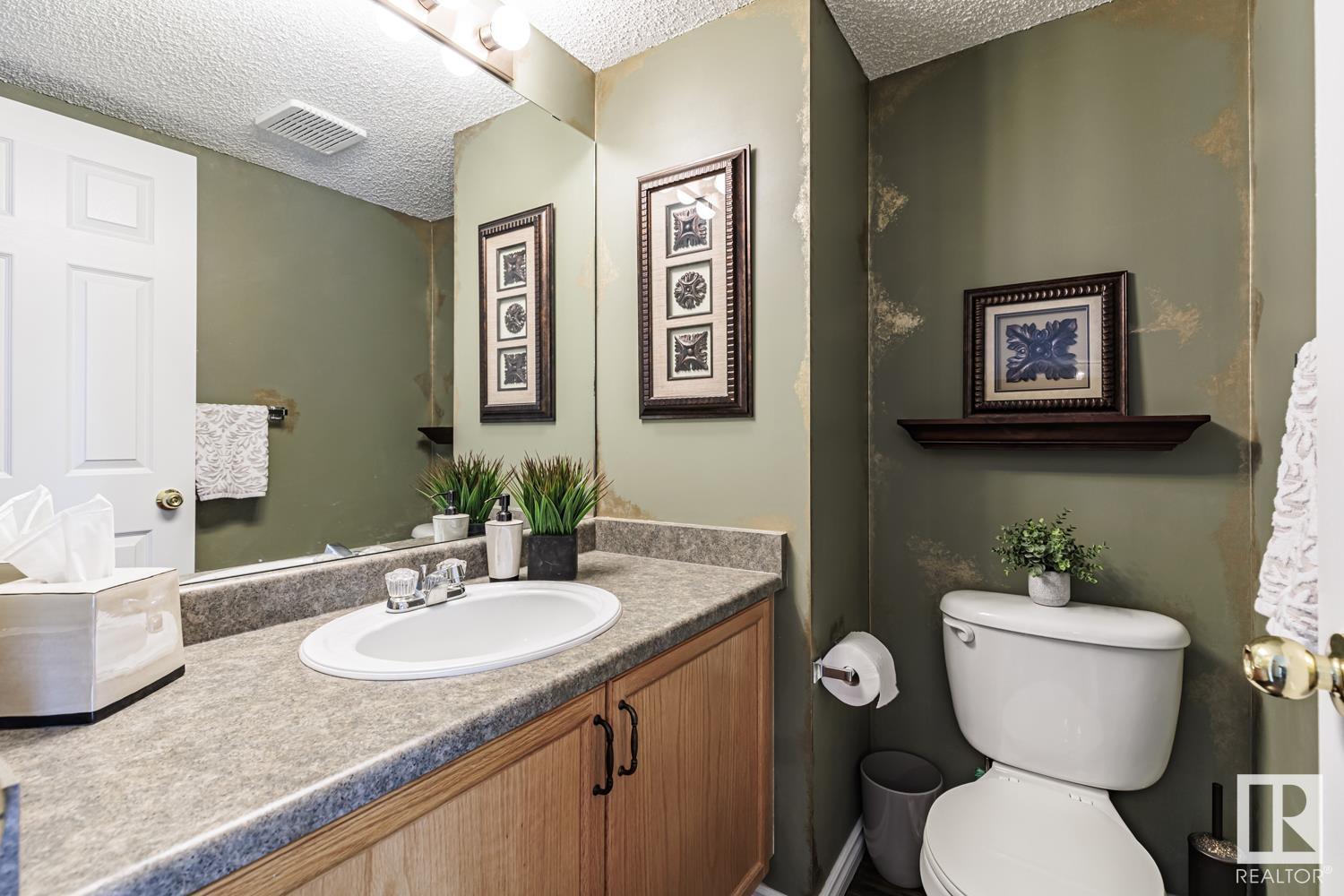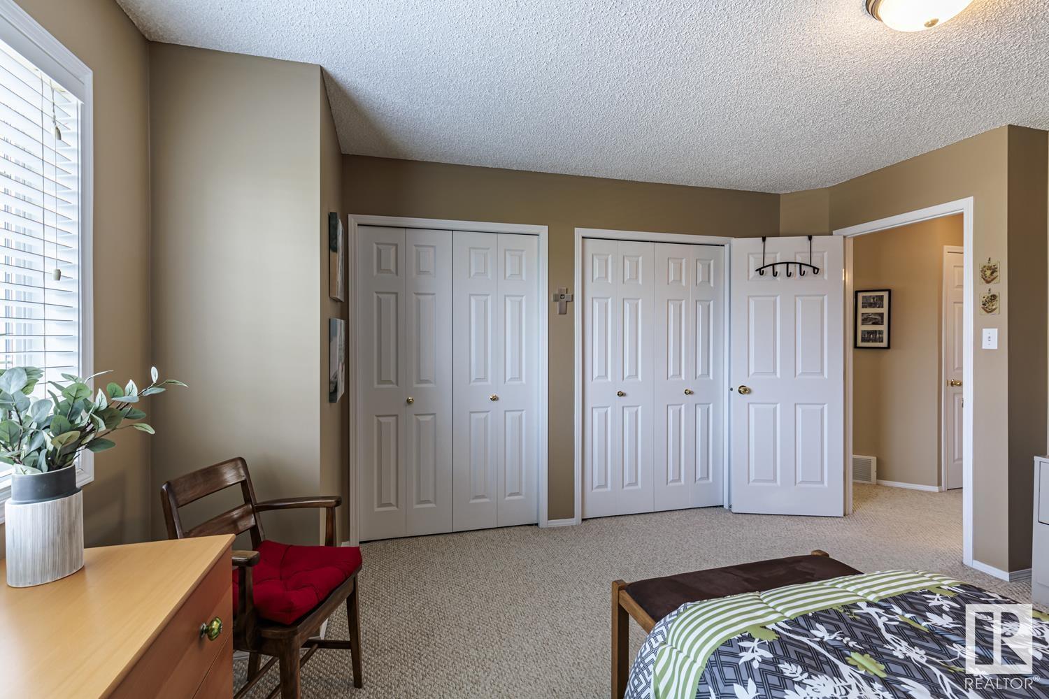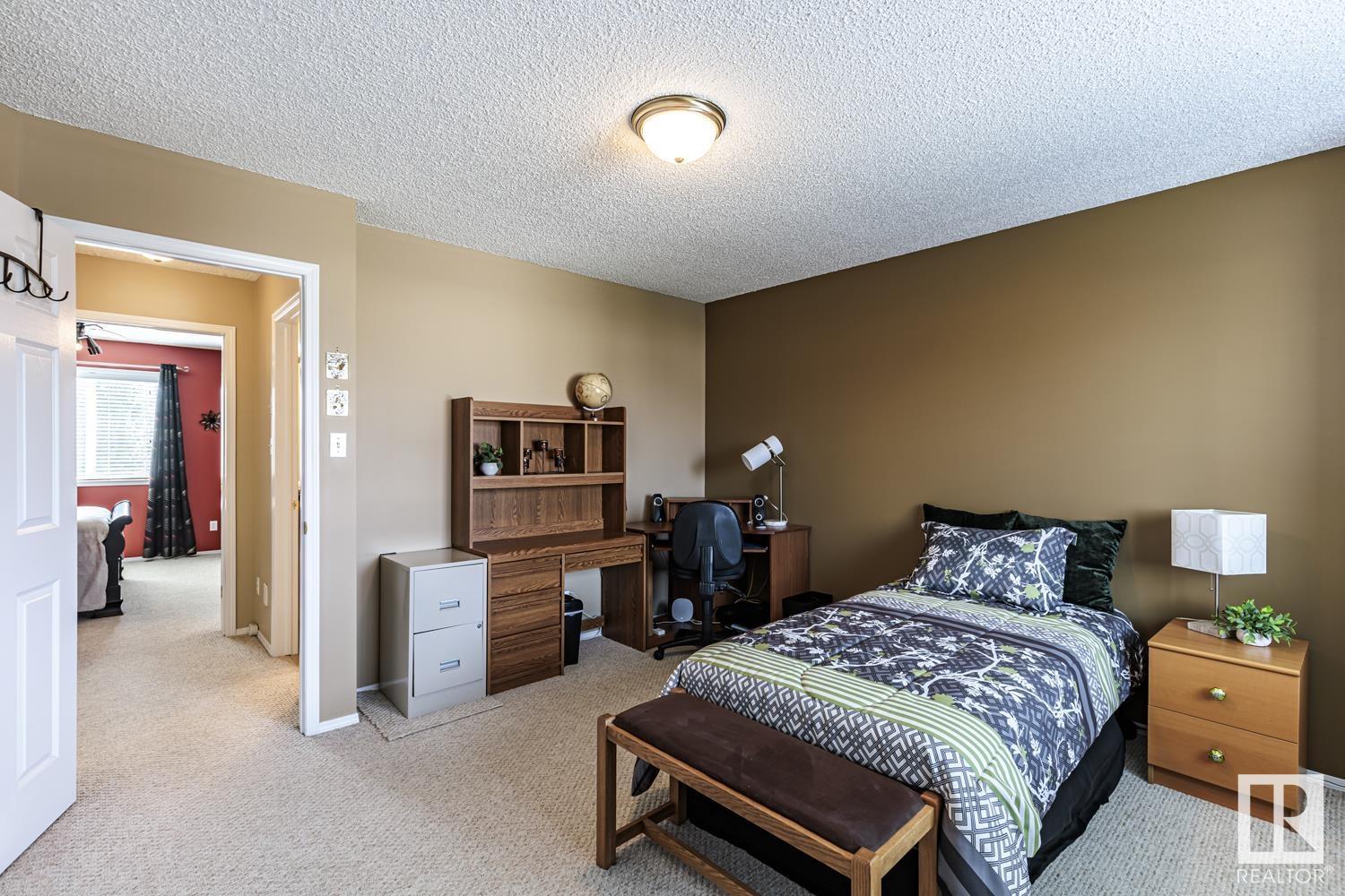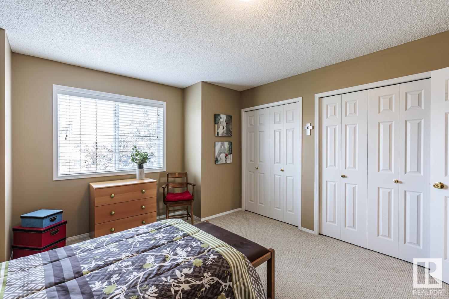 Welcome to this immaculate half-duplex in the family-friendly community of Wildrose in the Meadows. Warm, inviting and impeccably maintained, this beautiful home feels like your own private sanctuary. You'll love the luxurious textured laminate floors throughout the main floor, the open kitchen with plenty of cabinets, living room with gas fireplace, and dining room that overlooks the large vinyl deck and serene landscaped backyard. Upstairs is home to a beautiful primary suite with two walk-in closets and a 4pc ensuite; another bright and very spacious bedroom with two closets, and another 4piece bathroom. The unfinished basement has laundry and sink - and loads of potential! New roof (2022), HWT & furnace (2019). Minutes from Whitemud, Henday, Rec center, Grey Nuns hospital, schools and all amenities, don't miss this beauty! (id:22211)