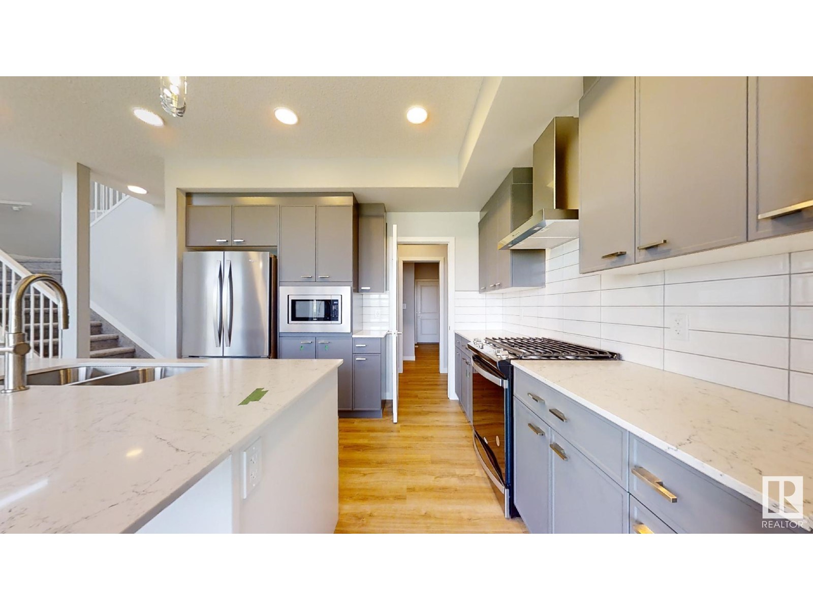 This brand new house is located in the CUL-DE -SAC beautiful community of Charlesworth.House is not flashy but holds quality and functionality.5 BEDROOMS+3 FULL WASHROOM & WALKOUT BSMT. Upon entering, youll be greeted by the foyer leading to the living room that boasts 18 ft ceilings with windows that fill the whole room with a scenic view of green natural reserve ,huge backyard and lots of light. Beautiful modern cabinets with with granite countertops, gas stove, built in microwave, hood fan plus walk through huge Pantry.The main floor also includes a flex room/den and a 3 piece washroom. Upstairs you'll find the primary bedroom with a spa-like ensuite,HIS/HER vanity and a walk-in closet -along w/ 3 other bedrooms, a bonus room and laundry room.Metal railing, neutral color palette motivates you to use your PINTREST ideas. Walkout basement can be converted to in law suite or a leisure piece. Pictures don't do justice so must see your self.Easy access to 34 St & 66 St and other new amenities. (id:22211)