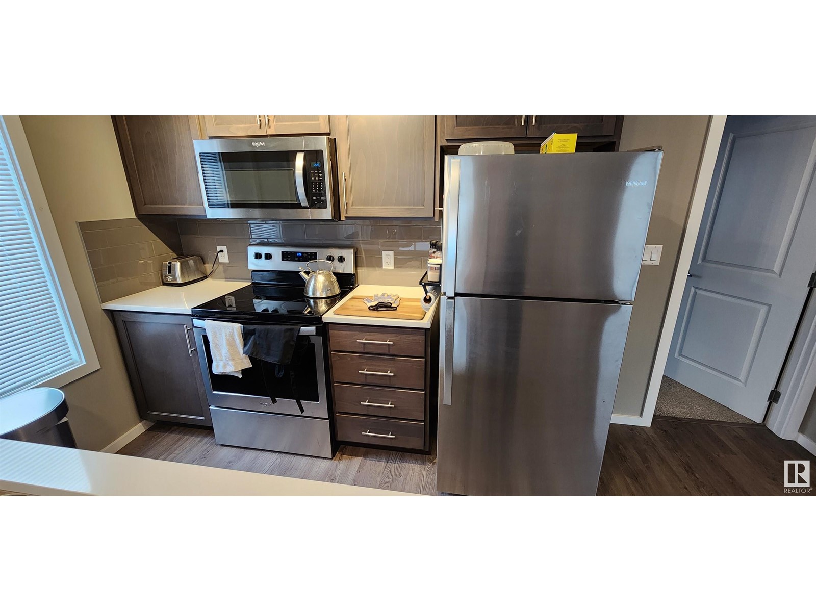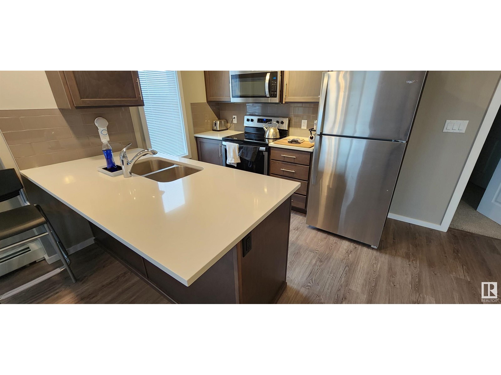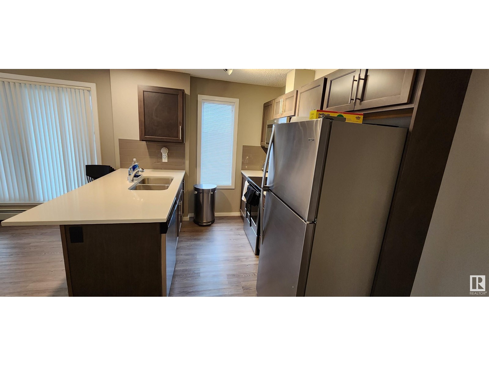 This amazing Windermere condo has 2 bedroom, 2 bathrooms and 2 titled underground parking. This spacious CORNER unit is on the 3rd floor, it has lots of windows and large corner balcony. Open concept. Nice view from balcony of trees & other homes. Excellent condition, like new, featuring quartz countertops, laminate floors and stainless appliances. Primary bedroom has ensuite bathroom and walk-in closet. In-suite laundry and storage area. Two titled underground parking stalls #219 & #220 are included and they are located just across from elevators. 'Elements at Windermere' is only few years old, a well managed building! Walking distance to schools, (Constable Daniel Woodall & St John XXII Catholic) Superstore, shopping, restaurants and other facilities. Rare find!! (id:22211)