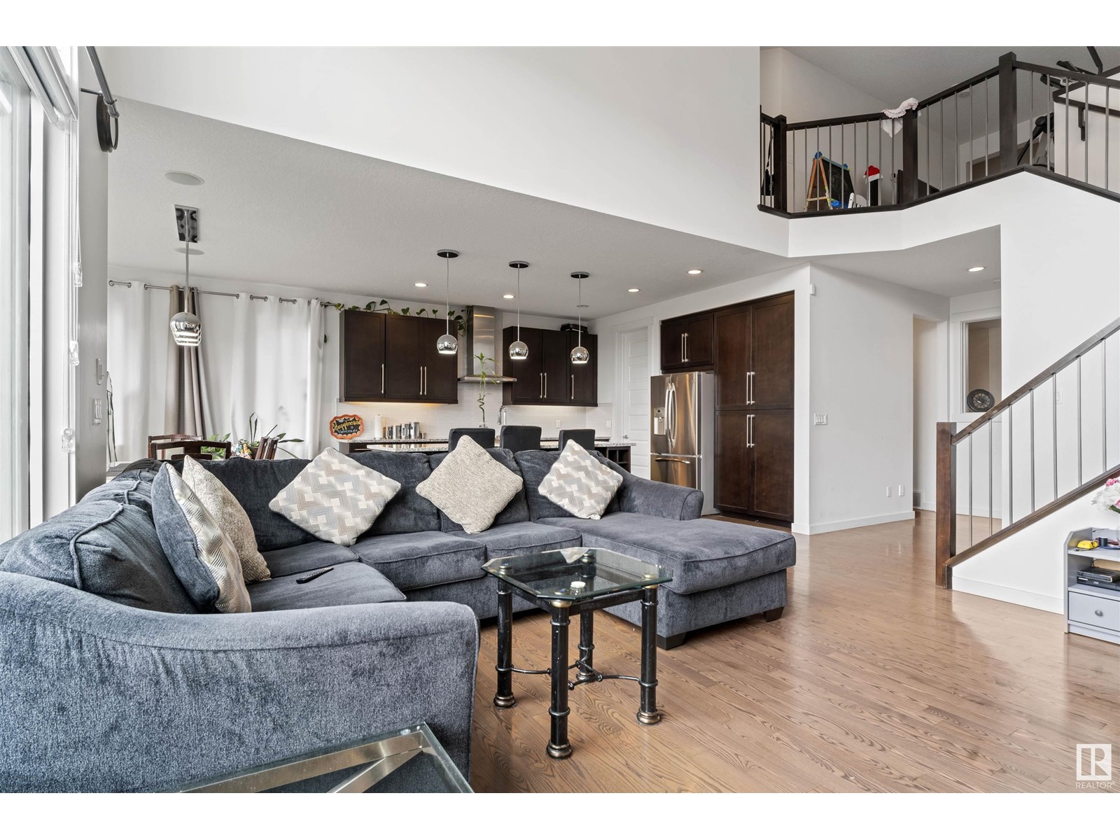 Former Show home built by Homes by Avi backing onto walking trail displays quality finishes. The WOW factor starts on the main level that displays hardwood flooring, open to below concept, floor-to ceiling windows and 20+ft ceiling height in the main living space. The open kitchen, walk-thru pantry, Quartz counters, pot and pan drawers, SS appliances with a huge island opens into the living that features 42 electric fireplace. This gorgeous home accommodates 4 bedroom & 3 full baths, bonus room and laundry. This house is definitely a Must see!! (id:22211)