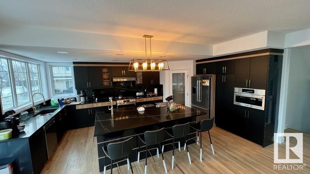 Experience luxurious living at 424 Caldwell Place, Cameron Heights' coveted estate home. This stunning mansion boasts 4,500 sq. ft. of living space, high-end finishes, and a palindromic house number. The house sits on a spacious 11,000 sq. ft. lot across from the Cameron Ravine walkways. The grand entrance features oak hardwood floors, soaring ceilings, and contemporary light fixtures. The main floor has an open plan, including a gracious living room with a herringbone fireplace, a grand dining room, and a chefs kitchen with high-end appliances. Glass walls lead to a library office space. The second level has a sumptuous master suite, two bedrooms with a jack & jill bathroom, and another massive bedroom on a separate floor. In total, this home boasts 5 bedrooms and 4 bathrooms. The fully finished basement includes a bedroom, gym, office, and living area. The triple car garage has epoxy flooring. Don't miss the opportunity to see this beautiful home! (id:22211)