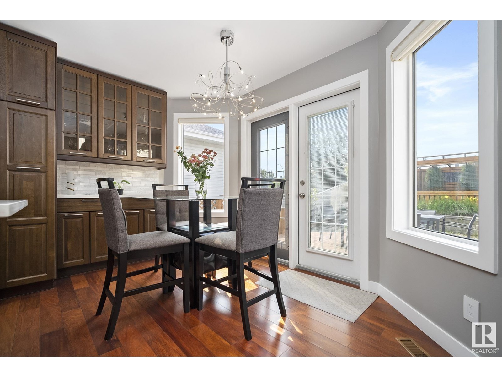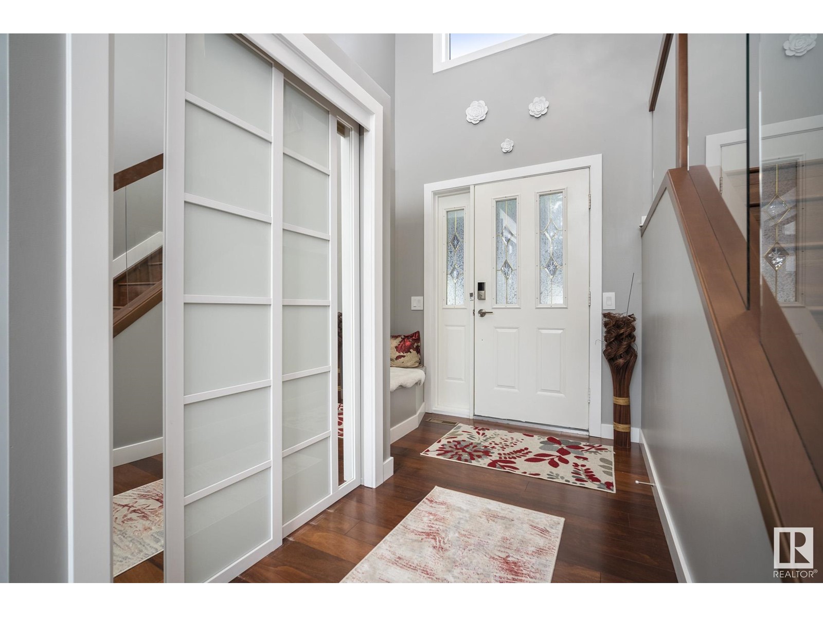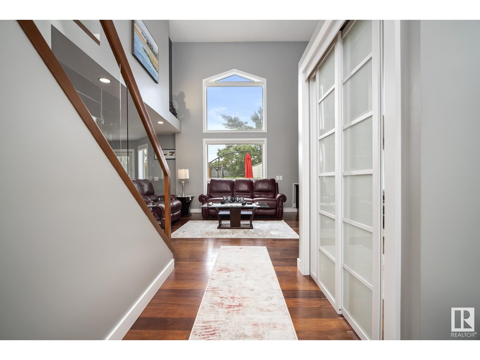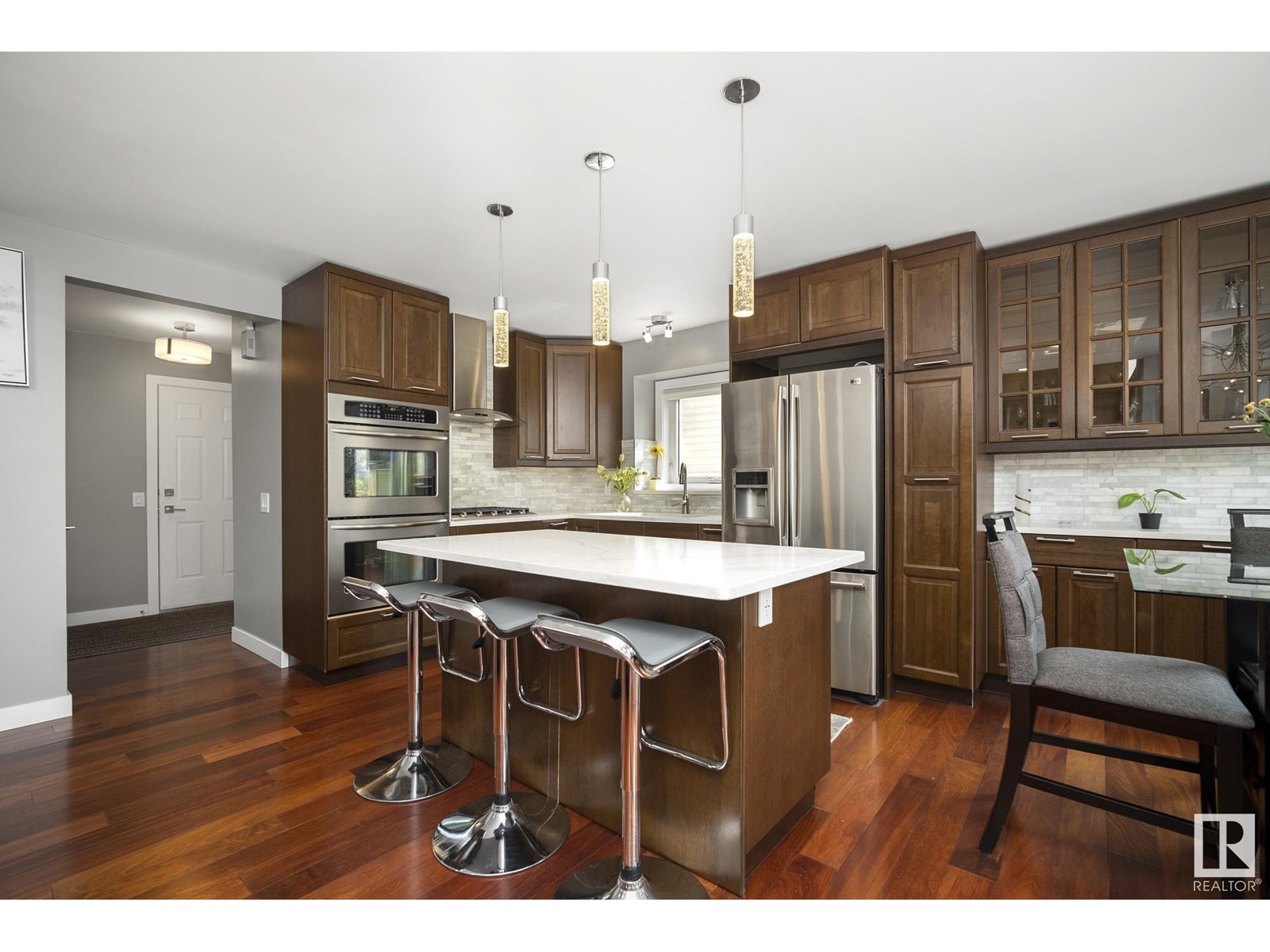 Stunning 2 storey home in Klarvatten. Incredible renos and in immaculate condition! Three bedrooms + one studio bedroom in basement, 2.5 bathrooms, 17' vaulted ceilings. The kitchen comes with gorgeous new maple cabinets, quartz countertops, marble backsplash tiles, and high-end stainless appliances including a double oven and gas range. Beautiful engineered hardwood floors, new doors, new ceilings, new glass railings, new baseboards, new window trims, new silhouette blinds, and paint. Completely new bathrooms with marble sinks, quartz countertops, paint, floors, faucets, toilets, tubs, and showers. Basement is a studio ideal for the growing teen with studio bedroom and gym! Notable upgrades, newer hot water tank, sump pump, and shingles. Double attached garage has polyaspartic coated floor. SOUTH facing backyard with pergola, interlocking bricks with firepit, fenced and landscaped. 2023 CENTRAL AC UNIT!! Amazing location nearby to: Parks, schools, walking paths, shopping, transit. (id:22211)