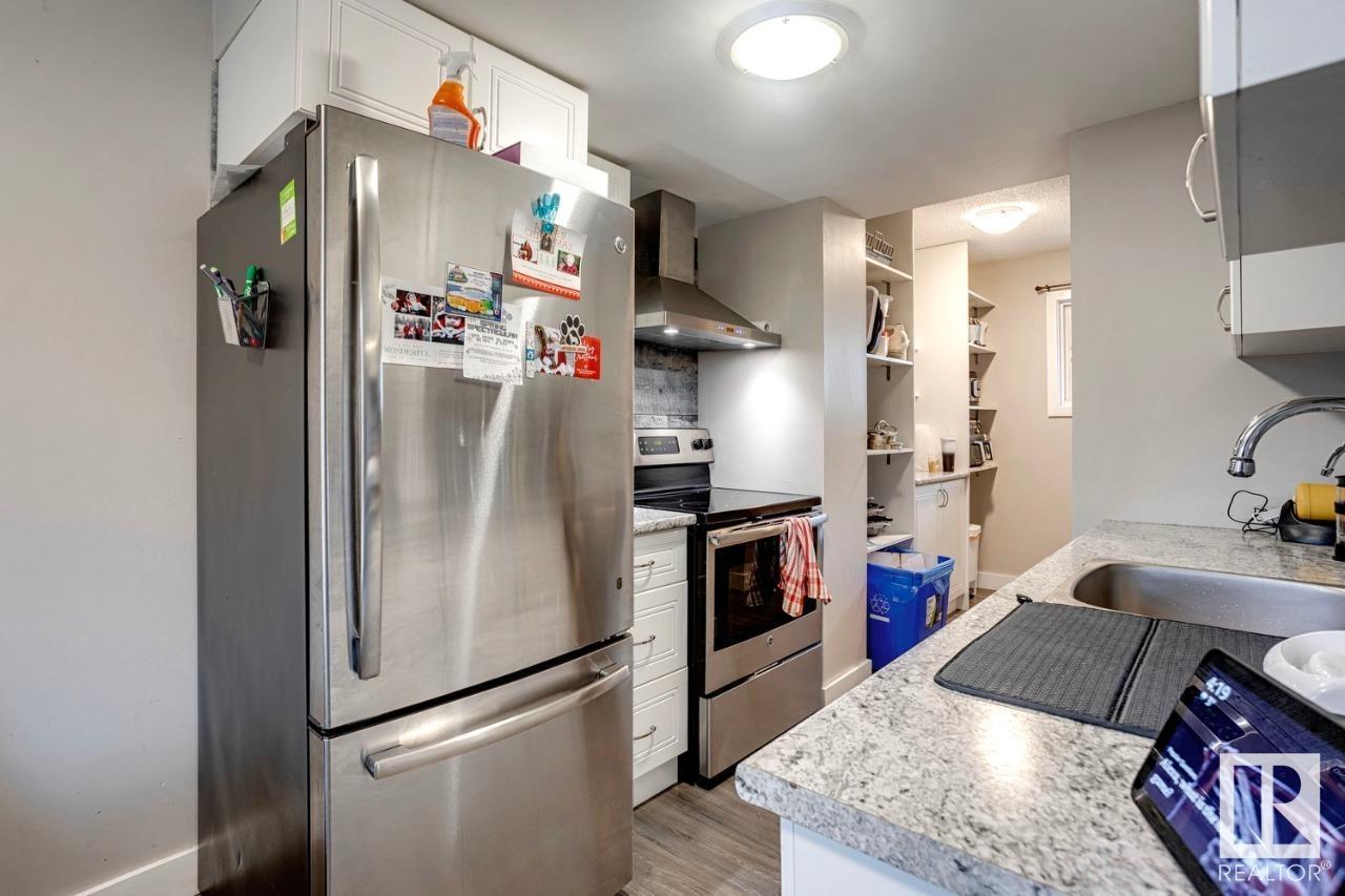 This home has had some renovations completed including a newer water heater and high efficiency furnace. Laminate floor throughout the main floor and finished basement, with carpet in the bedrooms. Newer stainless steel appliances, cabinets and counter top. The main floor also offers a pantry and coffee bar off the kitchen.The low maintenance yard is fenced and features 2 garden beds and is roughed in for central AC. It is located close to schools, shopping, and Edmonton's beautiful River Valley! The proximity to the Yellowhead and Anthony Henday makes it easy to commute around Edmonton! (id:22211)