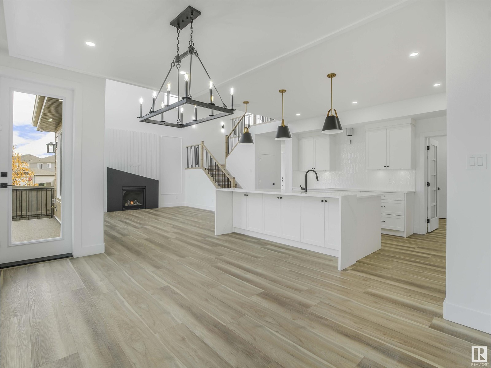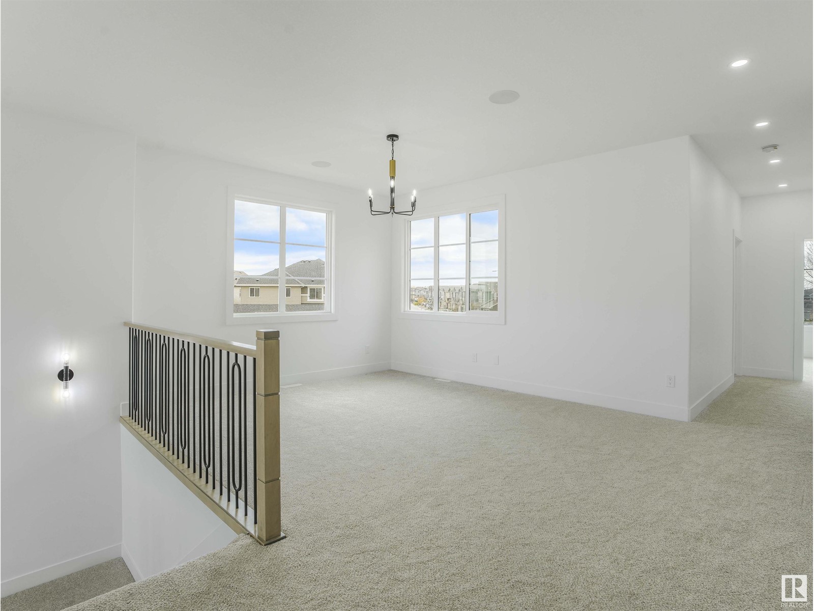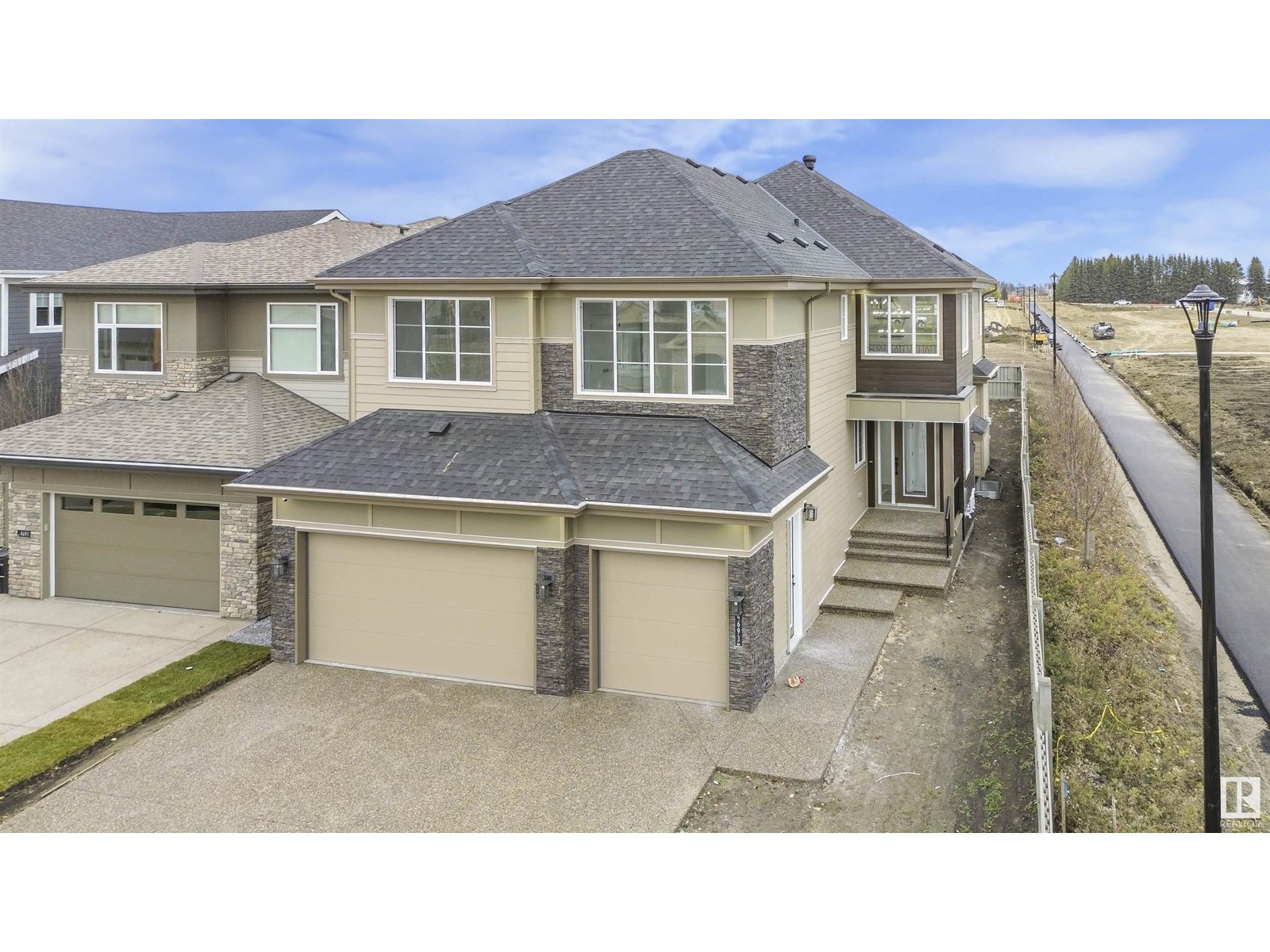 Welcome to this exquisite new build by Klair Custom Homes offering the perfect blend of modern luxury and practicality with SEPARATE SIDE ENTRANCE for Potential LEGAL OR IN-LAW Suite! Corner house with abundance of windows & next to huge walkway but no requirement for snow cleaning. Open concept kitchen w SPICE KITCHEN & Triple Car Garage. This spacious home is built green certified. Open to above living area w 19 ceiling, 9 ceilings throughout. Key Features: 5 bedrooms, including a bedroom/den on the main floor w a closet. 4 full bathrooms, incl 2 ensuites & full bathroom w walk-in shower on main floor. Deck with aluminum railing, AND A FULLY FENCED YARD, gas fp with tile & slate work, appliances package included for main & spice kitchen & laundry. 50-gallon hot water tank, 2 High-Efficiency furnaces with HRV on the main floor for optimal climate control. Alberta New Home Warranty & RPR WITH COMPLIANCE provided. Don't miss out on this exceptional home! (id:22211)