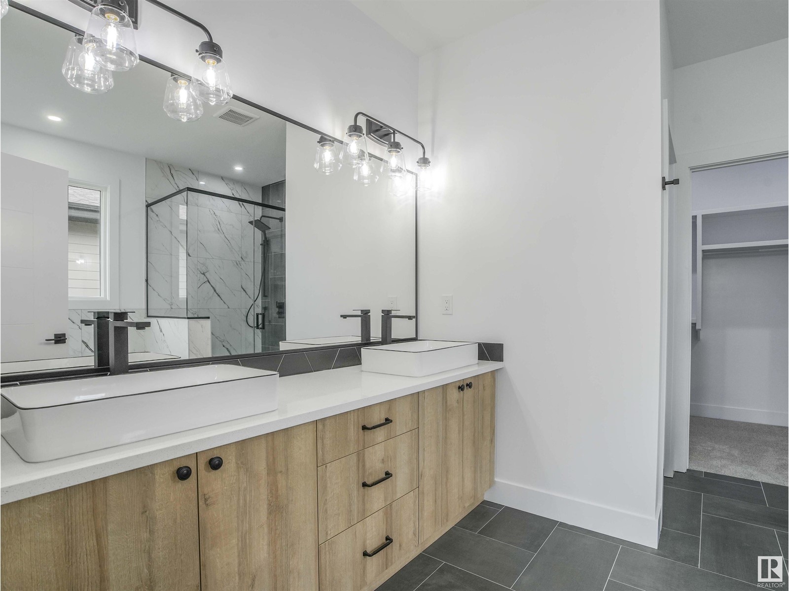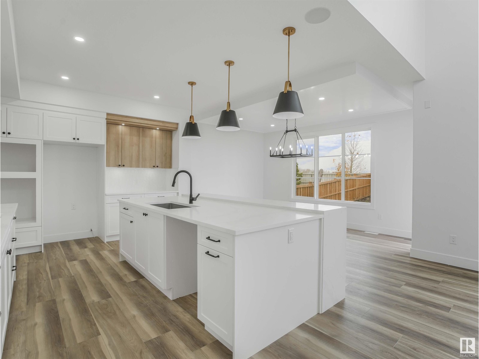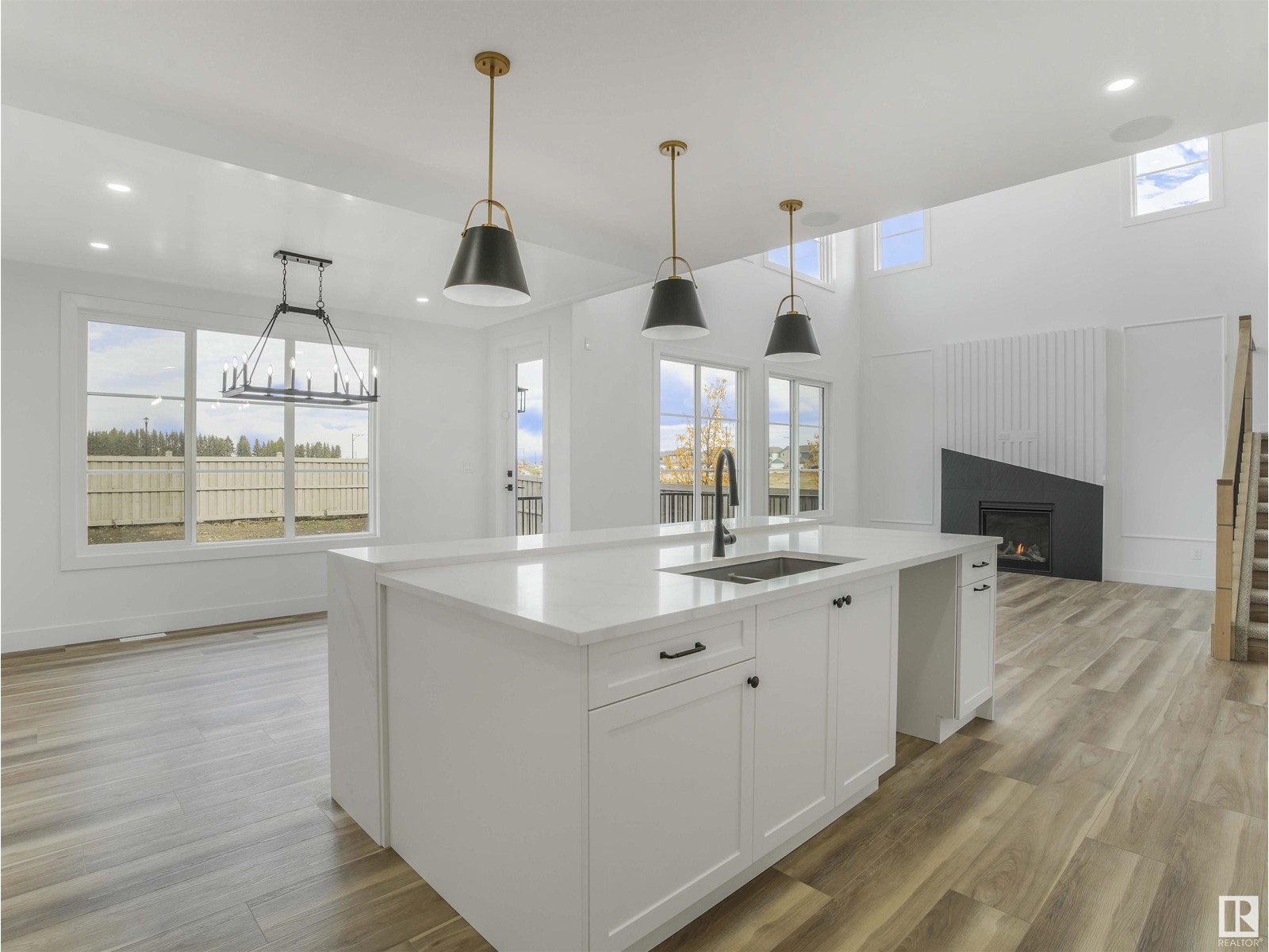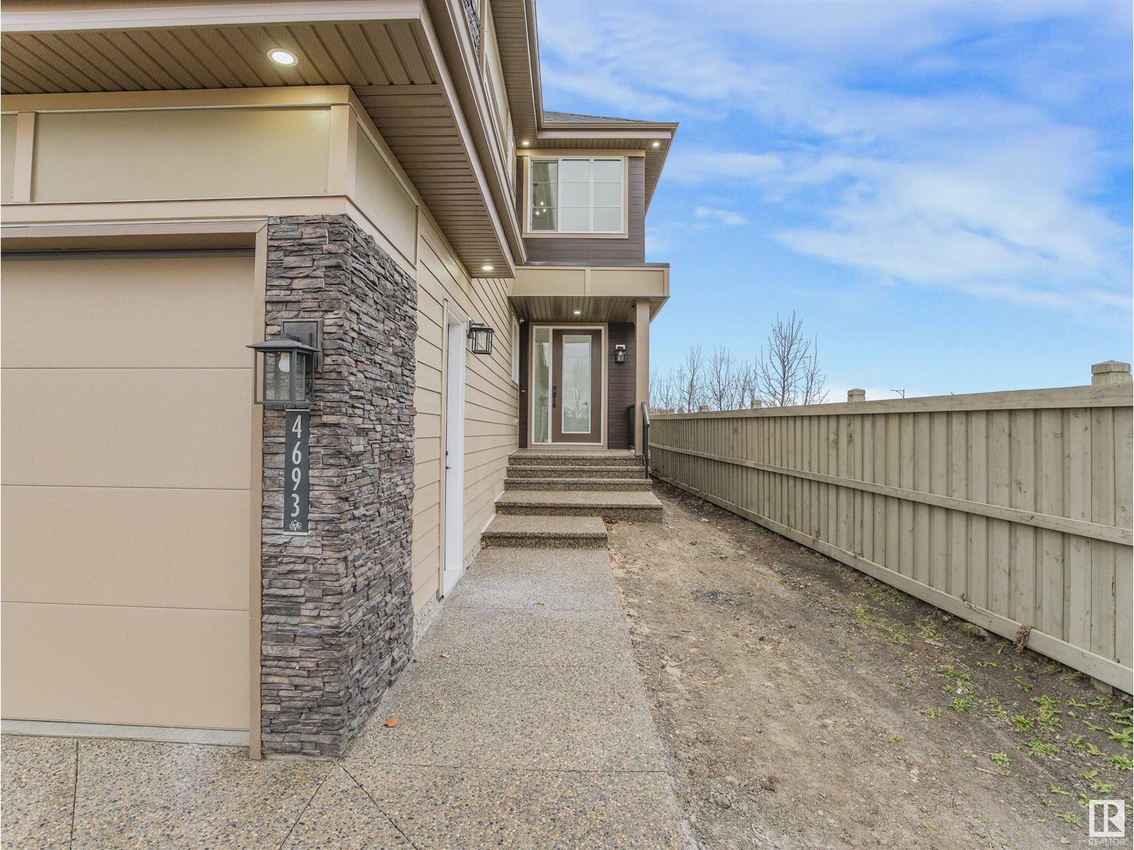Welcome to this exquisite new build by Klair Custom Homes offering the perfect blend of modern luxury and practicality with SEPARATE SIDE ENTRANCE for Potential LEGAL OR IN-LAW Suite! Corner house with abundance of windows & next to huge walkway but no requirement for snow cleaning. Open concept kitchen w SPICE KITCHEN & Triple Car Garage. This spacious home is built green certified. Open to above living area w 19 ceiling, 9 ceilings throughout. Key Features: 5 bedrooms, including a bedroom/den on the main floor w a closet. 4 full bathrooms, incl 2 ensuites & full bathroom w walk-in shower on main floor. Deck with aluminum railing, AND A FULLY FENCED YARD, gas fp with tile & slate work, appliances package included for main & spice kitchen & laundry. 50-gallon hot water tank, 2 High-Efficiency furnaces with HRV on the main floor for optimal climate control. Alberta New Home Warranty & RPR WITH COMPLIANCE provided. Don't miss out on this exceptional home! (id:22211)