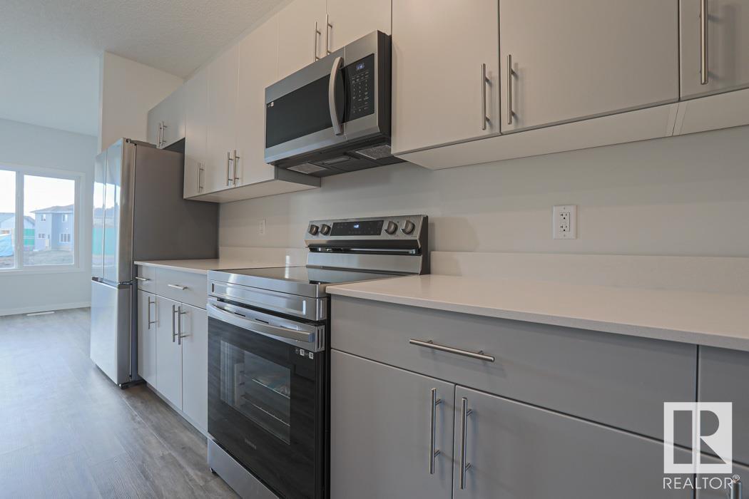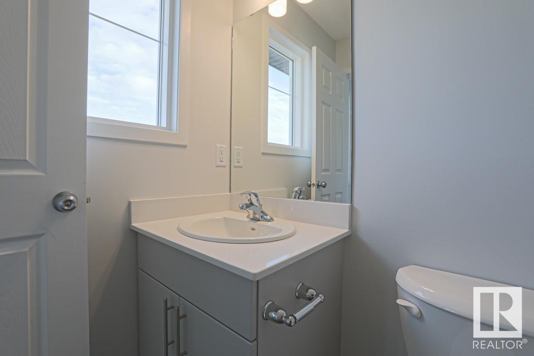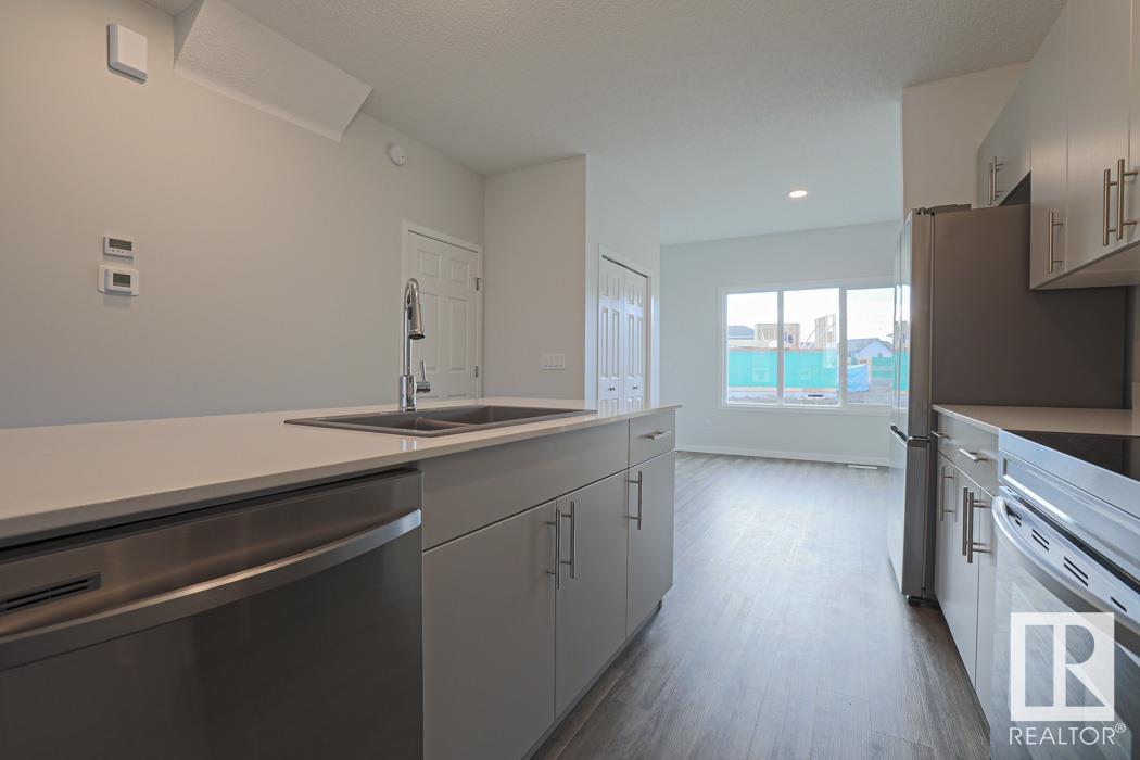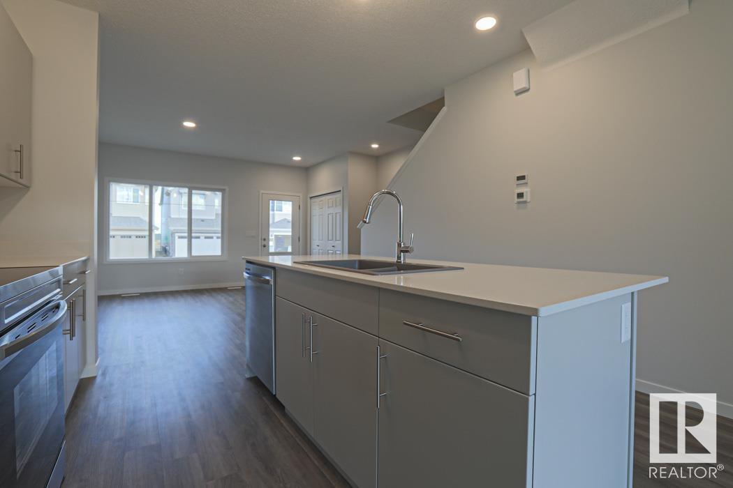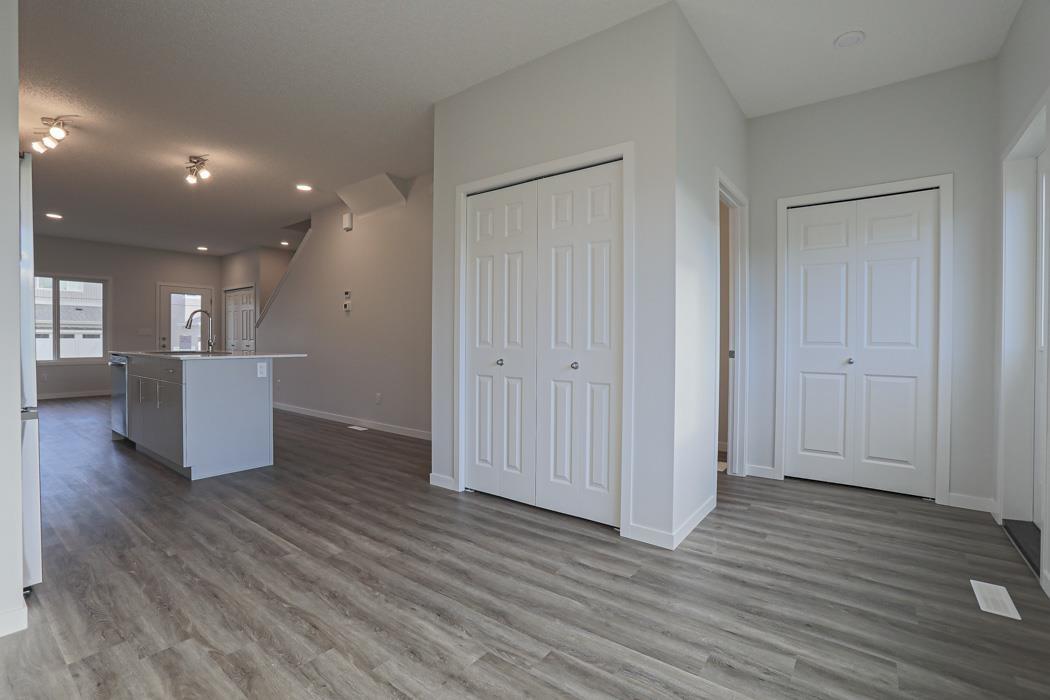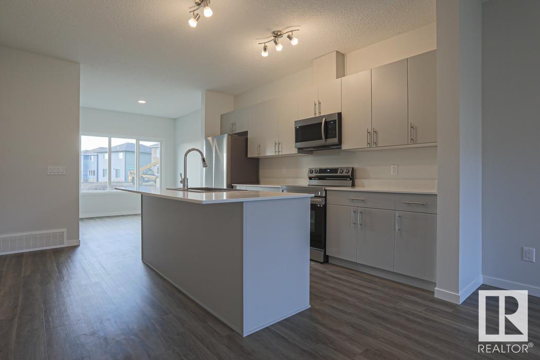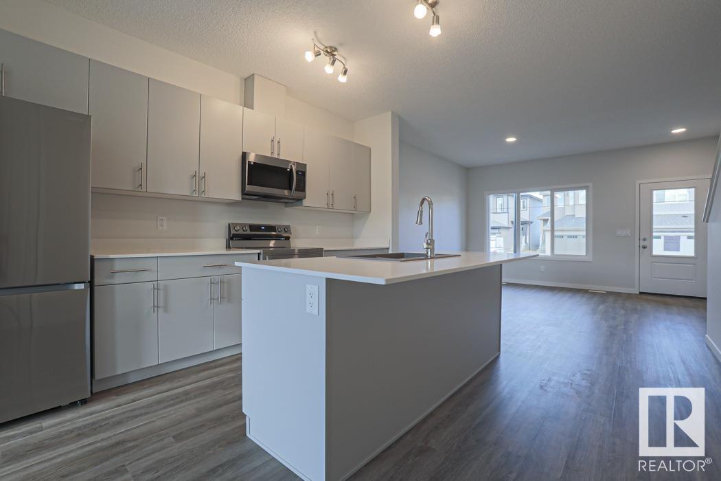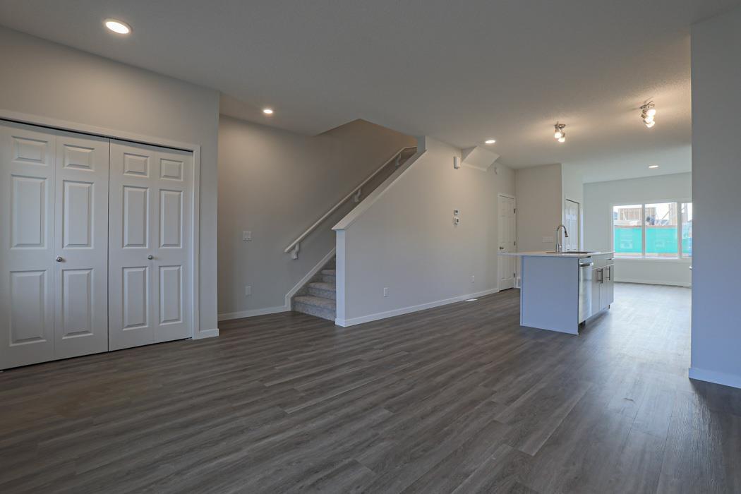 Welcome to The Stellar, where comfort, beauty, and efficiency blend seamlessly in this Evolve home. As you step into the inviting foyer, you'll notice a convenient coat closet. The cozy great room is bathed in natural light from the large front window and the centrally located kitchen is highly functional, featuring quartz countertops (throughout), 4 quartz backsplash, a Silgranite sink, island with a flush eating ledge, plenty of Thermofoil cabinets with soft-close doors and drawers, and a spacious pantry concealed behind bi-fold doors. At the rear of the home, you'll find the dining area with large windows overlooking the backyard, a 1/2 bath, and the rear entry leading to a spacious backyard and parking pad. Moving to the upper floor, you'll discover an open loft are a, a bright master bedroom with a walk-in closet and a 3-piece ensuite featuring a tub/shower combo, a main 3-piece bath, a laundry closet for a stackable washer/dryer, and comfortable second and third bedrooms. (id:22211)