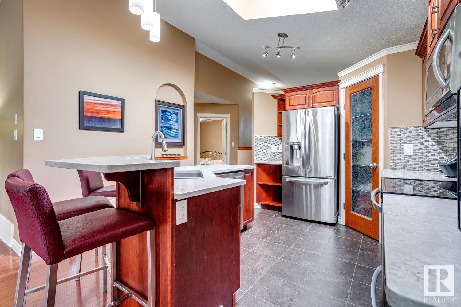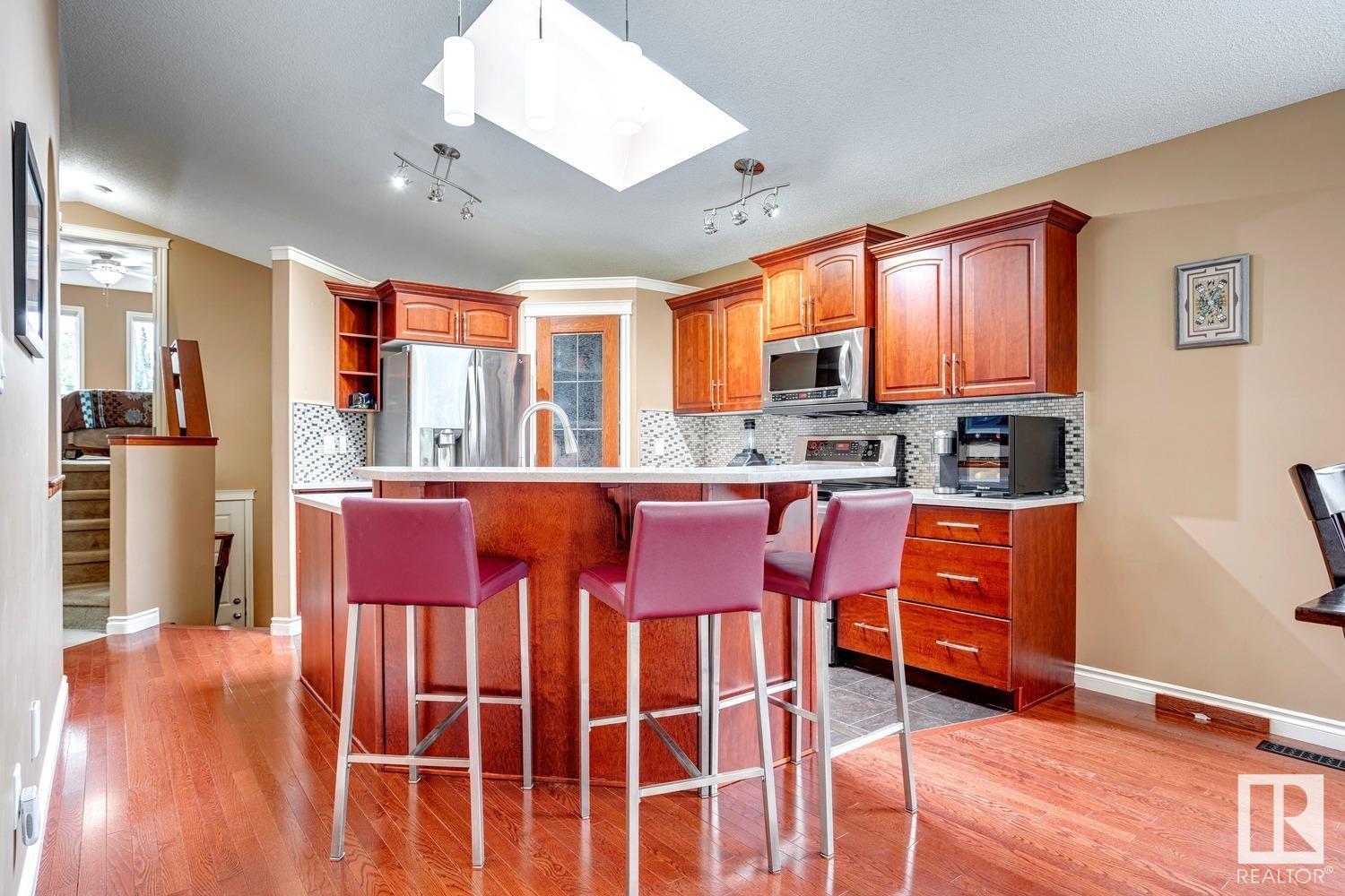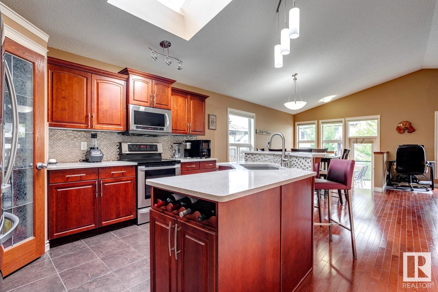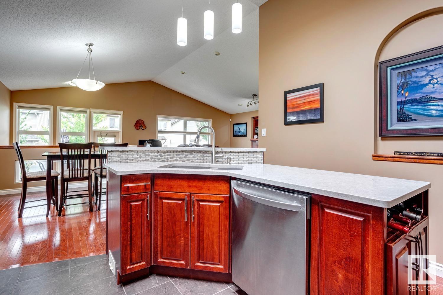 Awesome home in desirable Charlesworth! This meticulously kept, 3 bed/3 bath bi-level offers 2200+ sqft of living space, has been lovingly cared for by the original owner and most certainly shows it. The main floor features a very open floor plan, gorgeous kitchen w/rich cabinetry, s.s. appliances, quartz counters, hardwood/tile flooring, and vaulted ceilings. Large living area w/beautiful gas fireplace, great dining space, and main floor bedroom. The primary bed sits on its own upper level, complete w/4-pc ensuite and walk-in closet. Dual staircases lead to the fully finished lower level which offers a huge rec area w/wet bar and in-floor heat throughout. Additional bedroom, 3-pc bath, and loads of storage space. Outside you will enjoy the composite deck and maintenance free landscaping. Central A/C, double attached garage, the list goes on. Close to all amenities, this is a very well kept home in a great location! (id:22211)