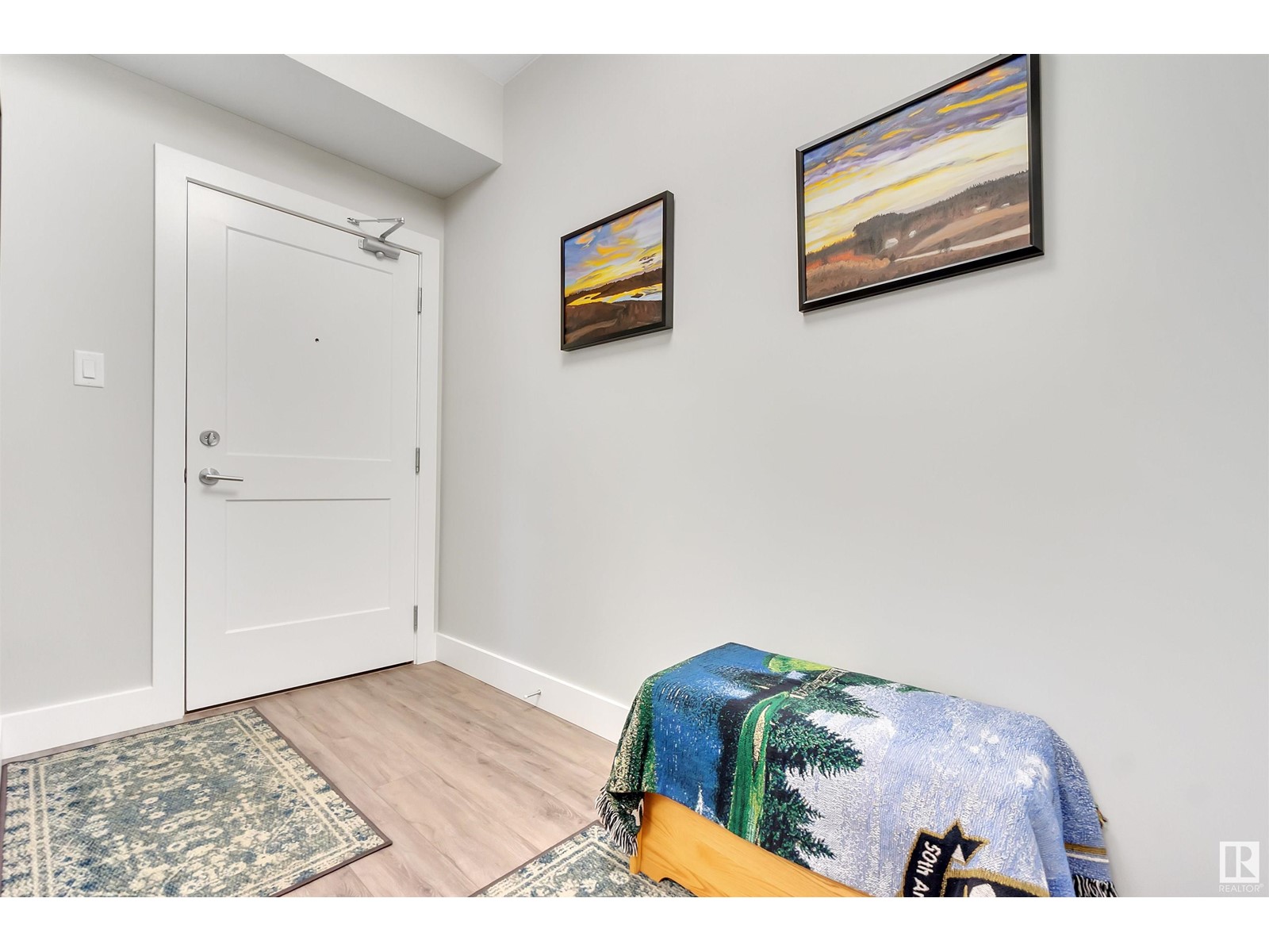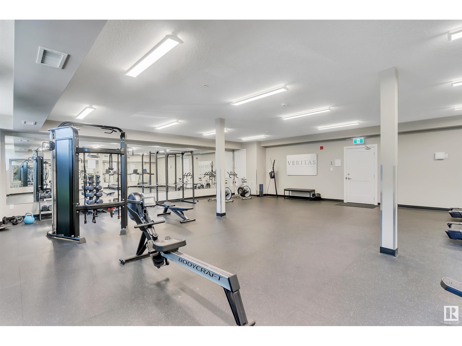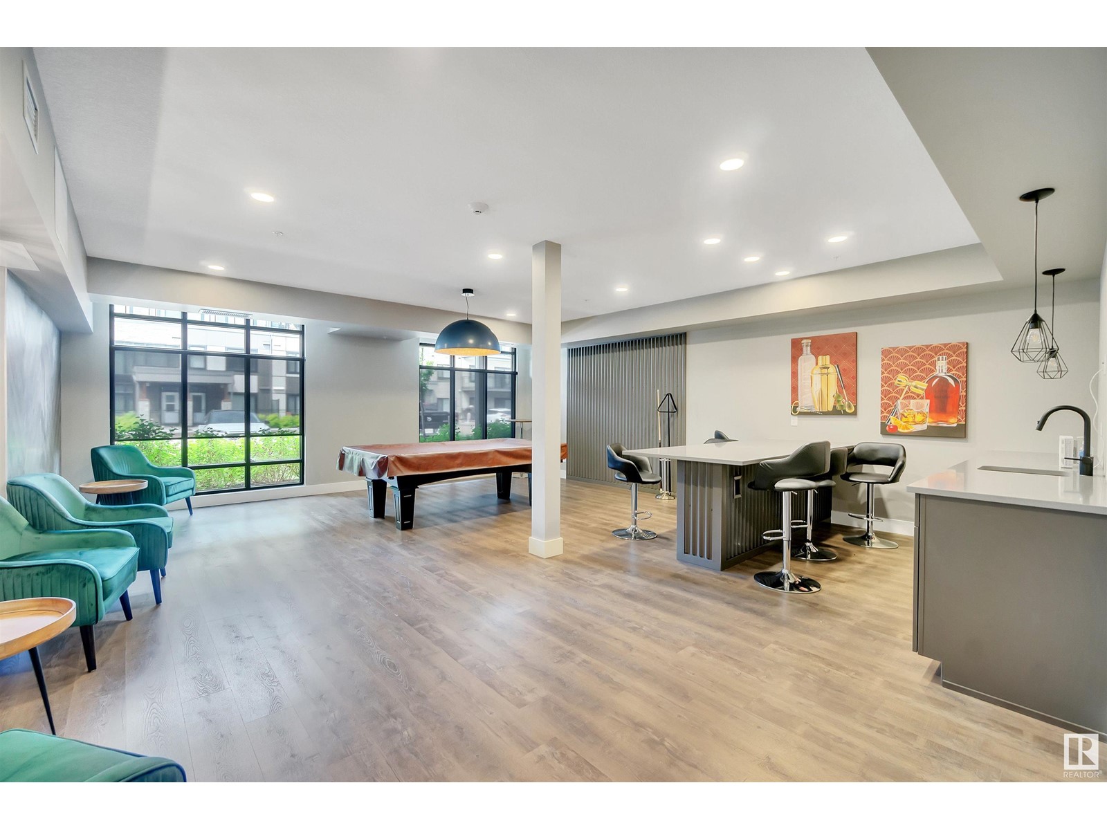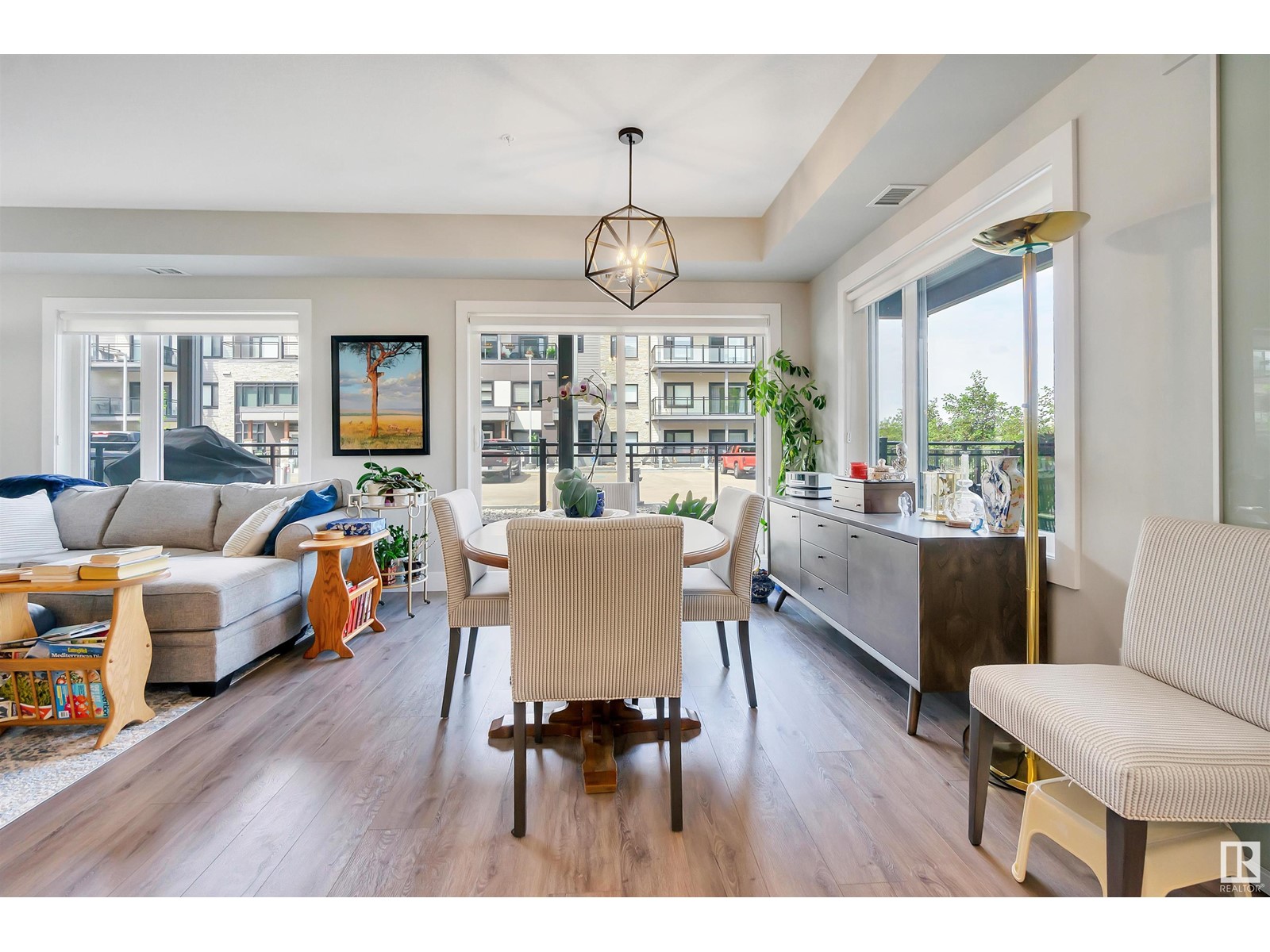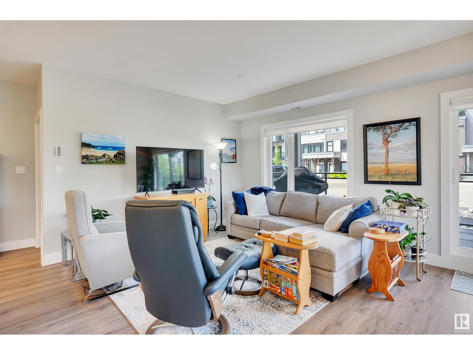 Veritas is an extraordinary newer condo project overlooking Patricia Lake and the Cultural Amphitheatre. This location is rich in amenities and history, featuring an abundance of walking trails and lakes, a 24-acre central park, and an urban village home to new restaurants and retail stores. You will be delighted when you see this 1346sf main floor unit. It is bright, open, modern and meticulously cared for! There are two bedrooms, den/flex room, 4 pc guest bath, and full laundry room. High end finishes throughout including luxury vinyl plank, upgraded light fixtures, quartz countertops, and stainless steel appliances. The primary bedroom is spacious and has an attached 4 pc ensuite. The unit comes with 2 titled parking stalls (one underground/with storage cage and another surface spot). The massive patio (292sf) is a great place to relax, and unwind. Did I mention central AC, fitness center, social room and guest suite included? Great unit for pet owners and those with mobility challenges. Welcome home. (id:22211)