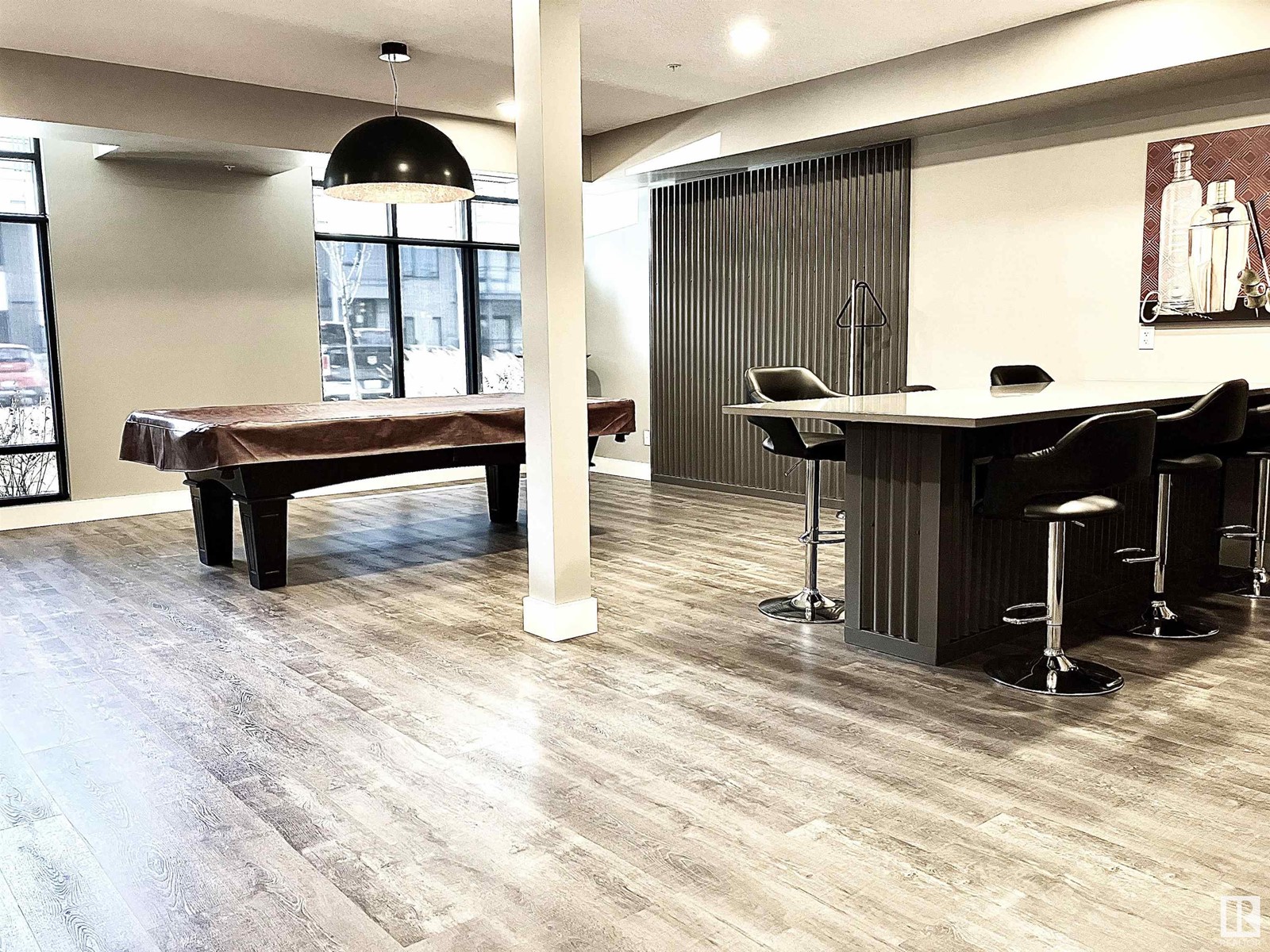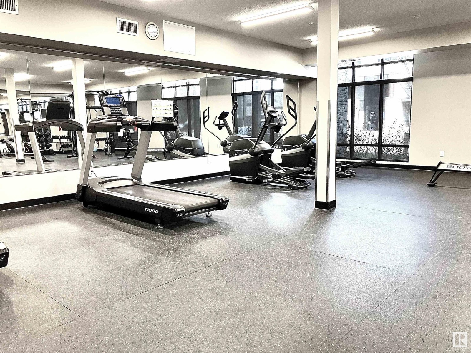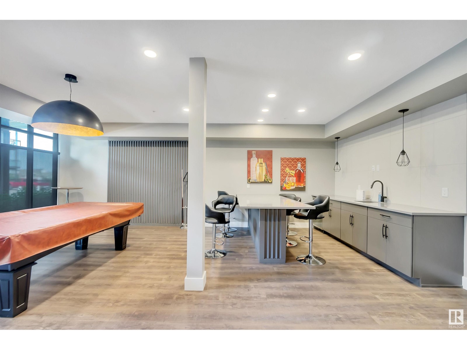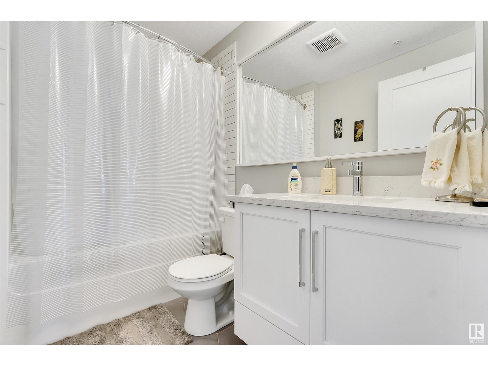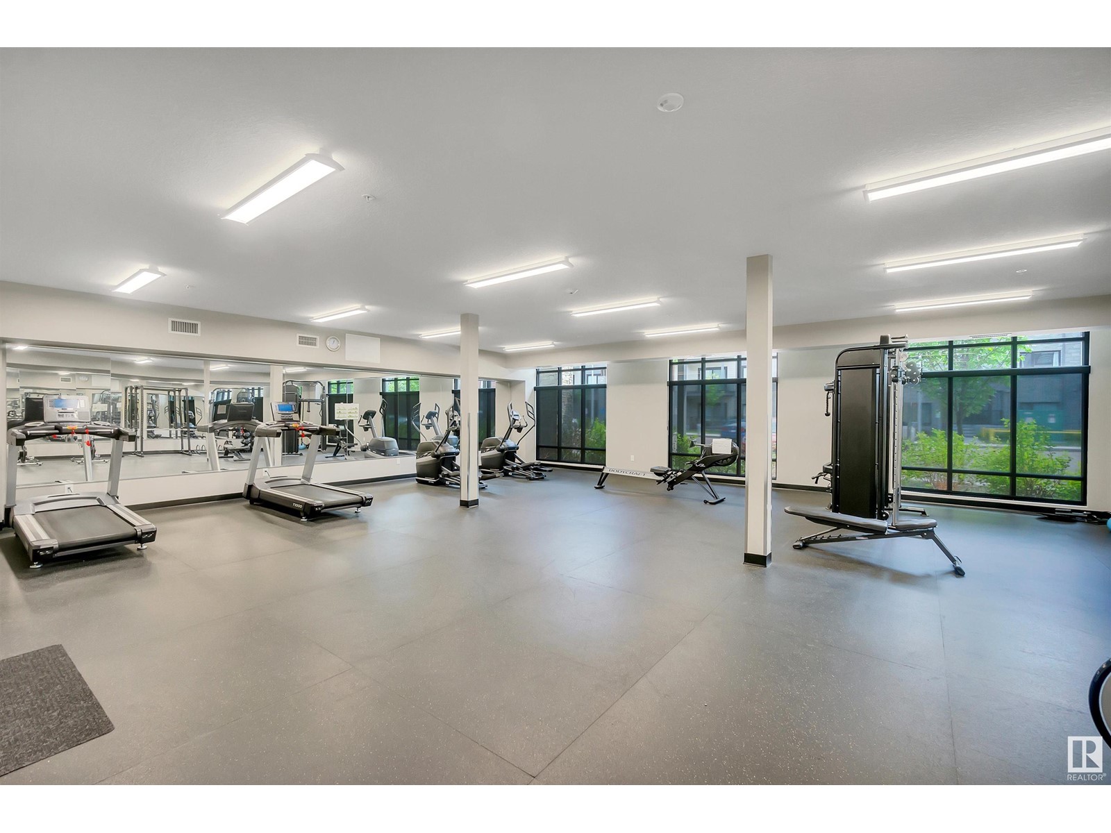 Veritas is an extraordinary newer condo project overlooking Patricia Lake and the Cultural Amphitheatre. This location is rich in amenities and history, featuring an abundance of walking trails and lakes, a 24-acre central park, and an urban village home to new restaurants and retail stores. You will be delighted when you see this 1346sf main floor unit. It is bright, open, modern and meticulously cared for! There are two bedrooms, den/flex room, 4 pc guest bath, and full laundry room. High end finishes throughout including luxury vinyl plank, upgraded light fixtures, quartz countertops, and stainless steel appliances. The primary bedroom is spacious and has an attached 4 pc ensuite. The unit comes with 2 titled parking stalls (one underground/with storage cage and another surface spot). The massive patio (292sf) is a great place to relax, and unwind. Did I mention central AC, fitness center, social room and guest suite included? Great unit for pet owners and those with mobility challenges. Welcome home. (id:22211)