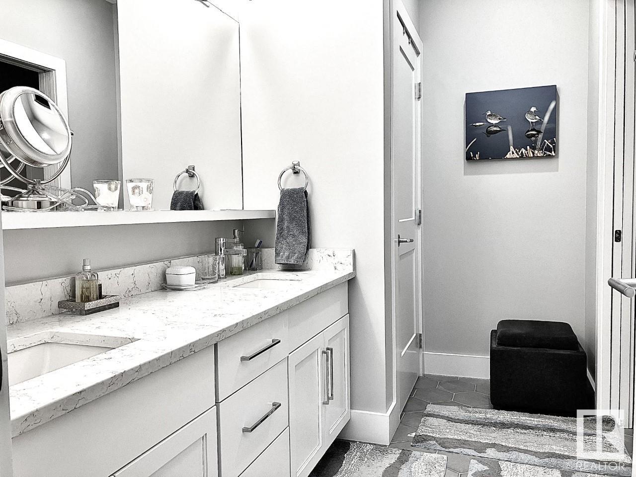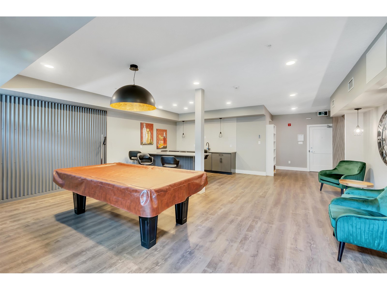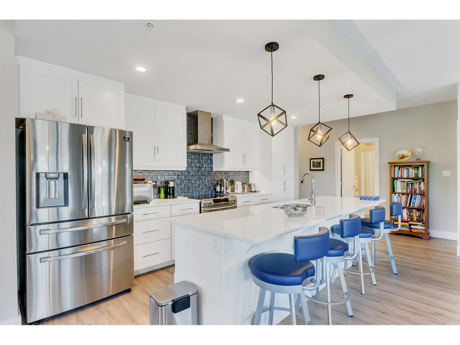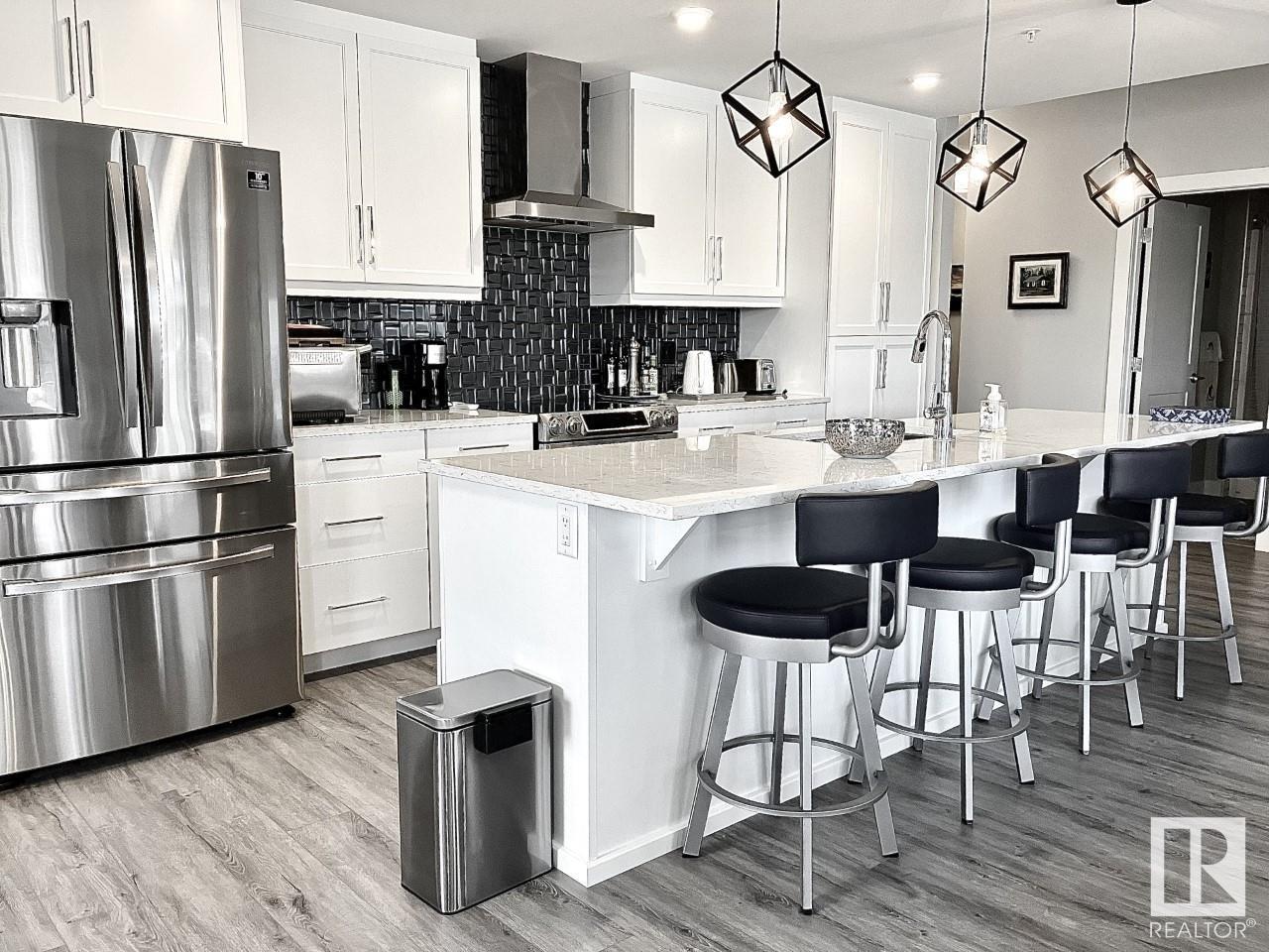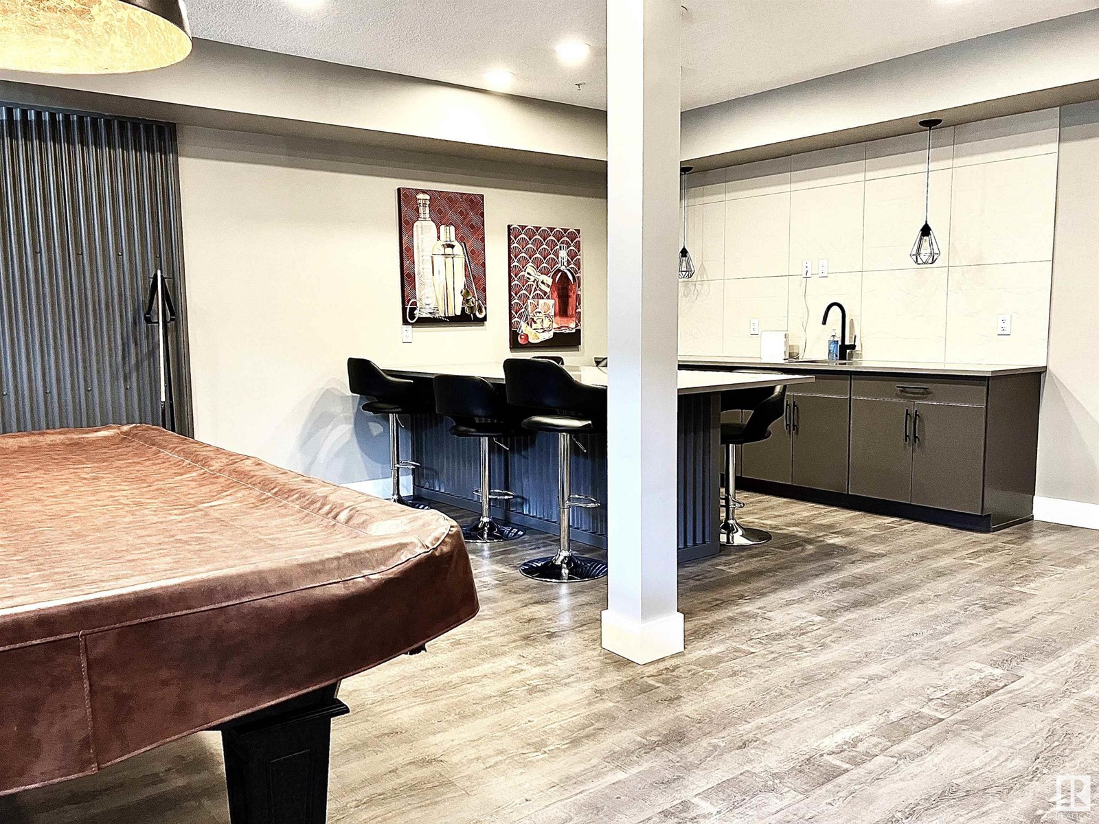 Veritas is an extraordinary newer condo project overlooking Patricia Lake and the Cultural Amphitheatre. This location is rich in amenities and history, featuring an abundance of walking trails and lakes, a 24-acre central park, and an urban village home to new restaurants and retail stores. You will be delighted when you see this 1346sf main floor unit. It is bright, open, modern and meticulously cared for! There are two bedrooms, den/flex room, 4 pc guest bath, and full laundry room. High end finishes throughout including luxury vinyl plank, upgraded light fixtures, quartz countertops, and stainless steel appliances. The primary bedroom is spacious and has an attached 4 pc ensuite. The unit comes with 2 titled parking stalls (one underground/with storage cage and another surface spot). The massive patio (292sf) is a great place to relax, and unwind. Did I mention central AC, fitness center, social room and guest suite included? Great unit for pet owners and those with mobility challenges. Welcome home. (id:22211)