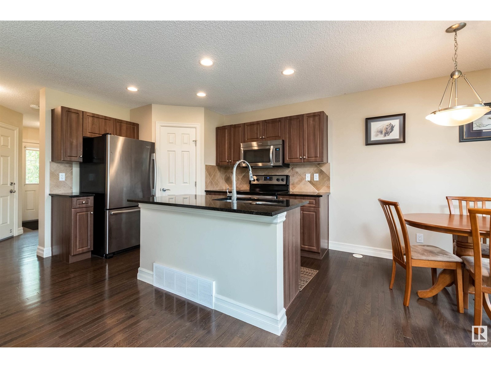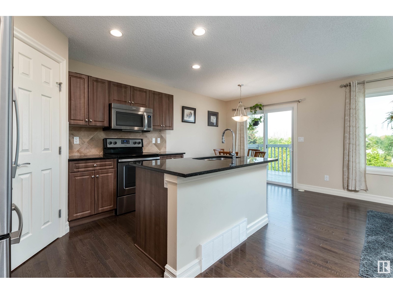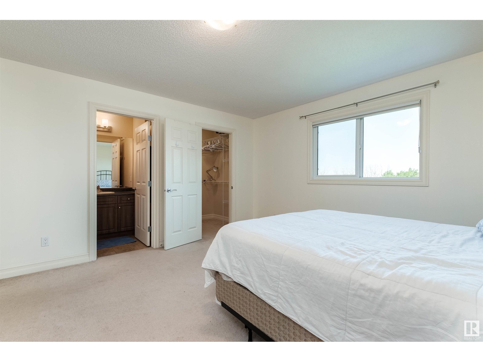 LOW CONDO FEES AND QUICK POSSESSION! This Charlesworth Half duplex is in an exceptional location, backing onto a serene pond and greenspace, setting the stage for a relaxing home to retreat to. Crafted by Landmark, this home invites you to an open-concept living space with hardwood floors, seamlessly connecting the kitchen and living room. Granite counters, stainless steel appliances, and easy-care cupboards adorn the kitchen. A private view of the pond awaits in the living area. Upstairs, two Primary Suites, each with an ensuite and ample closets, offer comfort and privacy. Convenience reigns with an upper laundry room. The walkout basement houses a spacious recreation area with expansive windows framing the yard and pond view. The Navien water system ensures endless hot water. Step outside to the pathway, connecting you to nearby amenities. This home transcends expectations with quick access to shopping and major routes such as the Henday. Embrace the view and seize this perfect opportunity! (id:22211)