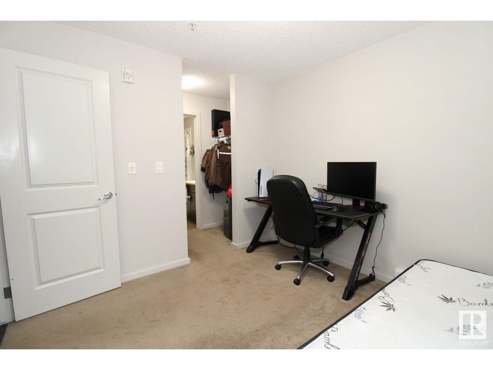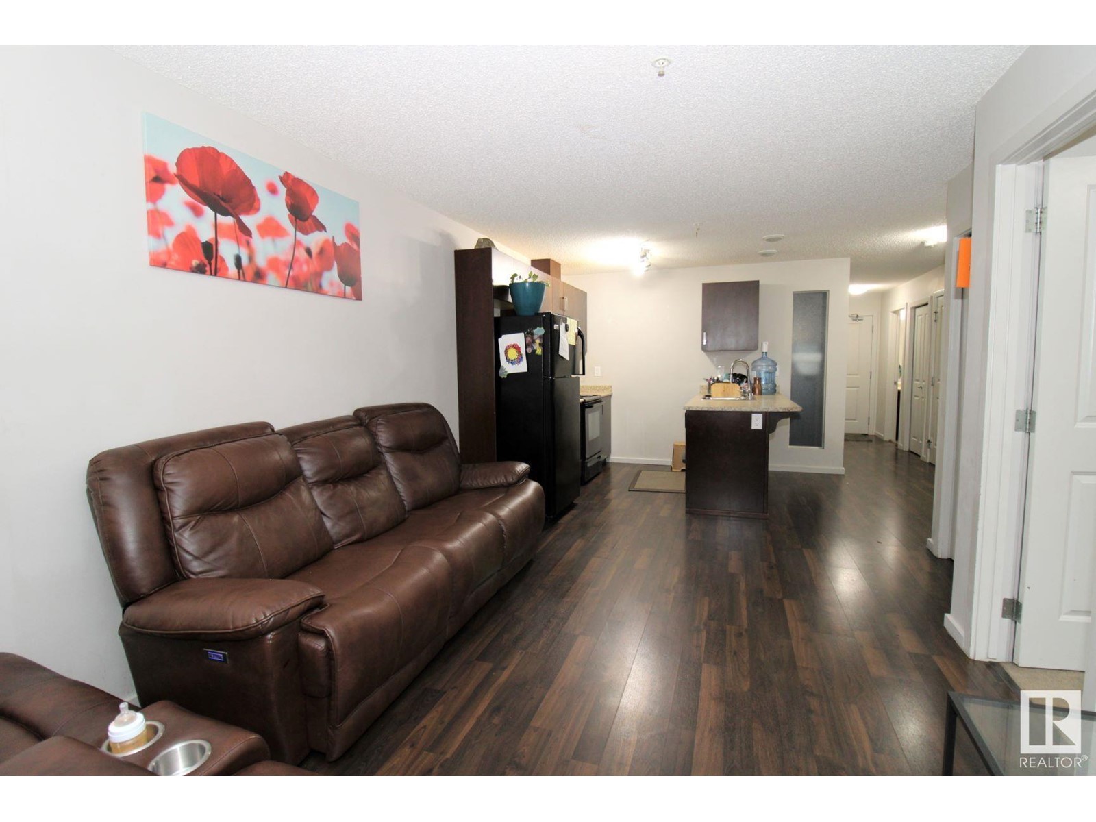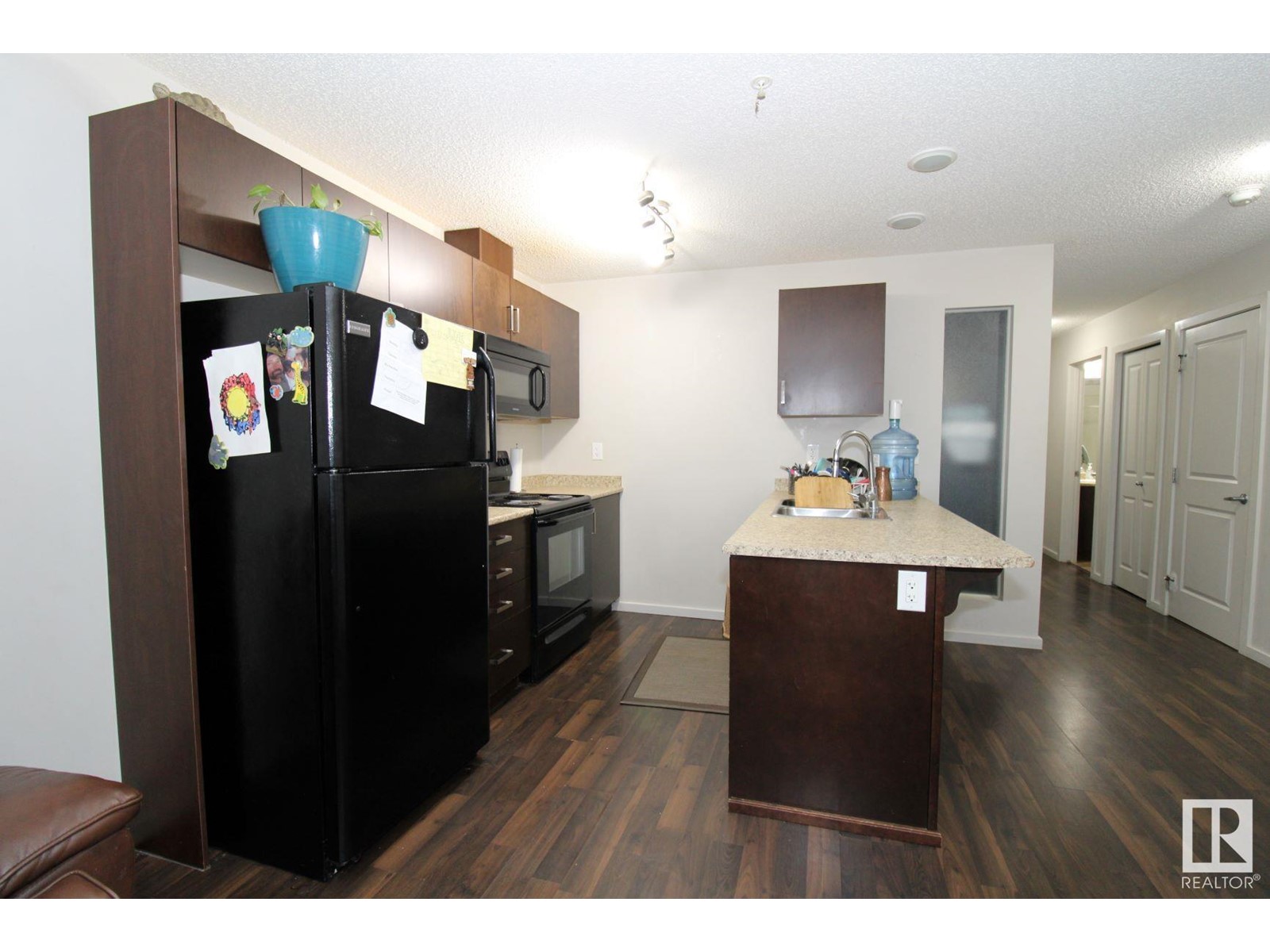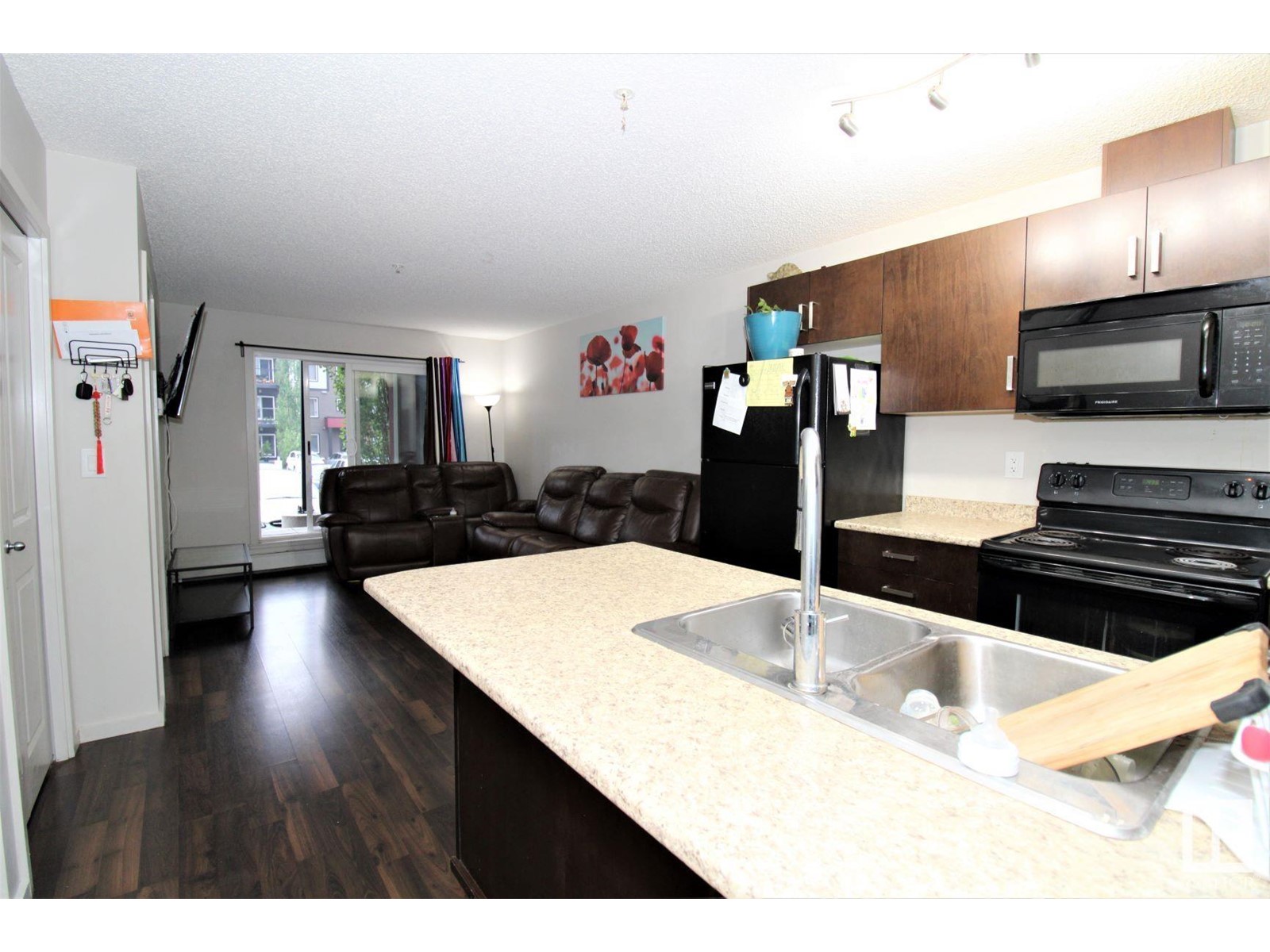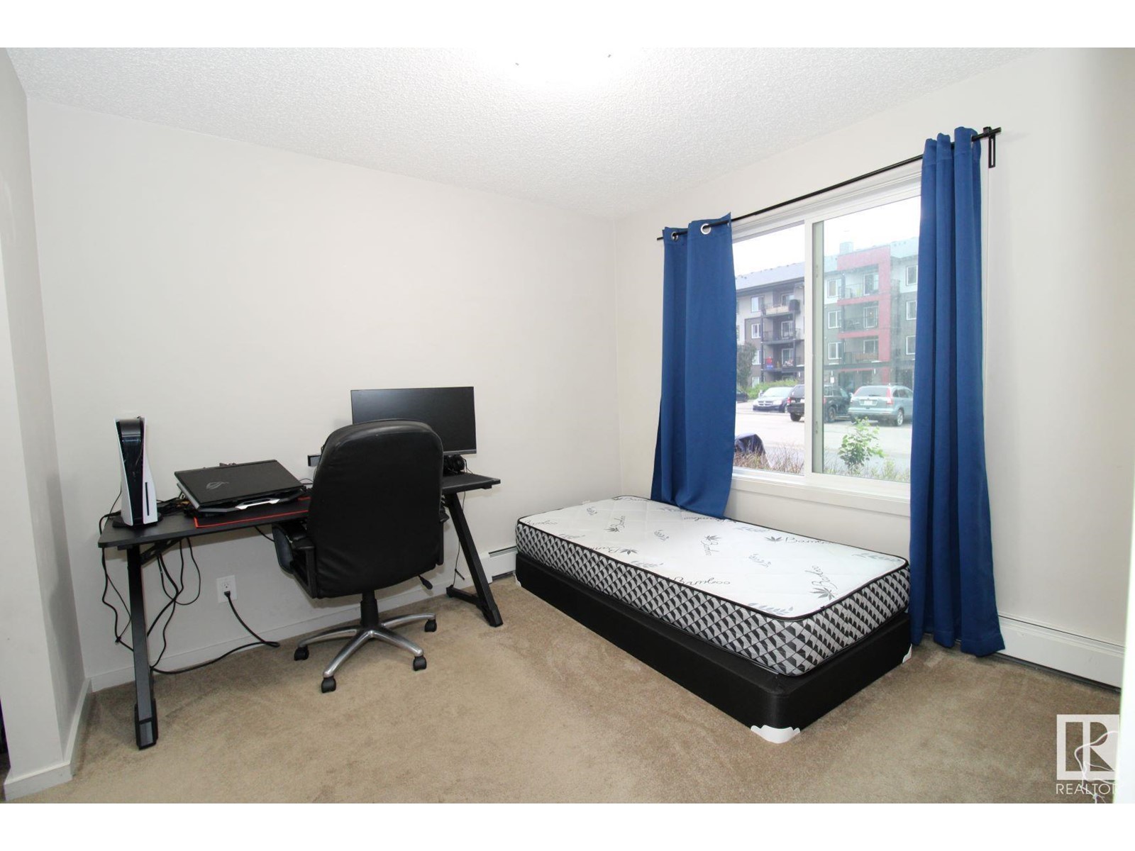 This beautiful condo, located in the amazing community of Charlesworth, boasts two bedrooms and two full bathrooms. It offers a comfortable living space with two parking spots (underground #203 & stall #326). The interior features high-quality finishes, upgraded floors, and an open layout with access to patio/deck. The modern kitchen is equipped with sleek black appliances, and the convenience of in-suite laundry adds to the appeal. This condo offers convenience and leisure, situated close to amenities such as public transportation, shopping centers, Anthony Henday Dr, South Common. It is at a walking distance from schools, trails, and ponds. Perfect for first time home buyers or investors. (id:22211)