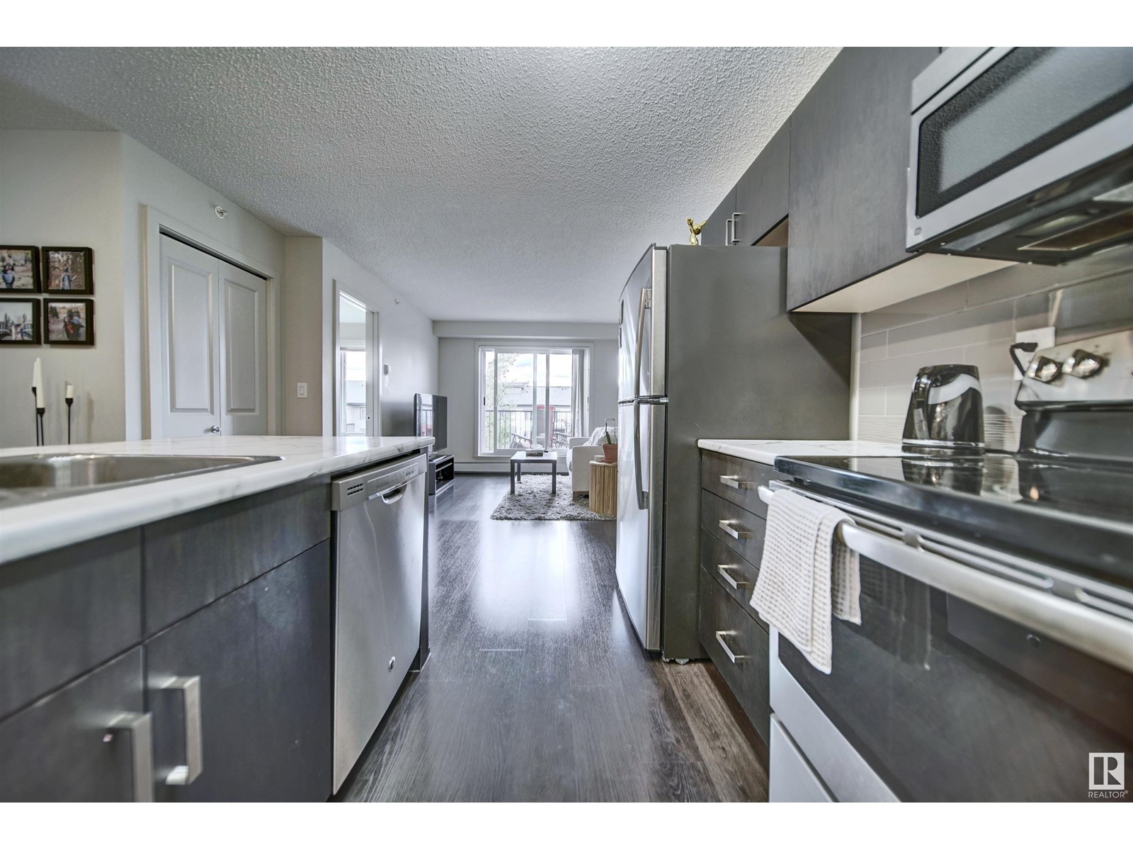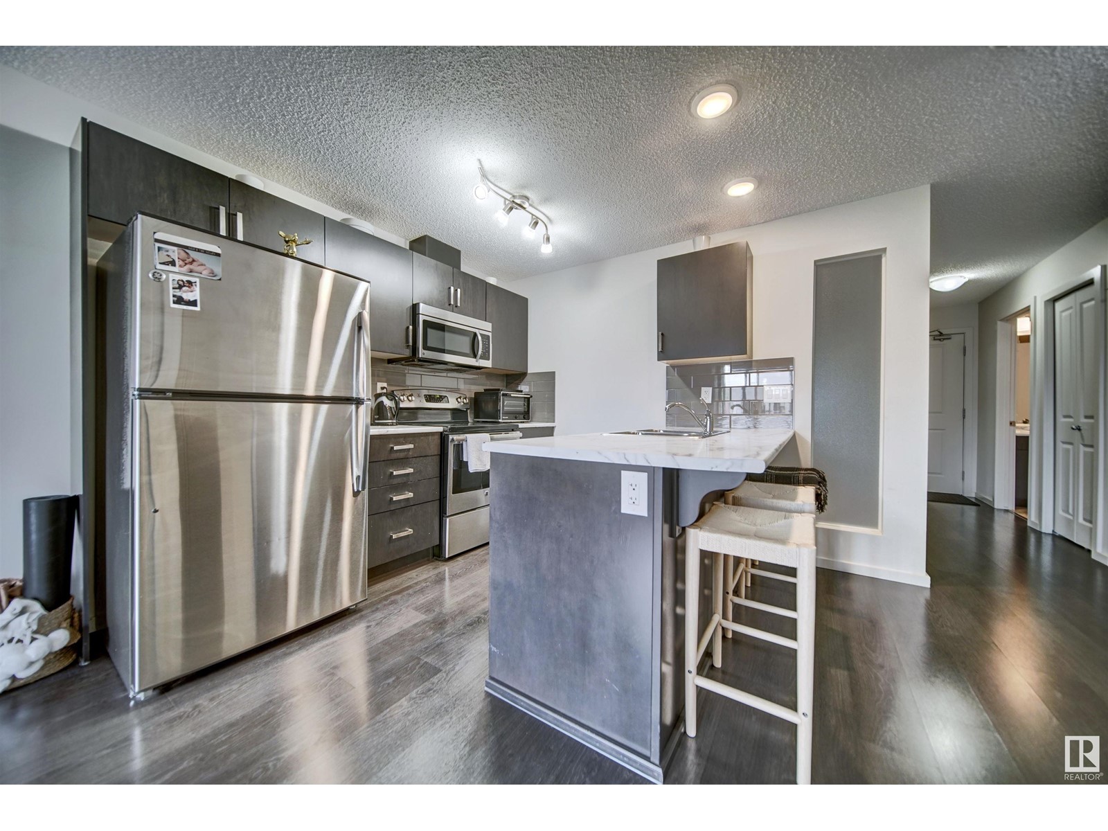 Immaculate top floor condo located in Charlesworth. This well cared for condo offers two bedroom and two full bathrooms. The stunning kitchen features stainless steal appliances, dark cabinetry, and a centre island. Open to the living room, enjoy a beautiful space with sliding glass doors to access the balcony. The primary bedroom comes equipped with a large walk in closet connecting to a private ensuite bathroom. Some key features of this unit include; in suite laundry, private balcony, titled underground parking stall and visitor parking. Walking distance to a variety of restaurants + grocery stores and 3 minute drive to Anthony Henday. Charlesworth is the perfect Edmonton neighbourhood for you to call home! (id:22211)