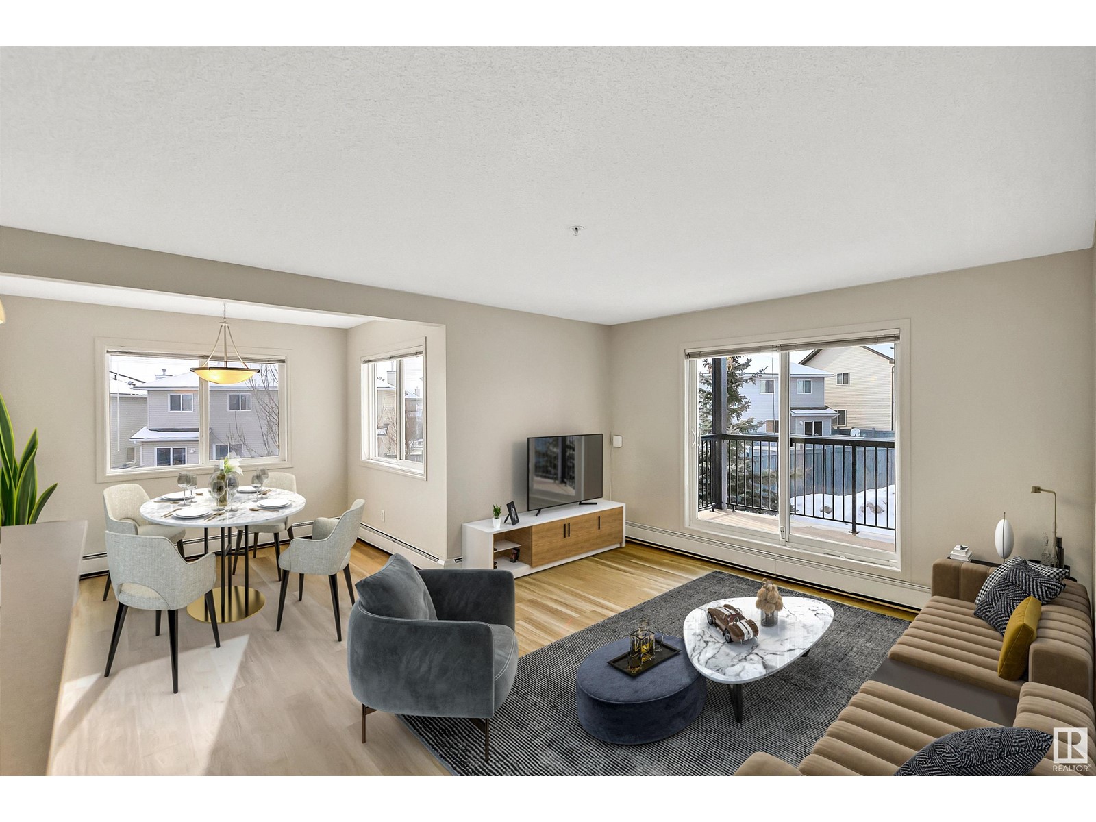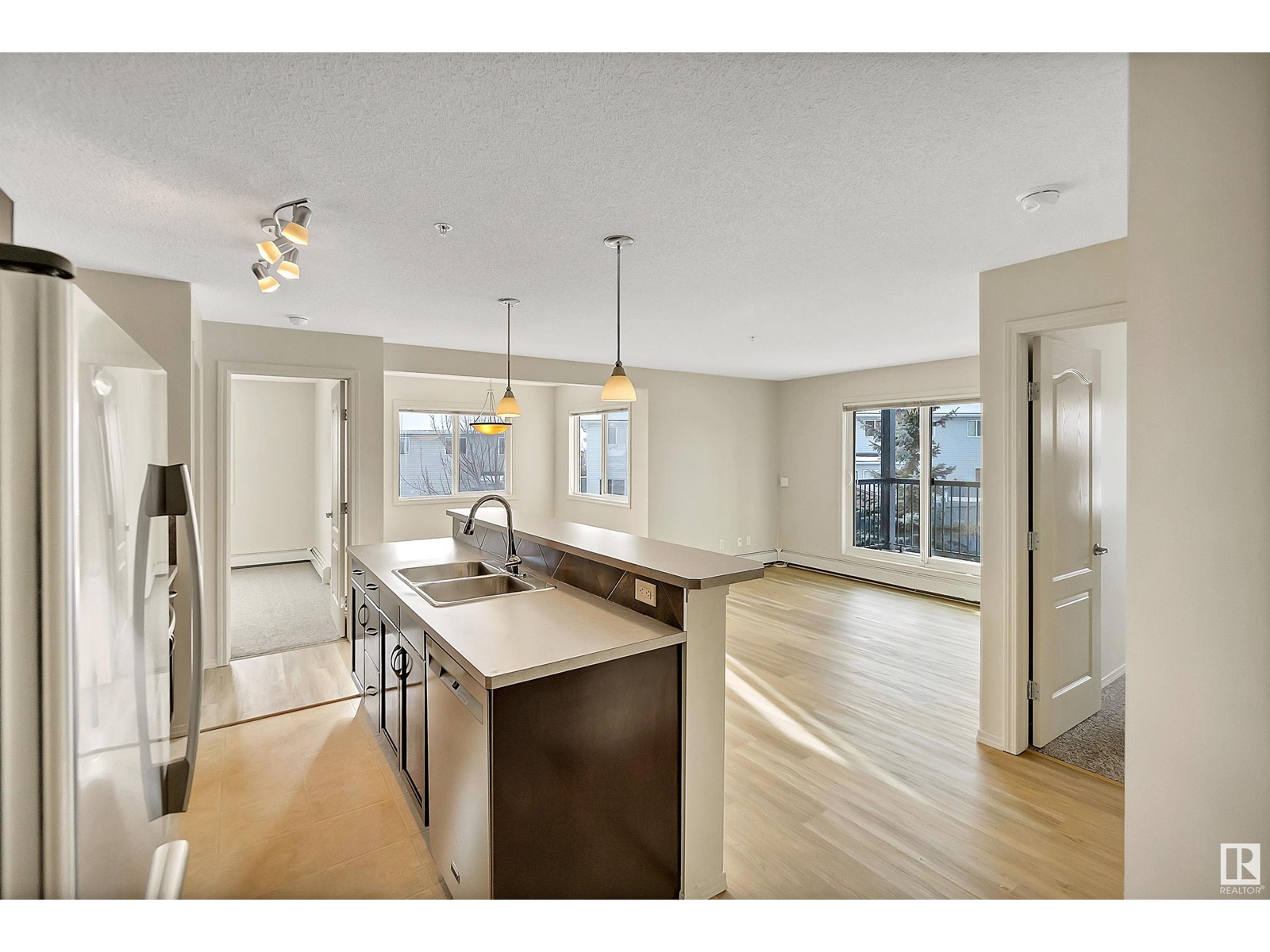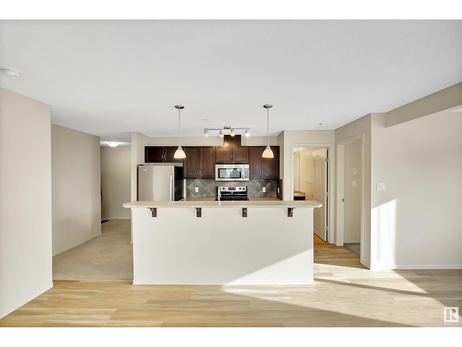 Indulge in comfort & convenience with this spacious 2nd-floor corner unit condo spanning 914sqft. Discover 2 bedrooms & 2 bathrooms & a spacious dining area. The kitchen is a dream for cooking enthusiasts w/ a 8.5 foot eating bar, ample natural light floods the home through large windows. The primary bedroom features a walk-in closet, providing plenty of storage space. Appreciate the ease of 1 titled underground heated parking spot & 1 extra outdoor parking spot. Perfectly situated, you're just minutes away from schools, parks, supermarkets, & eateries. A quick two-minute drive connects you to Anthony Henday highway, simplifying your commute. This pet-friendly unit (small pets permitted) is ideal for families or as an investment. Enjoy the perks of an in-building gym & a spacious common room for gatherings. Ready for you to move in & add your personal touch! The entire unit has been professionally painted w/ new carpets in the bedrooms and new vinyl plank flooring in the living areas. (id:22211)