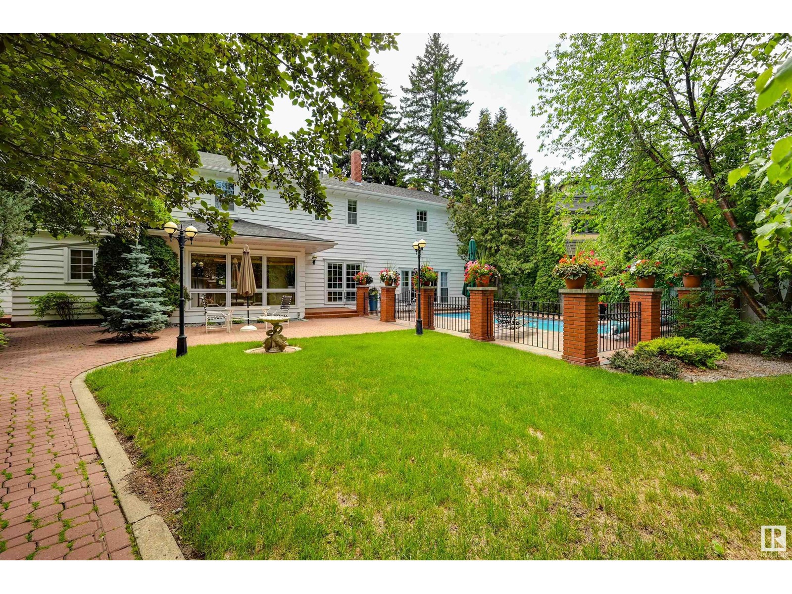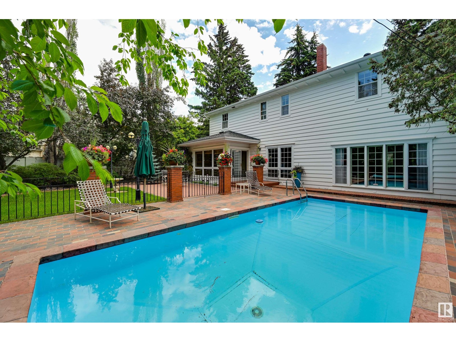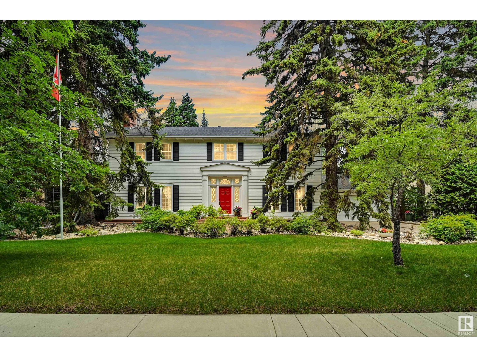 This Iconic Home situated on Wellington Crescent in prestigious Old Glenora, enjoys a lovely park view, and is waiting for a new family to call it home!! Huge trees frame this massive 11,000 square-foot pie lot. The grand foyer features custom millwork which enhances the colonial style of this glorious home. Large living room with a wood burning fireplace and hardwood floors. The piano room has a beautiful view of the backyard/outdoor pool. Formal dining room next to the spacious kitchen, with a huge island. The upstairs principal bedroom is a charming suite with a sitting area, walk in closets and a large 5 piece ensuite. There are two additional bedrooms upstairs, as well as another full bathroom. As you head down to the basement you will feel as though you are walking into the Jasper Park Lodge, as that was the grand inspiration behind the design! It boasts a card room, the fourth bedroom and a three piece bath. Properties in this location do not hit the market often, and this one is not to be missed!! (id:22211)