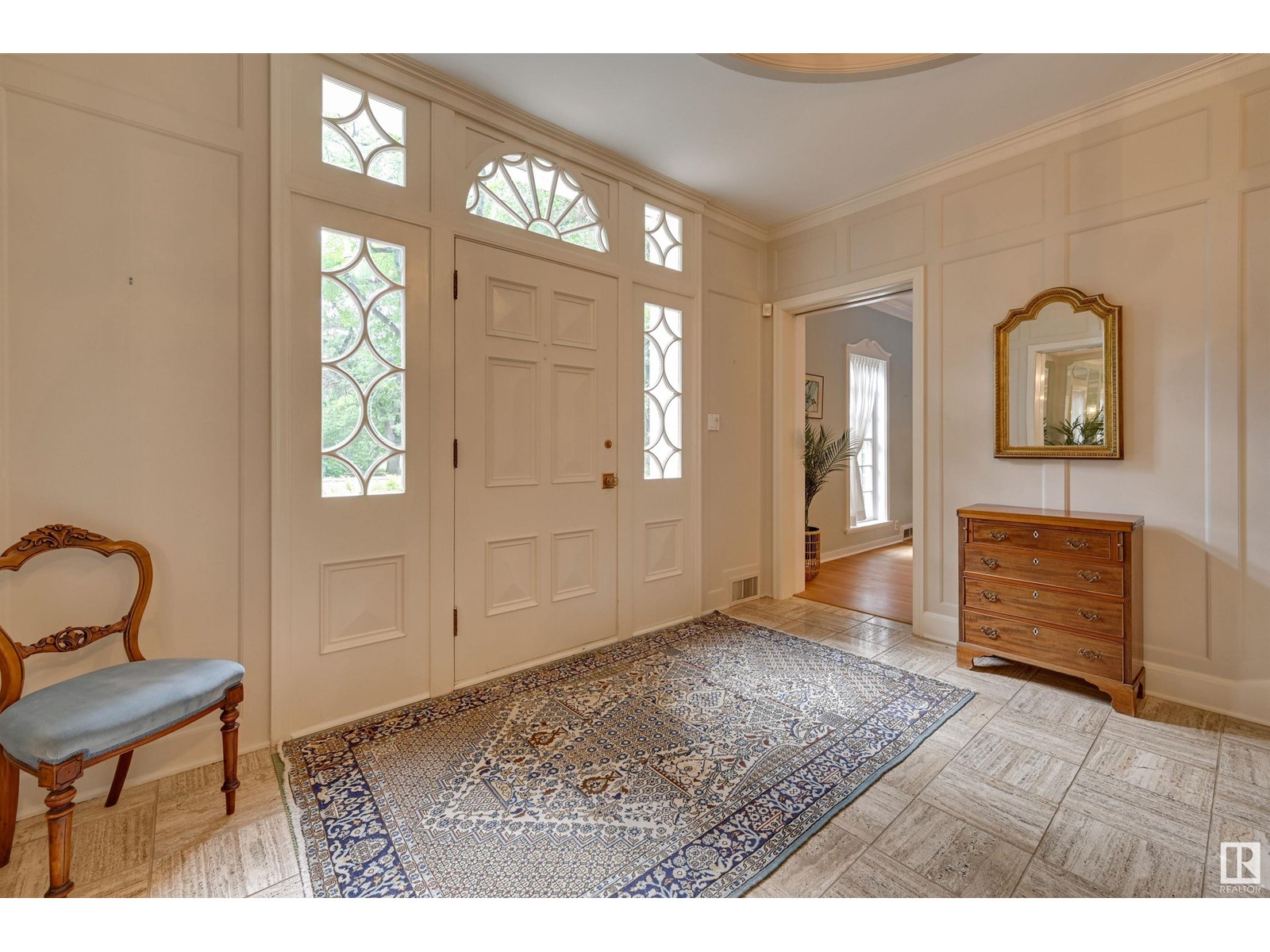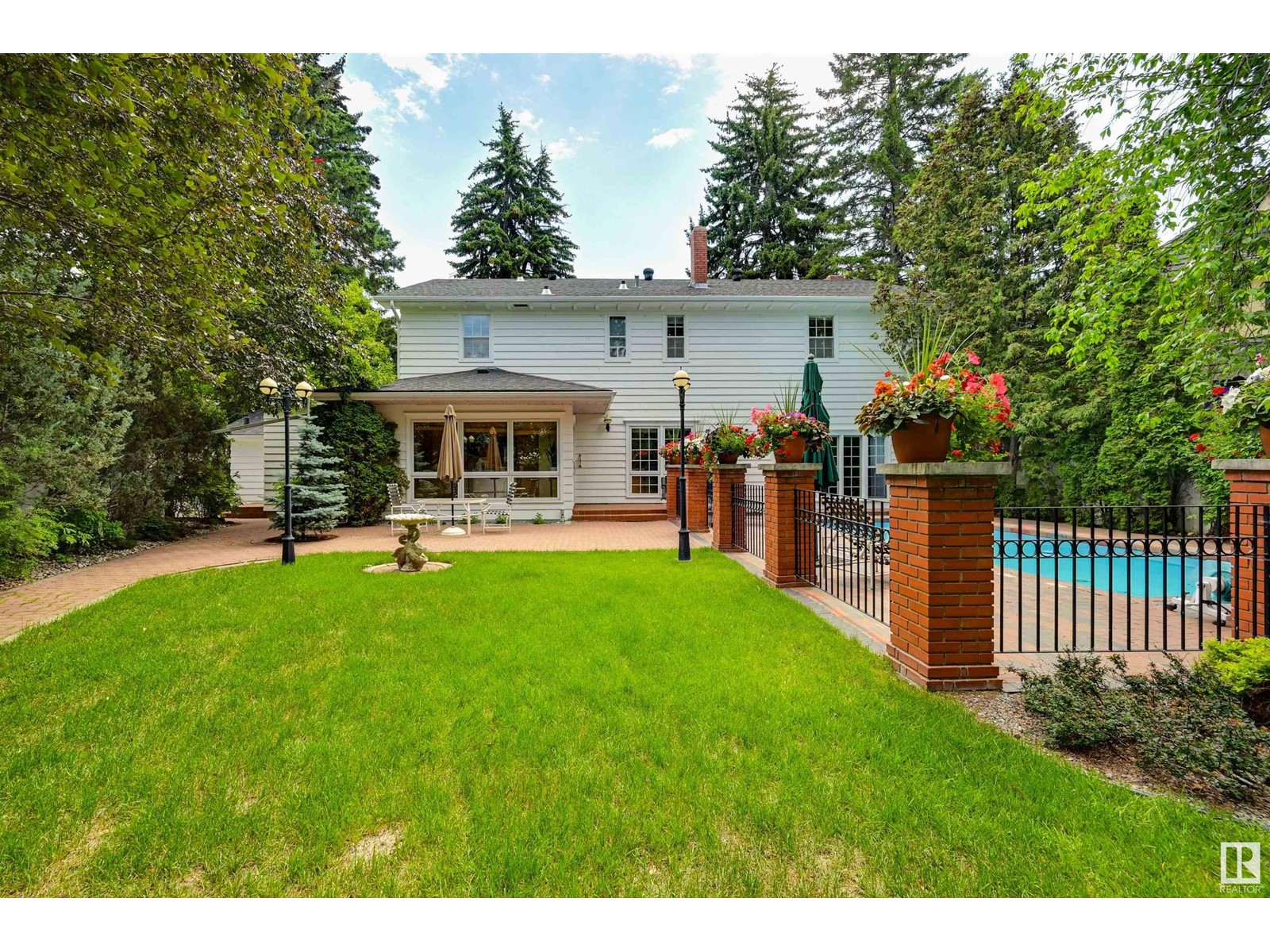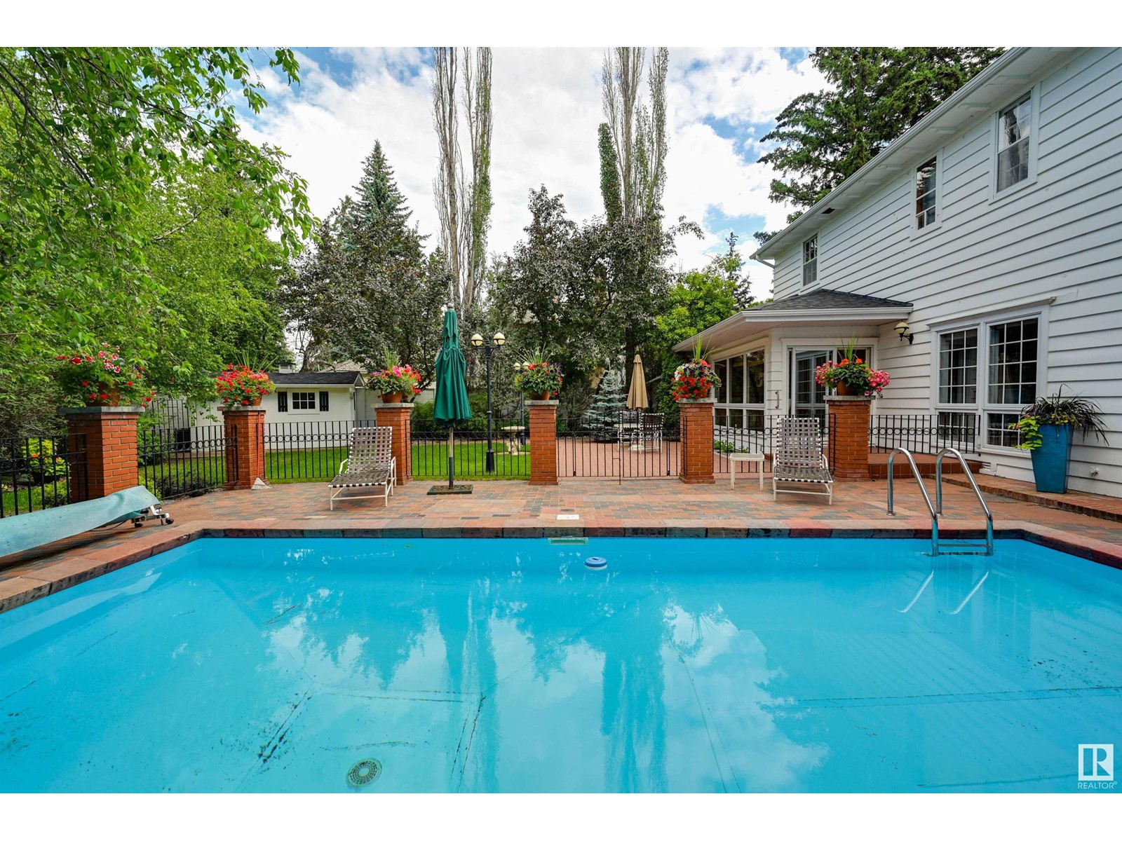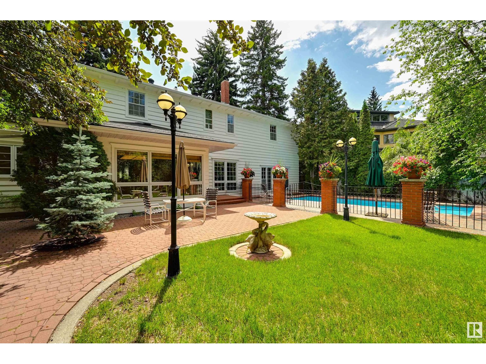 This Iconic Home situated on Wellington Crescent in prestigious Old Glenora, enjoys a lovely park view, and is waiting for a new family to call it home!! Huge trees frame this massive 11,000 square-foot pie lot. The grand foyer features custom millwork which enhances the colonial style of this glorious home. Large living room with a wood burning fireplace and hardwood floors. The piano room has a beautiful view of the backyard/outdoor pool. Formal dining room next to the spacious kitchen, with a huge island. The upstairs principal bedroom is a charming suite with a sitting area, walk in closets and a large 5 piece ensuite. There are two additional bedrooms upstairs, as well as another full bathroom. As you head down to the basement you will feel as though you are walking into the Jasper Park Lodge, as that was the grand inspiration behind the design! It boasts a card room, the fourth bedroom and a three piece bath. Properties in this location do not hit the market often, and this one is not to be missed!! (id:22211)