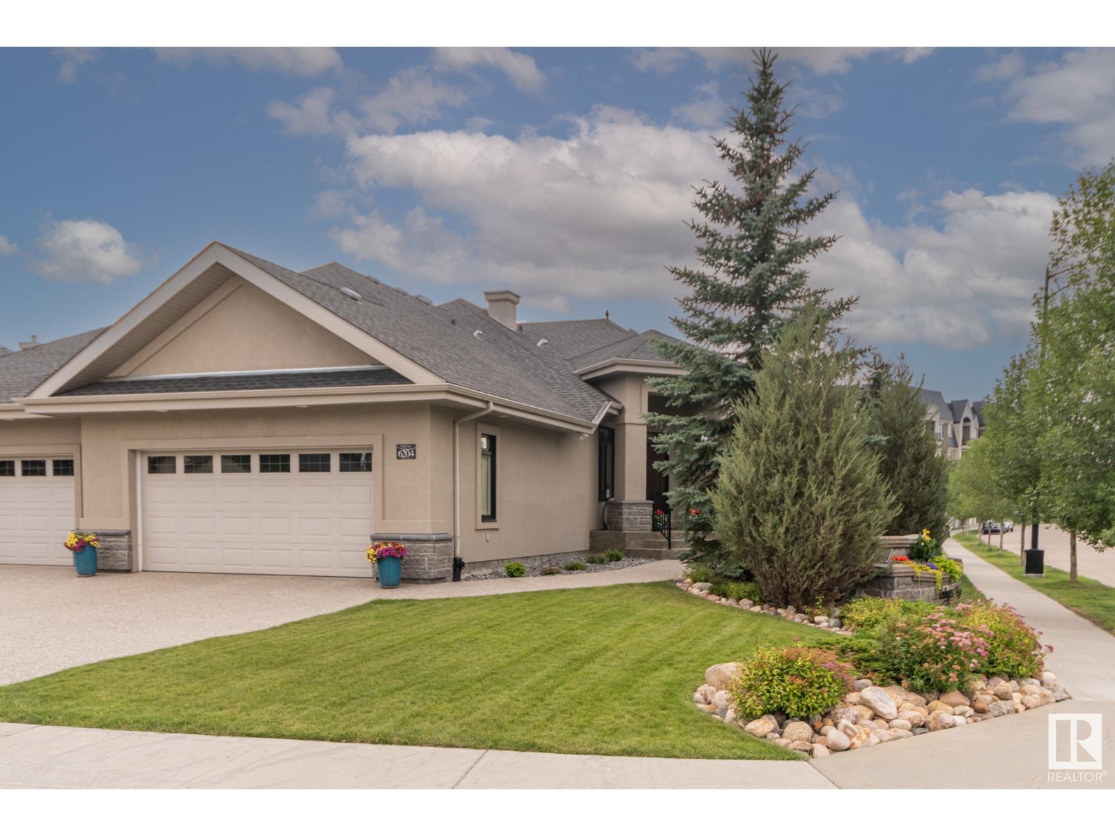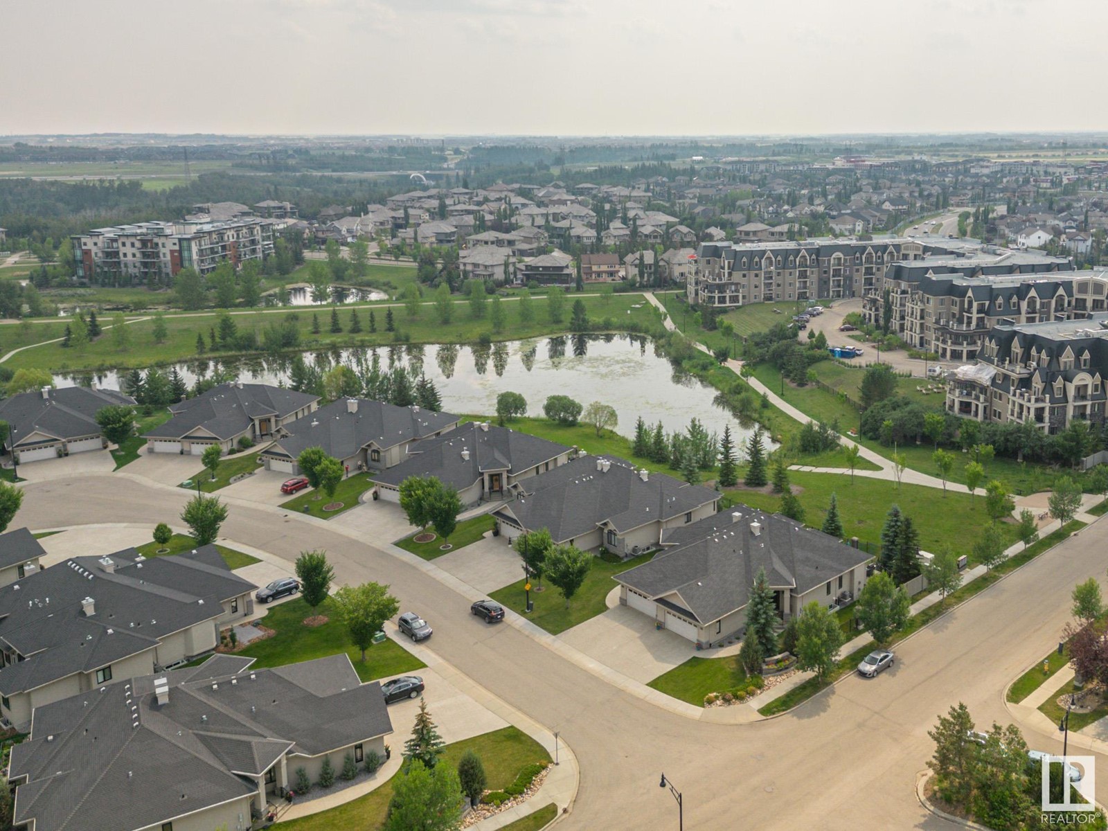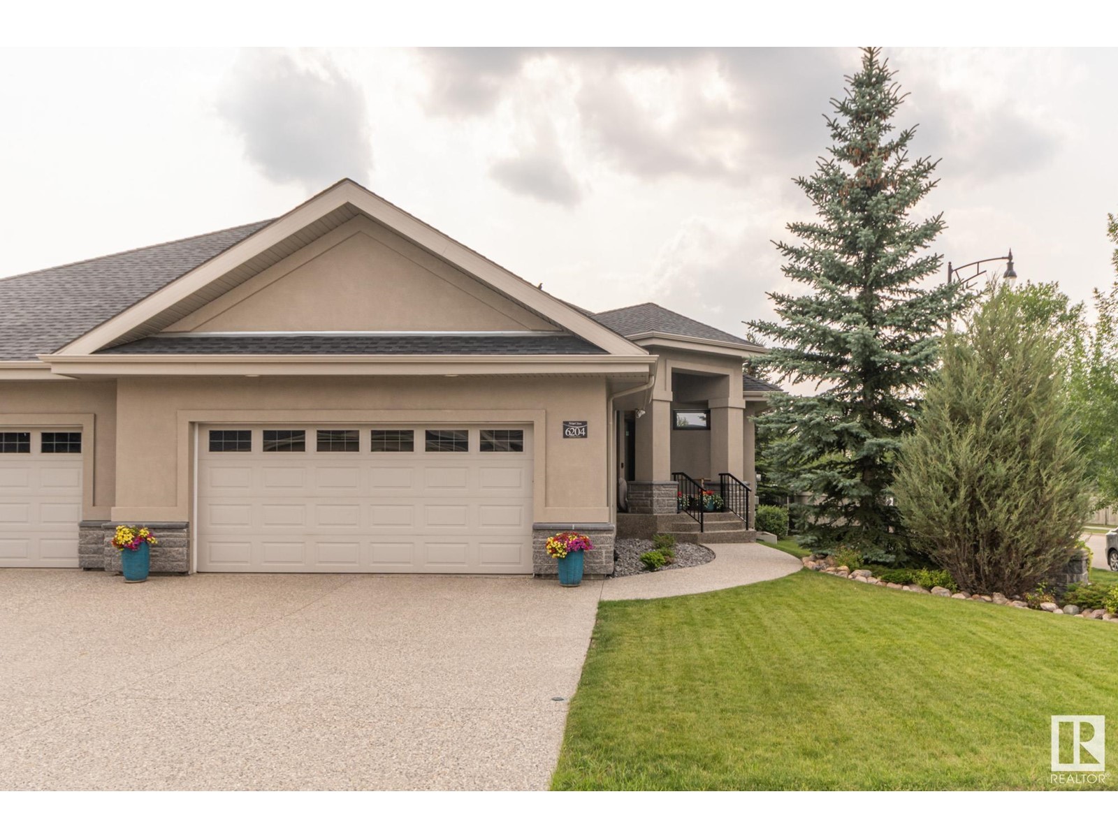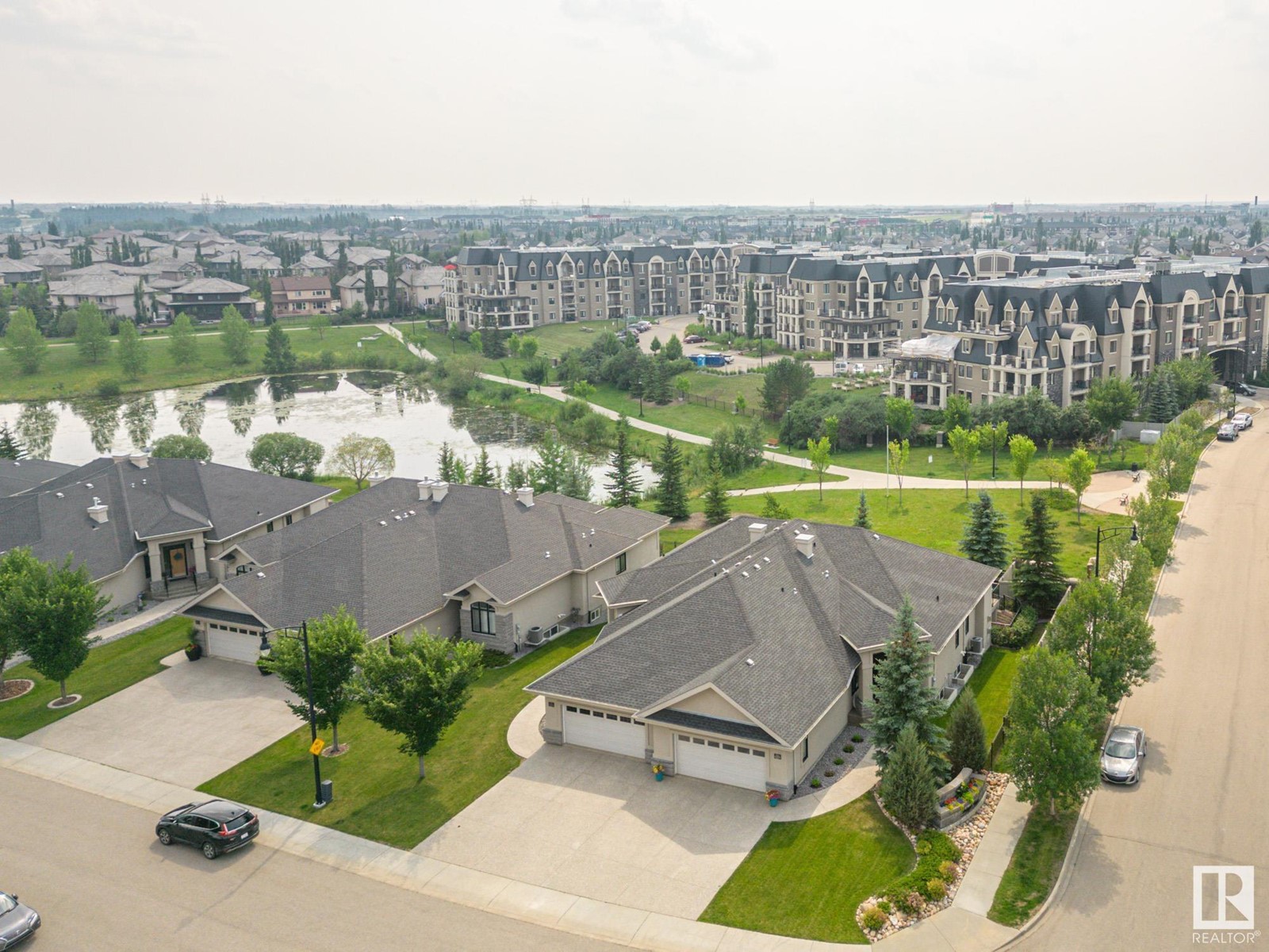 Welcome to the highly sought after MacTaggart Manors; lovely half duplex bungalow located in a quiet cul de sac backing onto MacTaggart pond, park & connecting trails. Great view. Quality finishing by Managen: over 2900 sq ft of total living area with high ceilings, hardwood floors, granite counters, gourmet kitchen with gas stove & walk-in pantry, & many upgrades throughout. Main floor with open plan includes large master bedroom with ensuite bathroom, an office [or bedroom] near the front entry, laundry & private deck off the living room. Walkout basement is fully finished; there's in-floor heating, 2 generous sized bedrooms, spacious family room with wet bar & fireplace, a workout or hobby room, full bathroom. Covered patio in a park-like setting right off the lower living area. Loads of storage cupboards. Extras are: gas BBQ hook-up, central AC, gas fireplace on each floor, irrigation system, double garage with epoxy floor & a tap. It's like a new home. HOA covers lawn maintenance & snow removal. (id:22211)