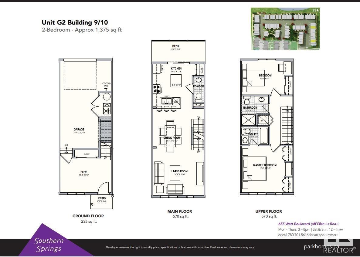 UNDER CONSTRUCION! Live in Southern Springs, A Park Homes built community! Located in Walker lakes and minutes to the Edmonton International airport, South Edmonton Common, and upcoming schools and major transportation routes. This 3 storey town-home boasts a fantastic layout with ground level over-sized single attached garage and will easily fit most Truck lengths at 25 depth. Flex room on 1st floor. The main floor has 9 ft. ceilings, quartz counter tops, tiled back-splash and an open concept layout with vinyl plank laminate flooring and a 1/2 bath. 6 Appliances included! Upstairs we find 2 large bedrooms with the master boasting his/her closets, en-suite 4 piece bath, and a main bathroom with standalone shower. The community has a social club amenity center with party room and use of the fitness facility for a monthly fee. Coupled with Alberta new home warranty and no landscaping or snow removal worries, this property will sell fast at this price. make this one your next home... (id:22211)