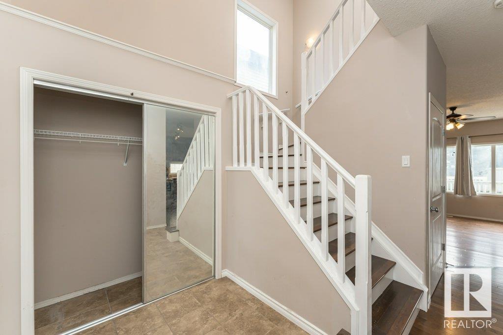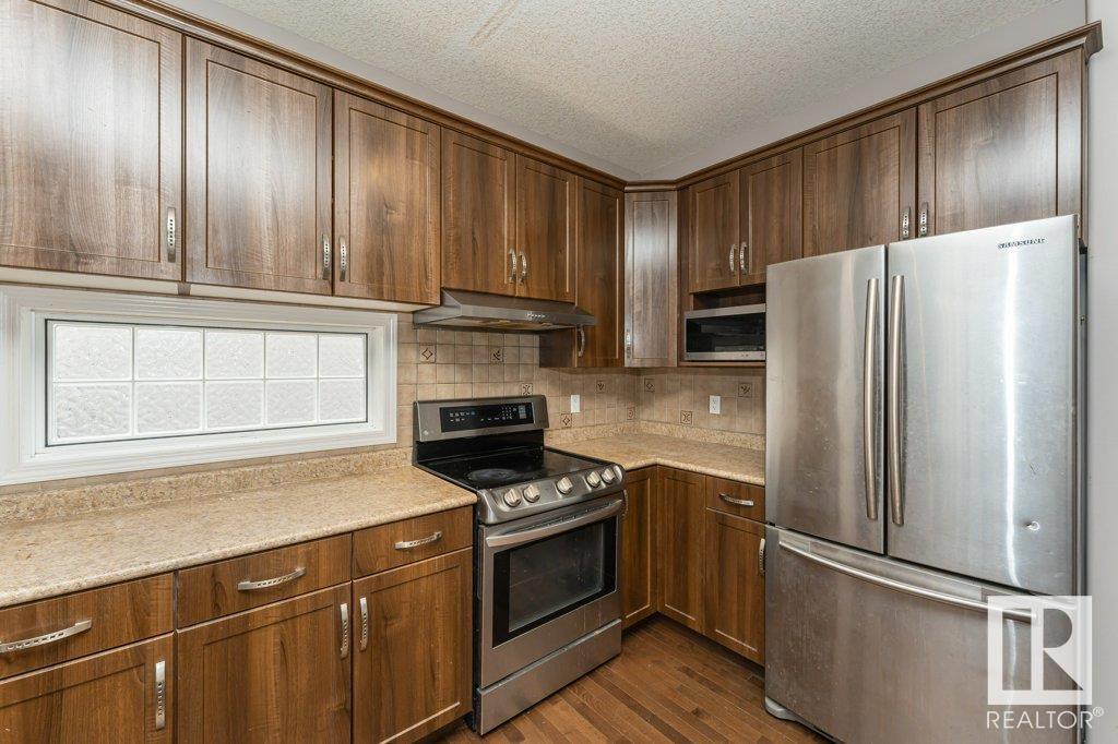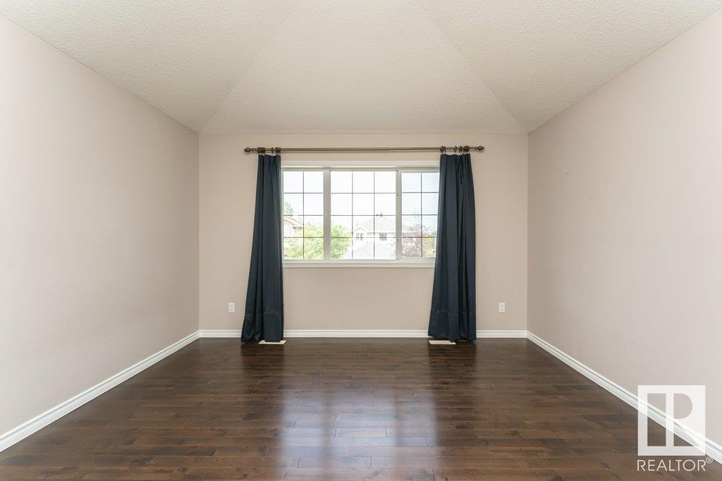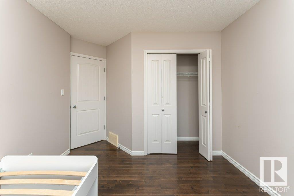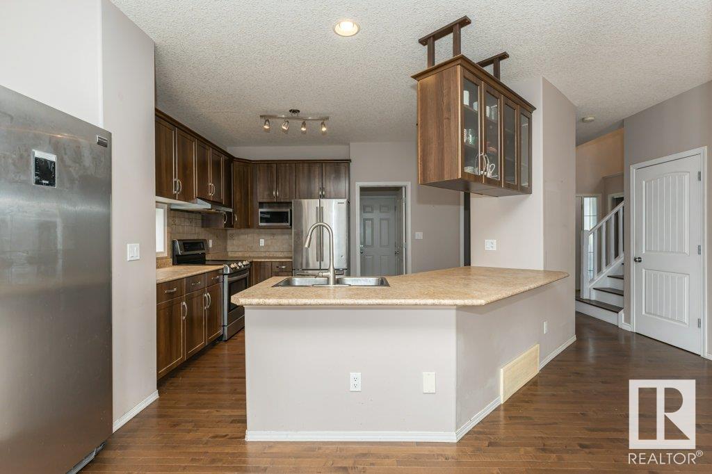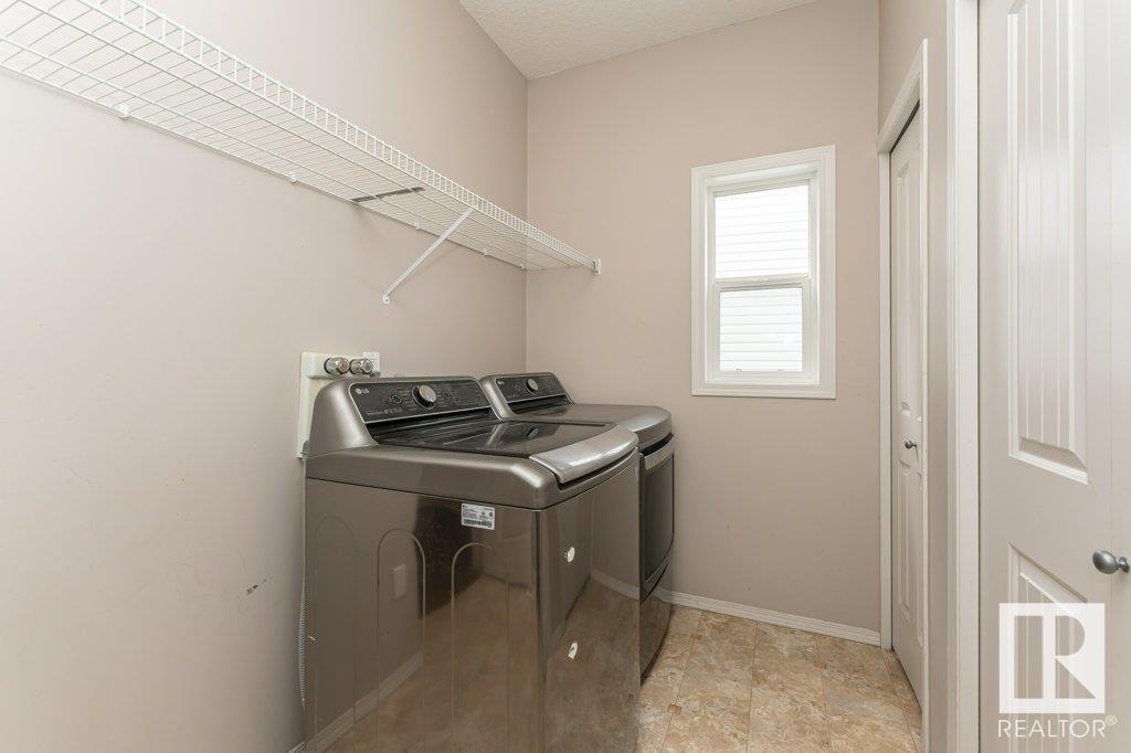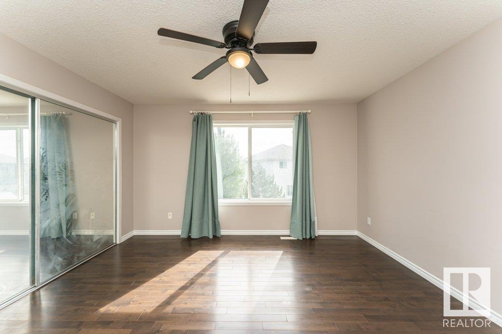 Super location in the highly desirable Leger community. This MacLachlan and Mitchell built home is fully finished and boasts a double front attached garage, 5 bedrooms, 3.5 bathrooms, a large bonus room and walnut hardwood floors throughout the main and upstairs. 17' ceiling front foyer. A sunken living room with a natural gas fireplace. Dark walnut kitchen cabinets with crown moldings. The back yard is fully fenced, very private and features a massive deck off the back of the home with beautiful morning sun and shade in the late afternoon/evening. Recent upgrades include a newer roof, hot water system, dishwasher, washer and dryer. Excellent access to trails and the river valley system, public transportation, shopping, schools and footsteps from the Southwest Edmonton Farmers Market, Terwillegar Community Recreation Centre, Lillian Osborne and Mother Margaret Mary schools. (id:22211)