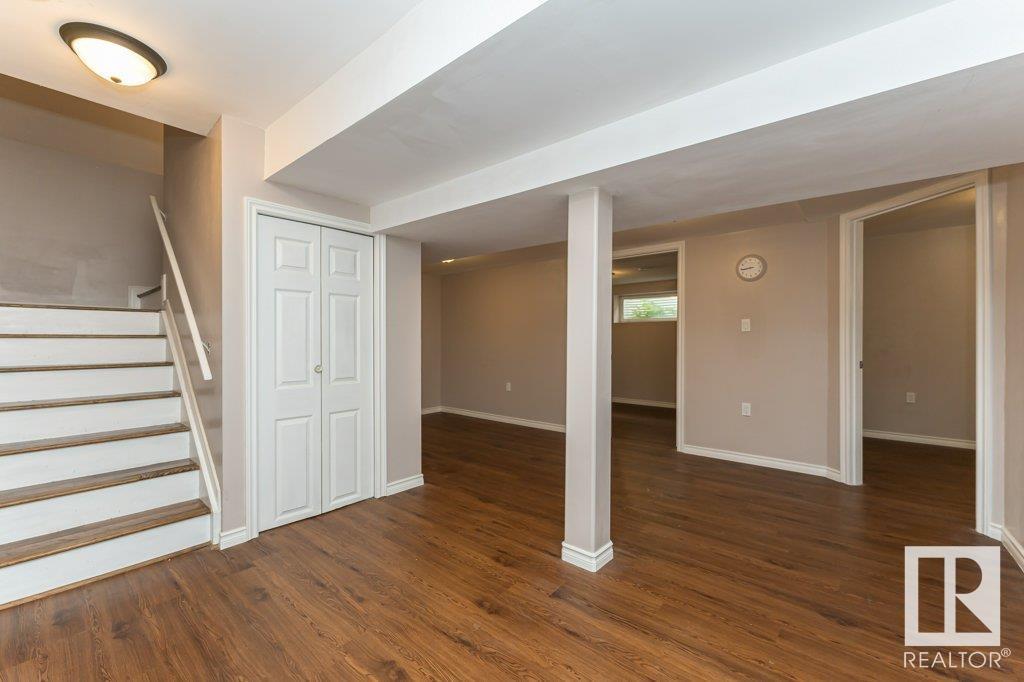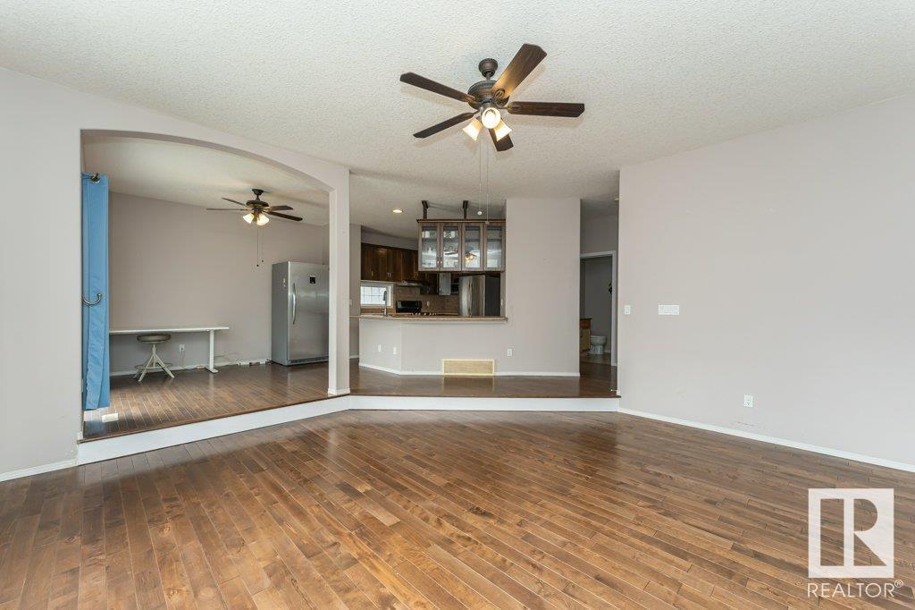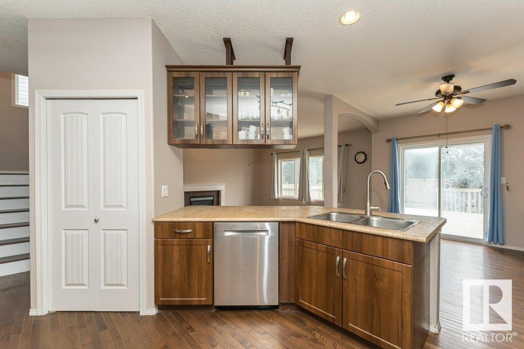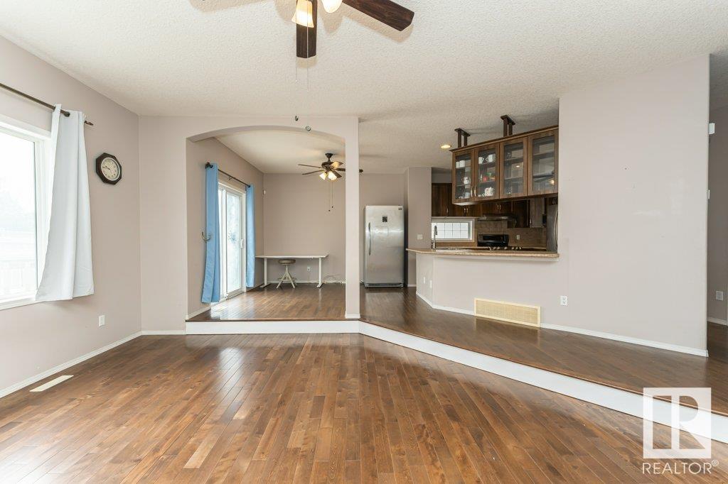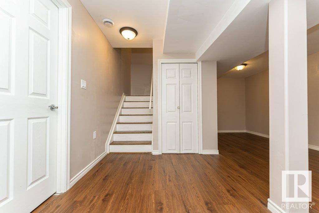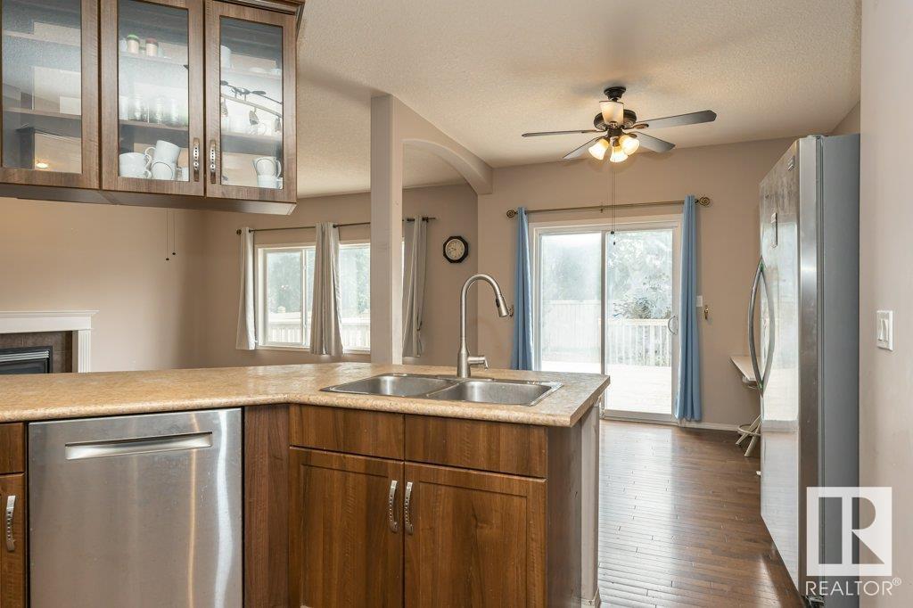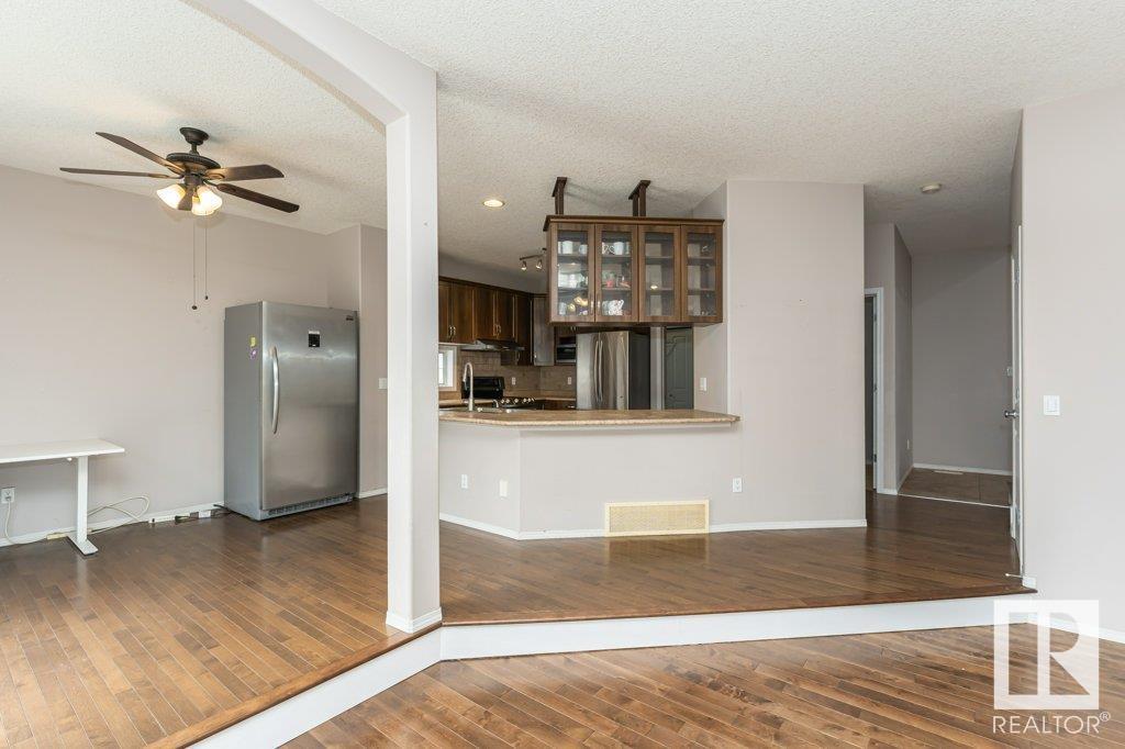 Super location in the highly desirable Leger community. This MacLachlan and Mitchell built home is fully finished and boasts a double front attached garage, 5 bedrooms, 3.5 bathrooms, a large bonus room and walnut hardwood floors throughout the main and upstairs. 17' ceiling front foyer. A sunken living room with a natural gas fireplace. Dark walnut kitchen cabinets with crown moldings. The back yard is fully fenced, very private and features a massive deck off the back of the home with beautiful morning sun and shade in the late afternoon/evening. Recent upgrades include a newer roof, hot water system, dishwasher, washer and dryer. Excellent access to trails and the river valley system, public transportation, shopping, schools and footsteps from the Southwest Edmonton Farmers Market, Terwillegar Community Recreation Centre, Lillian Osborne and Mother Margaret Mary schools. (id:22211)
