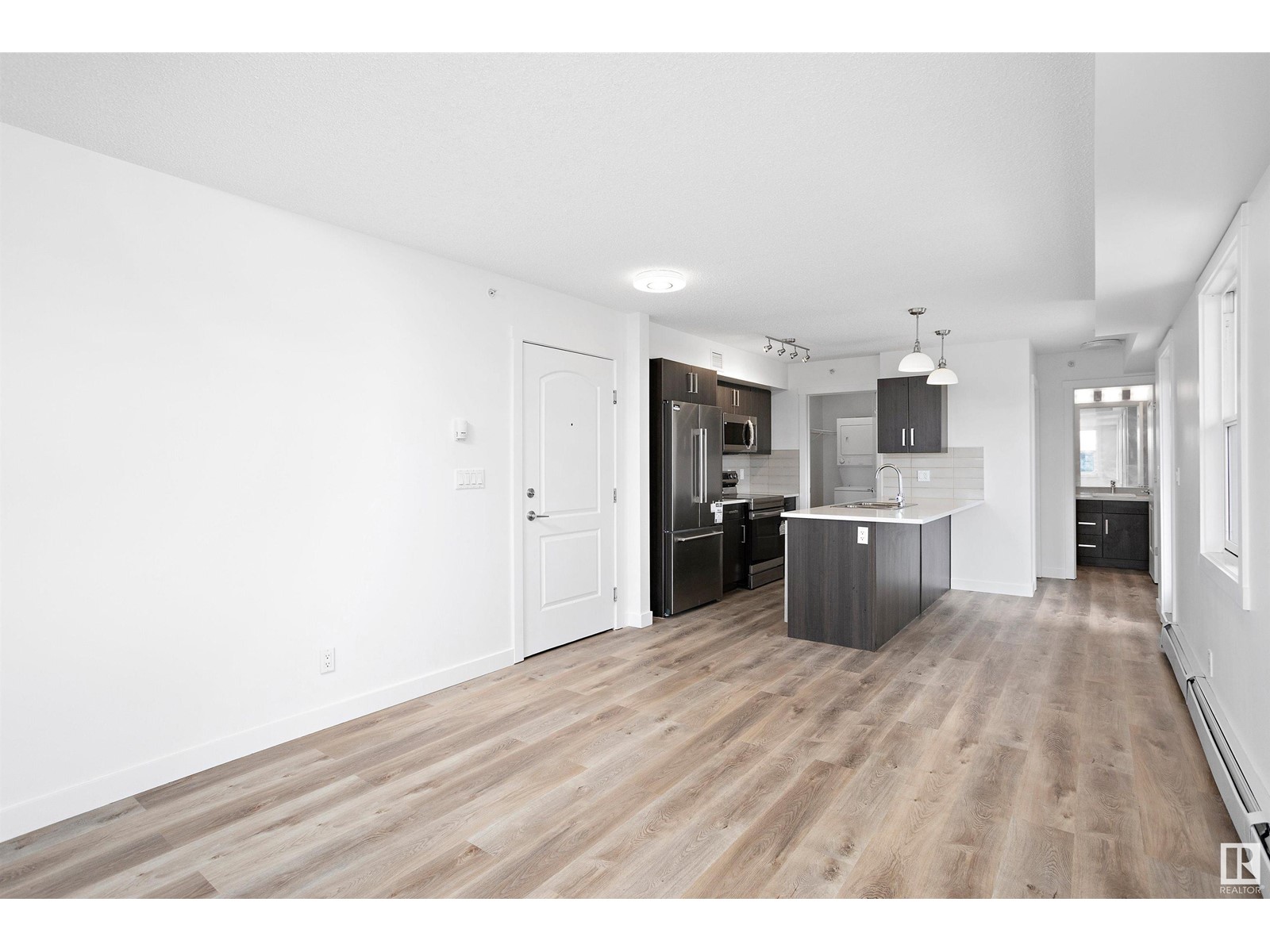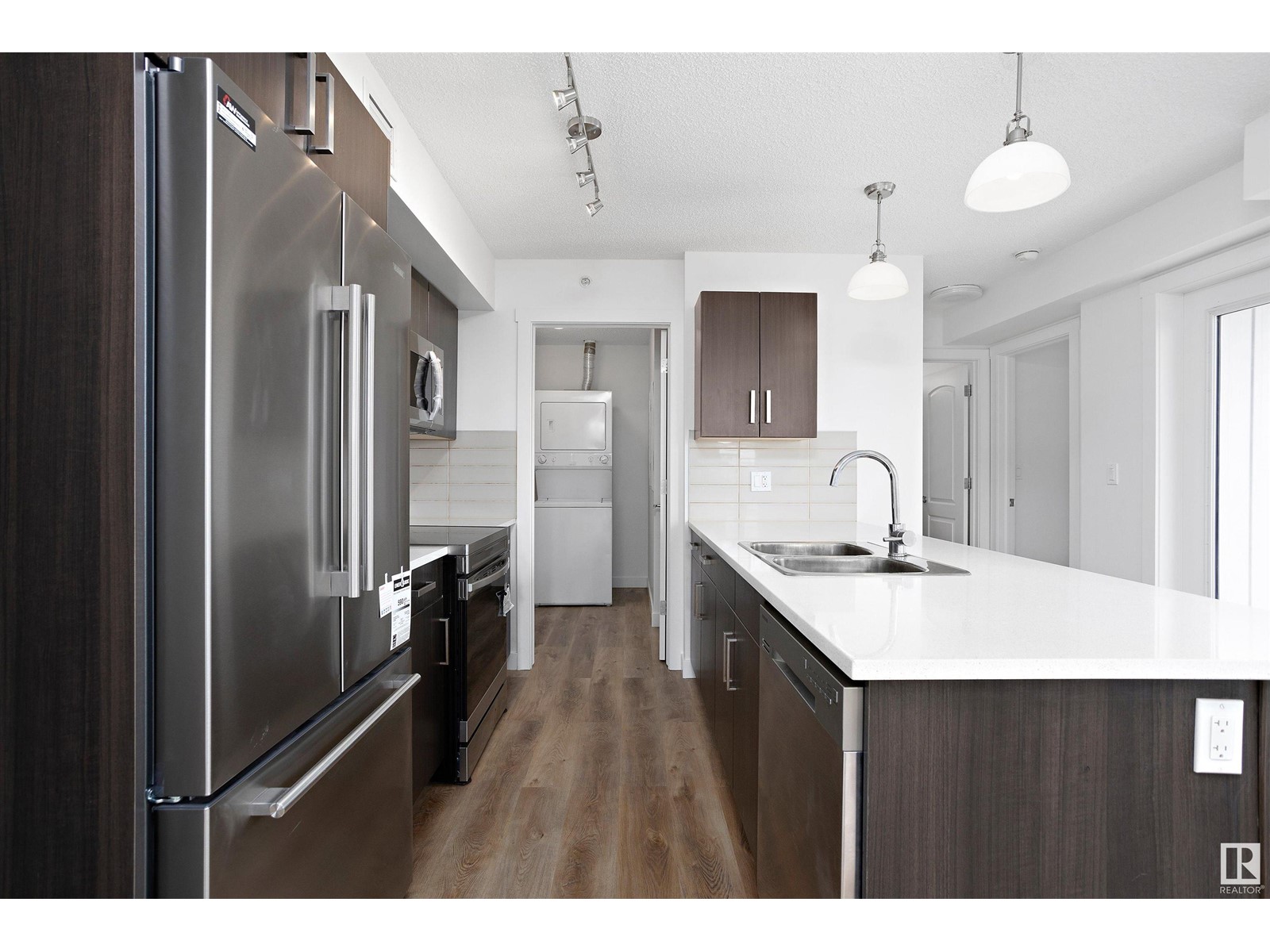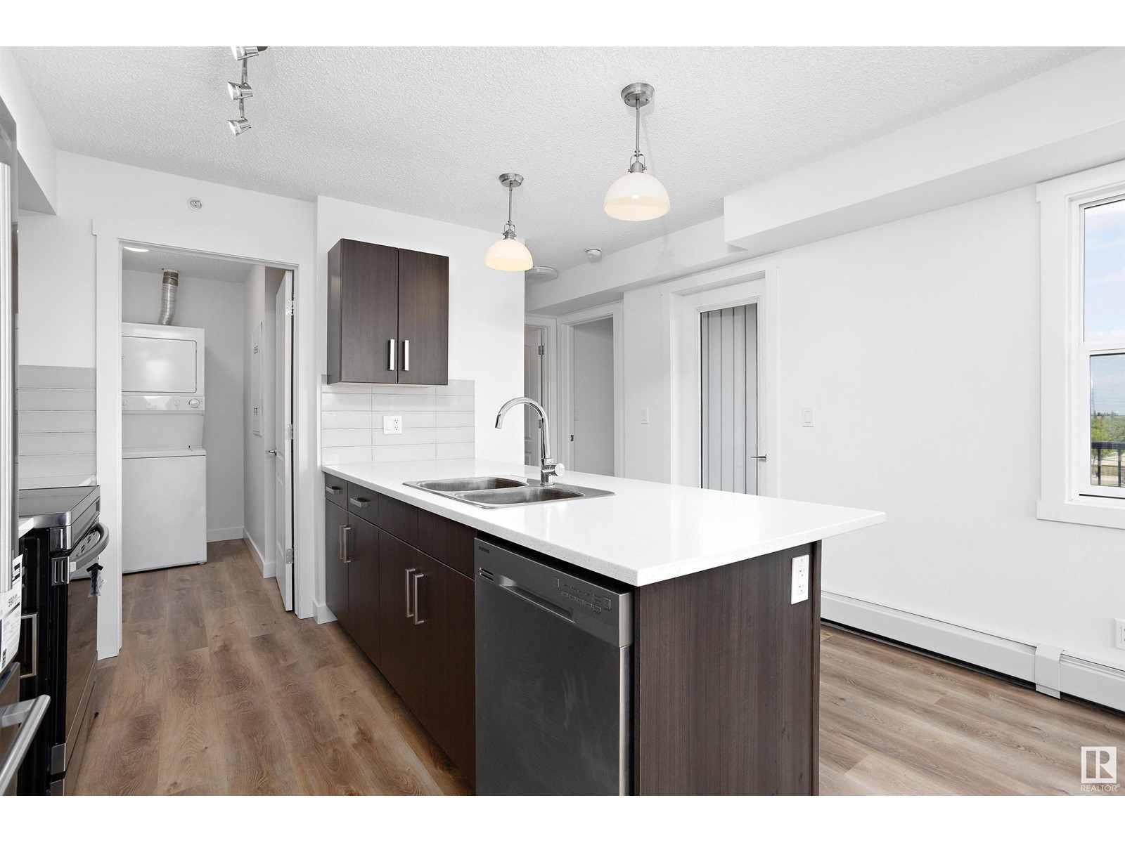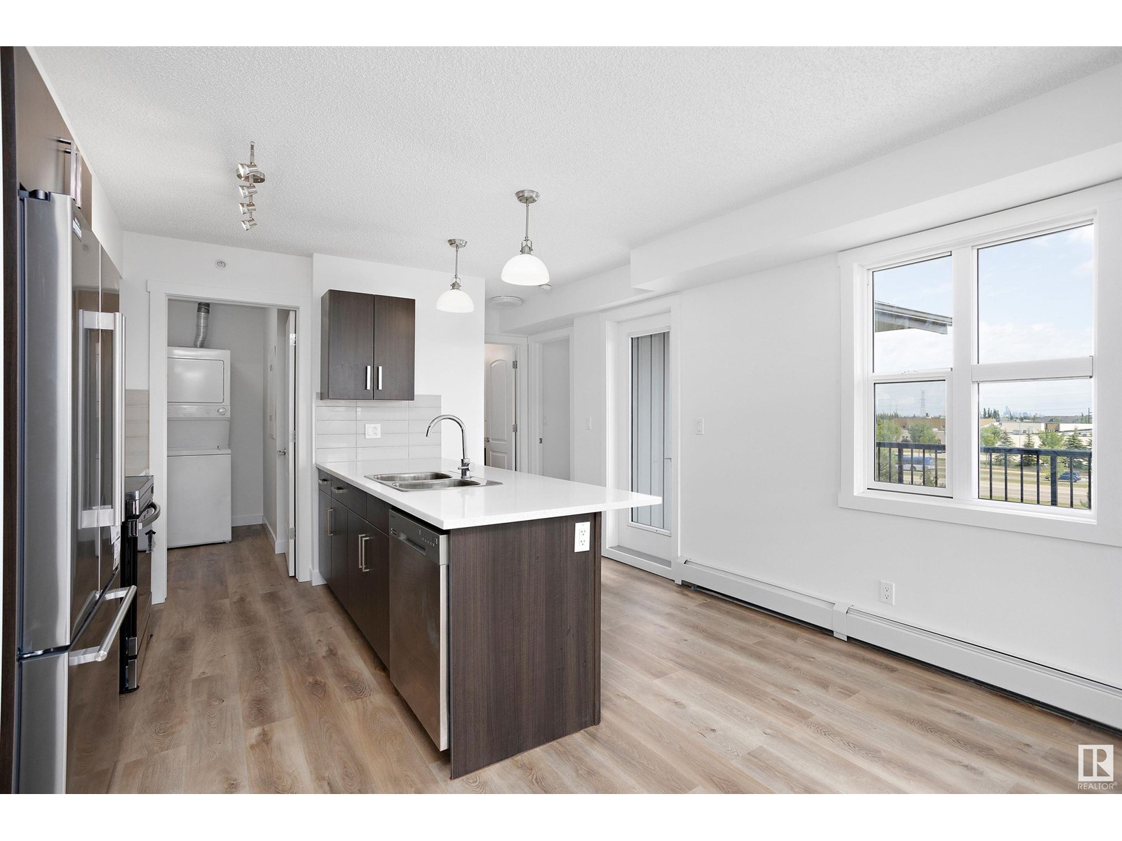 TOP FLOOR CORNER UNIT facing NORTH EAST to wake up to a beautiful sunrise in Southern Springs where luxury condo living awaits you! A vibrant complex located close to major routes of traffic, near future LRT site, close to shopping and countless other amenities! This charming top-floor, corner unit features an open concept design and offers a modern kitchen with stainless steel appliances, tile backsplash, quartz counters and plenty of cabinet space! A large storage room off the kitchen provides in-suite laundry and plenty of room for additional storage. A large master bedroom and 4 pc bathroom finish the suite. A large balcony overlooks the City of Edmonton providing great views! Additionally, this unit comes with one underground parking stall (No. 186) with storage and has access to the amenities building where a social room, kitchen, and green space provides a great place to host friends and family! (id:22211)