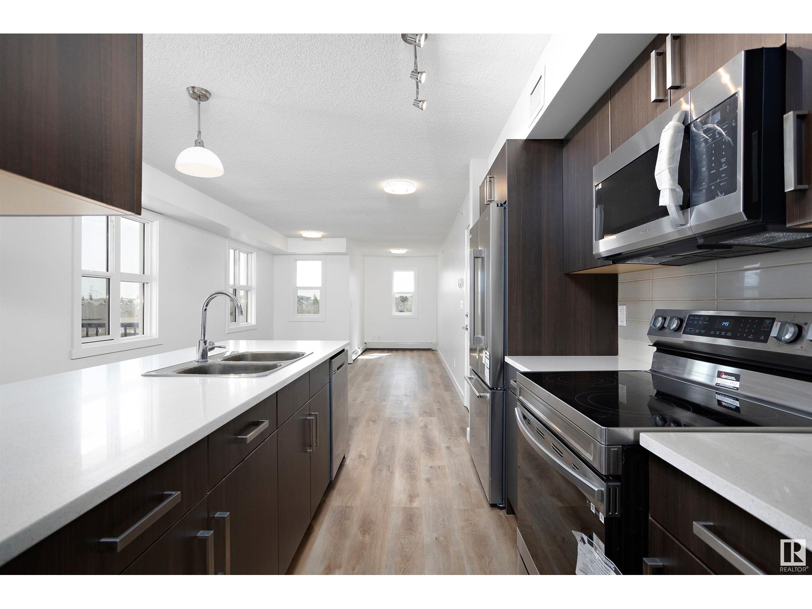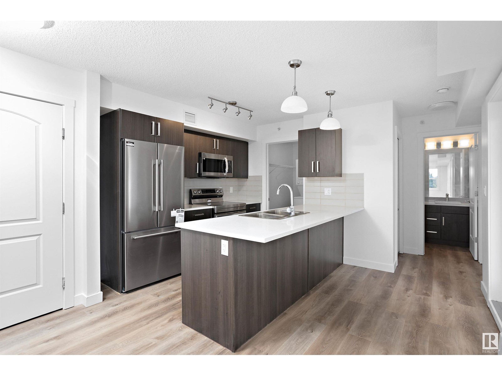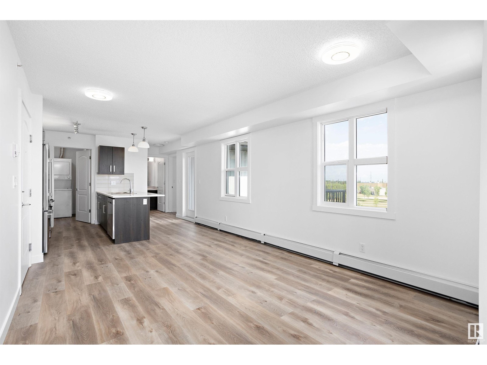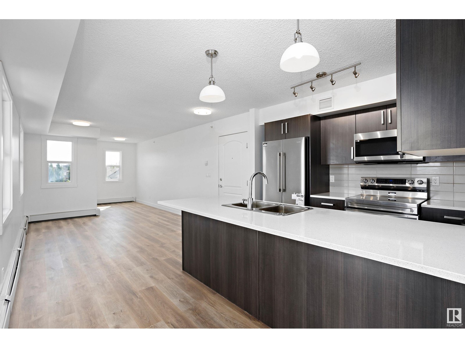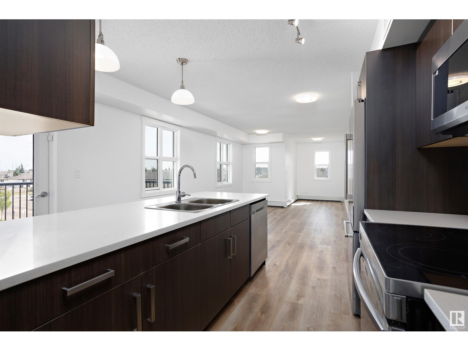 TOP FLOOR CORNER UNIT facing NORTH EAST to wake up to a beautiful sunrise in Southern Springs where luxury condo living awaits you! A vibrant complex located close to major routes of traffic, near future LRT site, close to shopping and countless other amenities! This charming top-floor, corner unit features an open concept design and offers a modern kitchen with stainless steel appliances, tile backsplash, quartz counters and plenty of cabinet space! A large storage room off the kitchen provides in-suite laundry and plenty of room for additional storage. A large master bedroom and 4 pc bathroom finish the suite. A large balcony overlooks the City of Edmonton providing great views! Additionally, this unit comes with one underground parking stall (No. 186) with storage and has access to the amenities building where a social room, kitchen, and green space provides a great place to host friends and family! (id:22211)