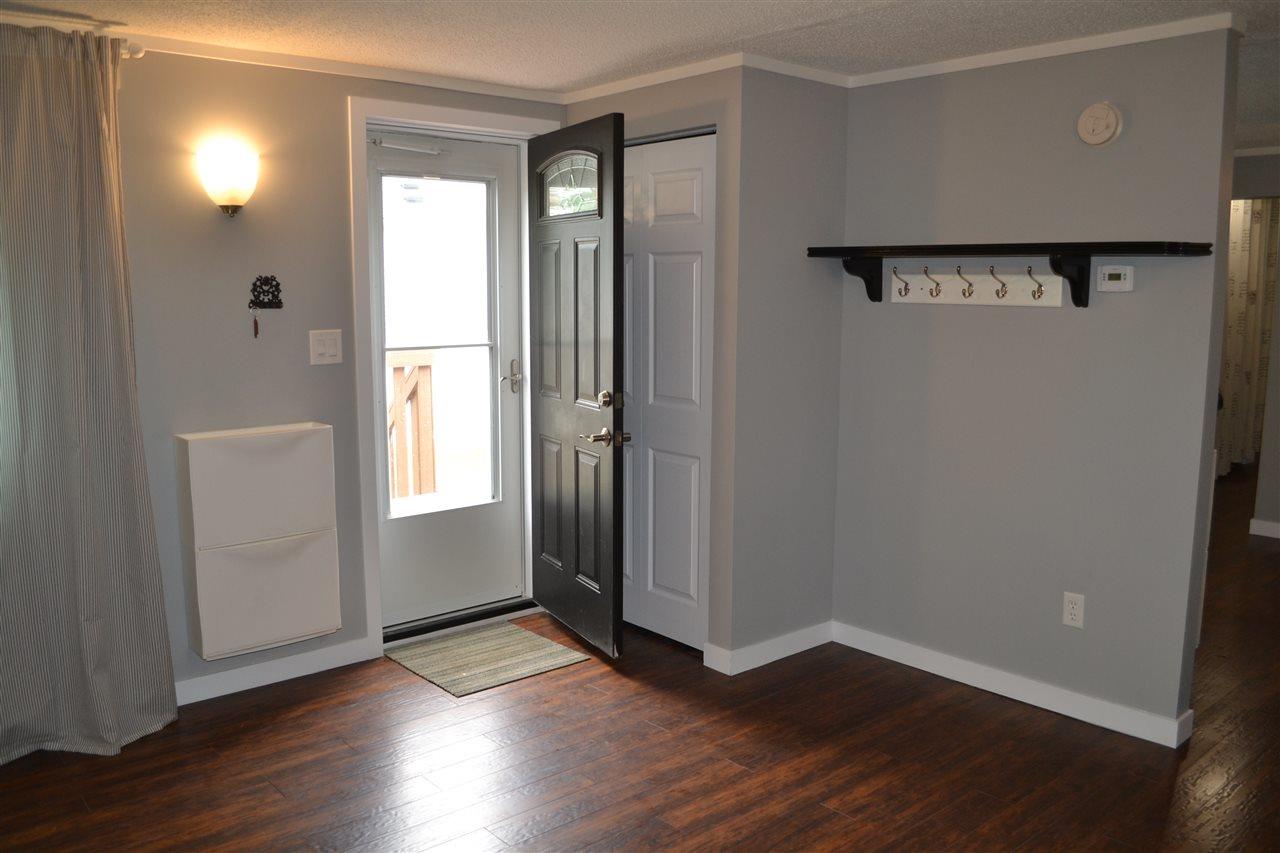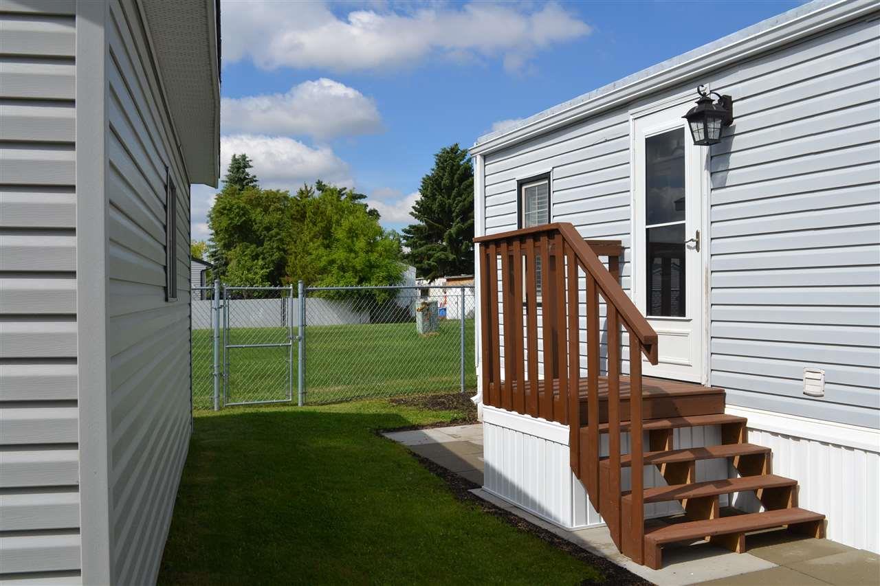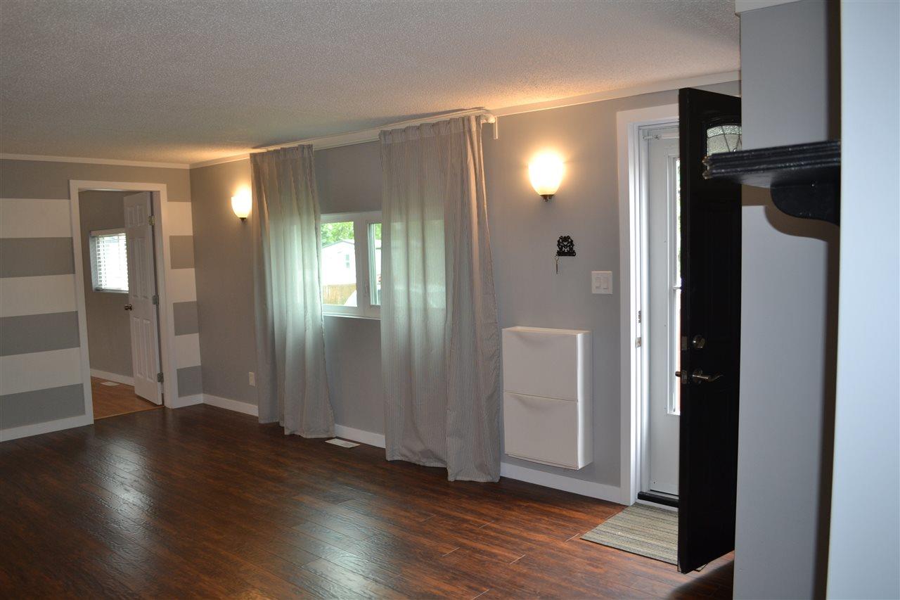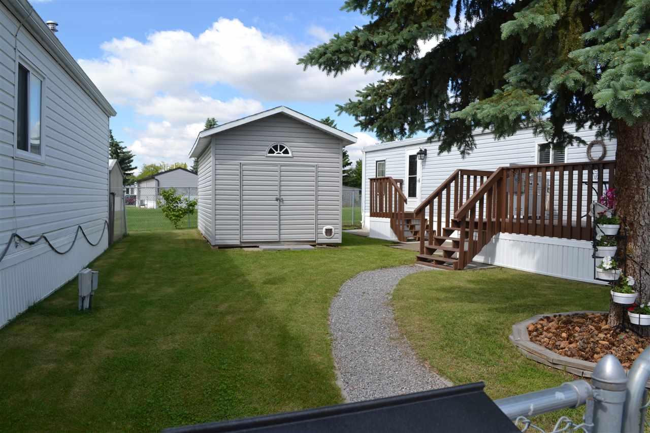 Lots of work has been done in this updated mobile home. New engineered hardwood, new laminate, new tile, new windows, new front door, new screen doors, new skirting, new trim, new drywall and the list goes on. This 2 bedroom, 2 bathroom home has everything you need. Both bedrooms are a great size and the front bedroom has a 3 piece ensuite. A large living area and open concept dining kitchen area have all been updated. The yard is fully landscaped, fully fenced and has a great deck for BBQ's. The huge 10 foot x 20 foot sided shed is perfect for all your storage needs. (id:22211)