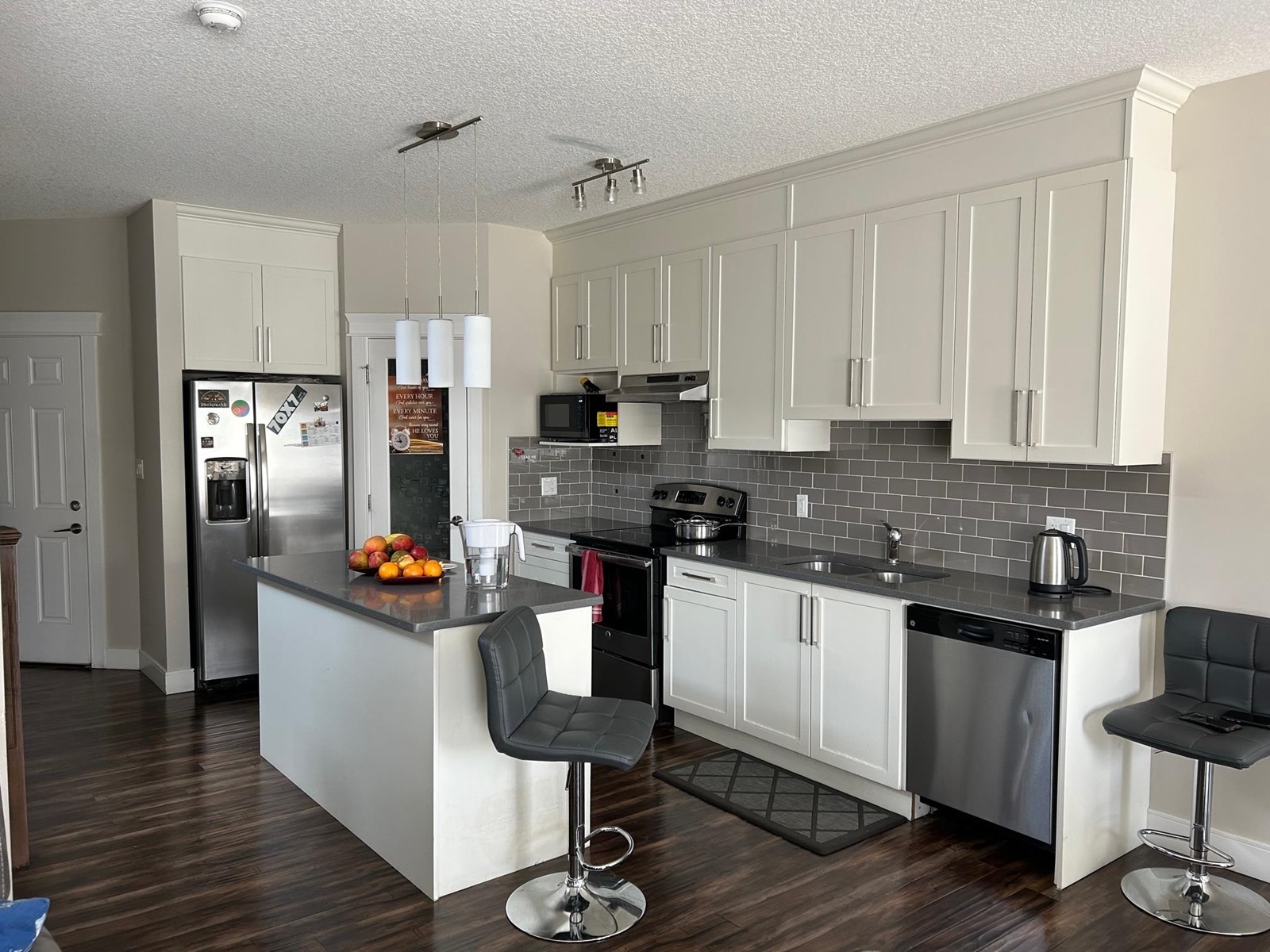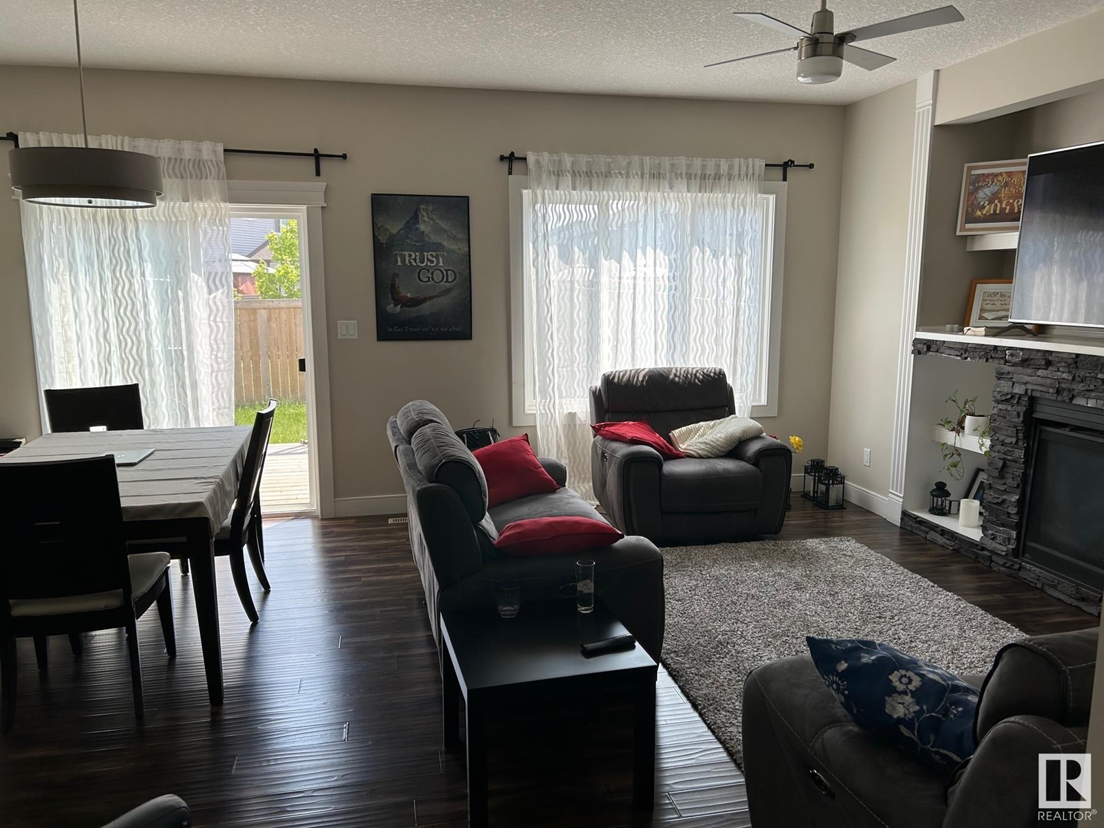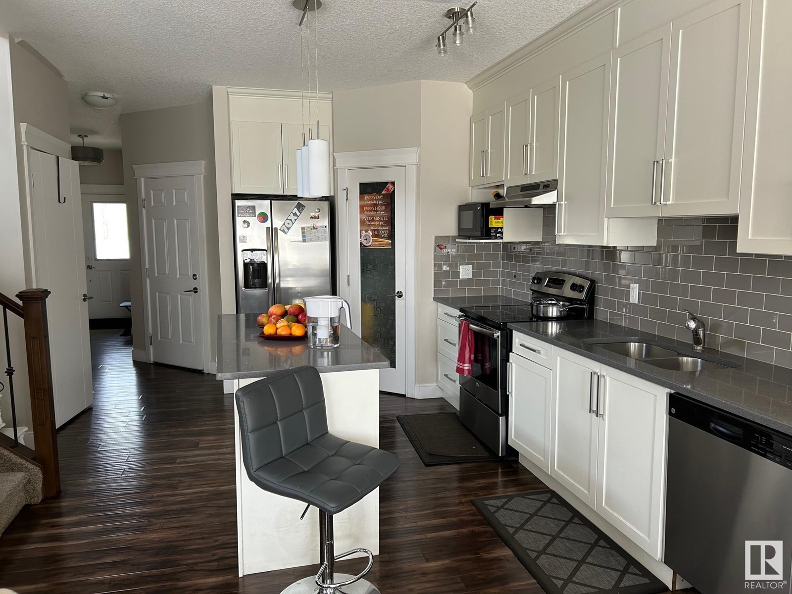 Pride of ownership in this 1588 Sq. ft. of living space in this 2 storey half duplex main level features open concept, modern kitchen, quartz countertops, and island. Appliances included. Living room with fireplace and large eating area with patio doors leading to a deck overlooking back yard. plus 2 piece bath on main level. 2nd level large master bedroom with 4 piece ensuite, plus another 4 piece bathroom and 2 more bedrooms plus bonus room, and laundry .Basement features family room ,bedroom, 3 piece bathroom ,plus laundry. kitchen area only need kitchen cabinets installed . Seperate side entrance to basement. Tandem attached garage entrance from main level. (id:22211)